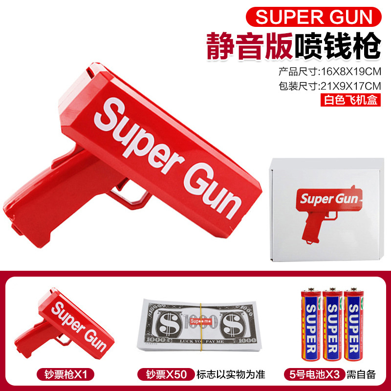 | 【带SUPER Gun标志】静音版钞票枪 | 50张钞票 | 3节5号电池 | 白色飞机盒 | 48 | 65*37*70cm |