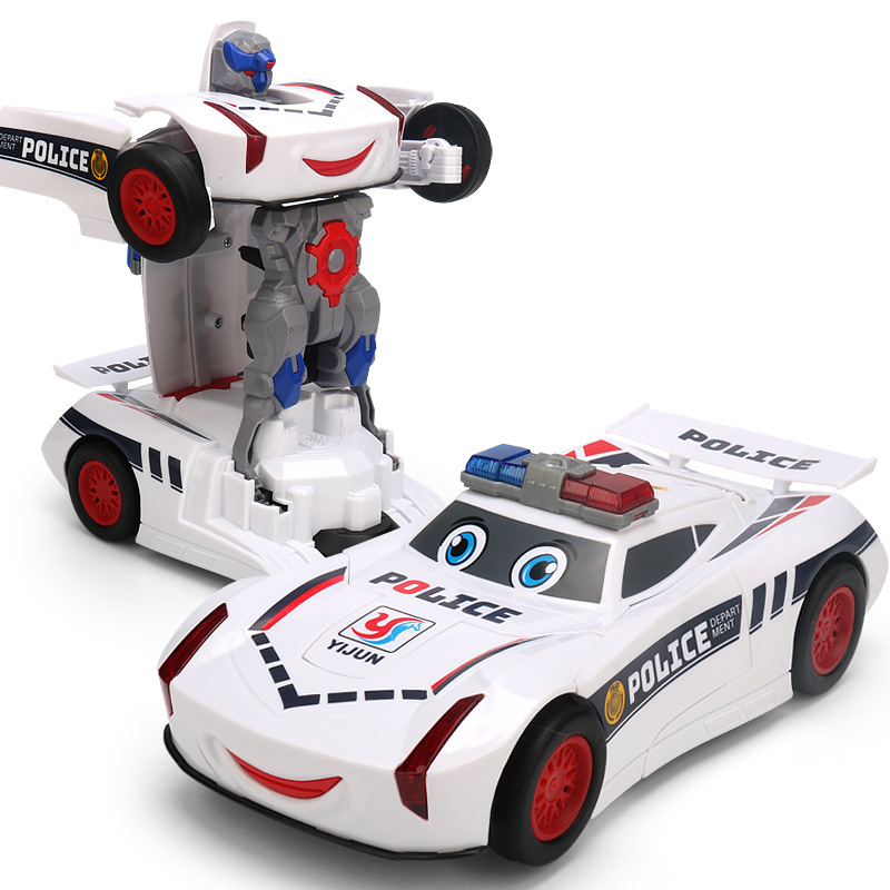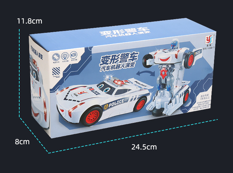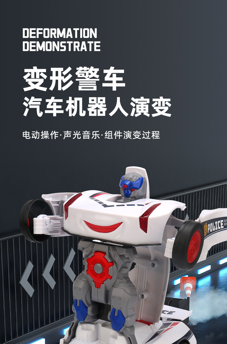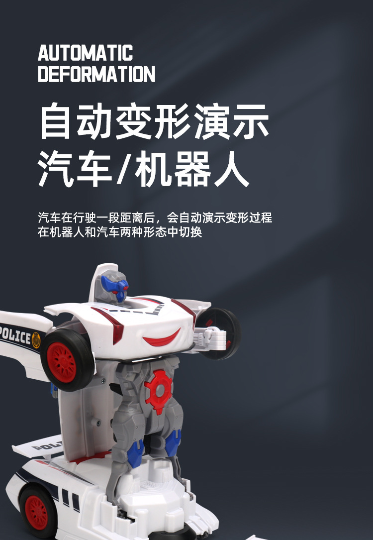 网红玩具 电动万向变形警察车 炫彩警灯音乐自动变形机器人玩具车