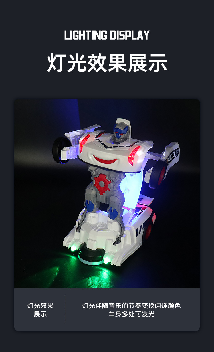 网红玩具 电动万向变形警察车 炫彩警灯音乐自动变形机器人玩具车 English | 投诉