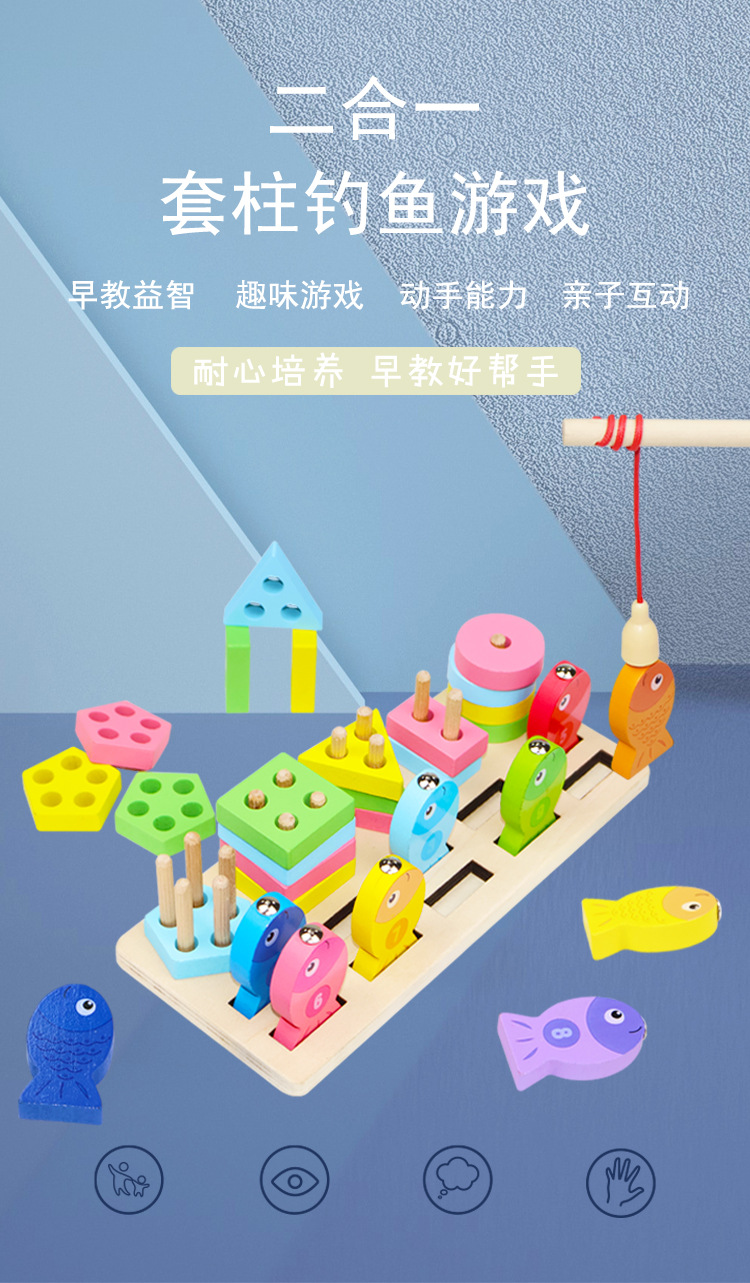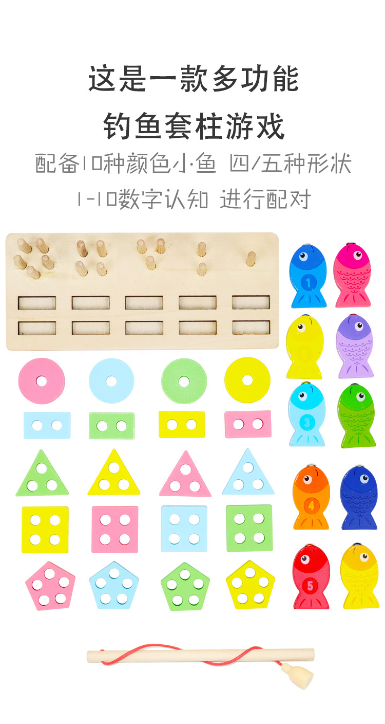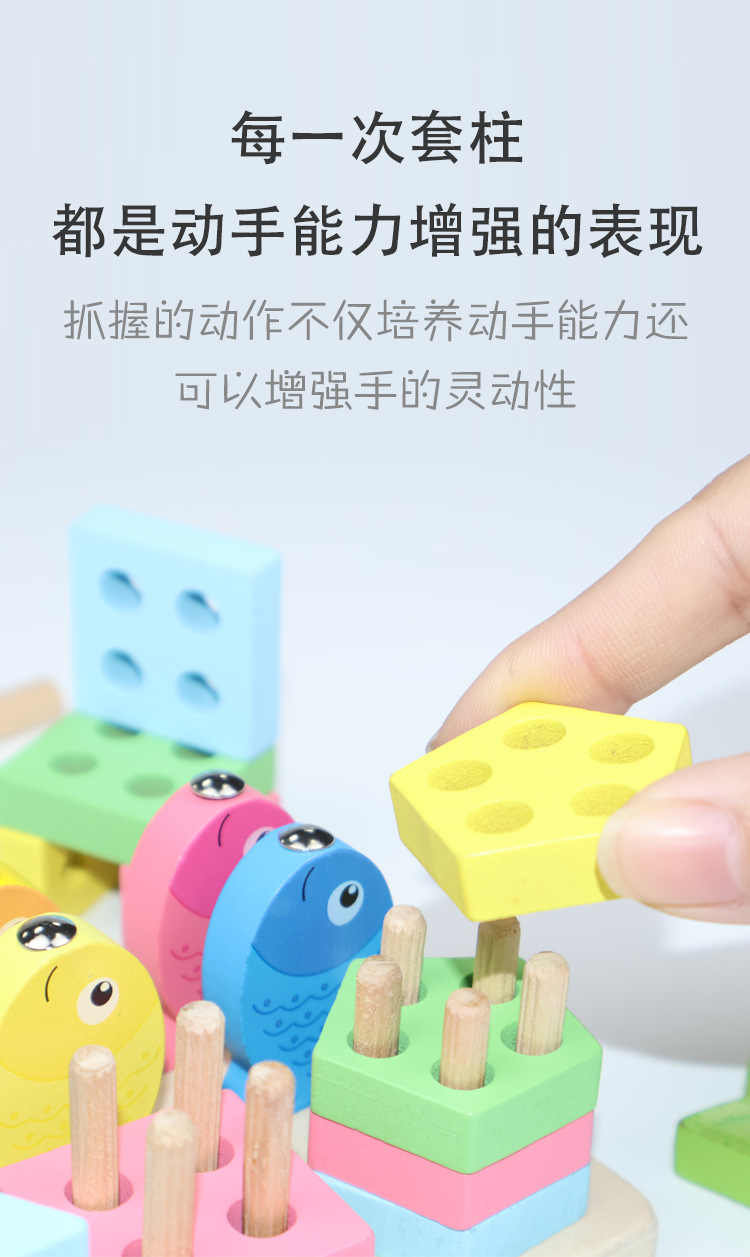 玩具材质: 木制 适用年龄: 儿童(3-6岁) 颜色: 钓鱼四套柱,钓鱼五套柱 规格: 1个 货号: 钓鱼套柱 品牌: 明瑞 上市时间: 2025年5月 能力培养: 智力开发,动手动脑 适用人群: 不限 包装: 彩盒 重量: 0.2 kg/套
