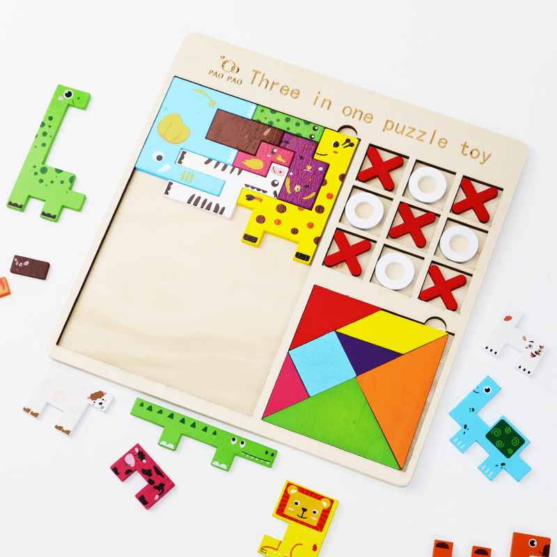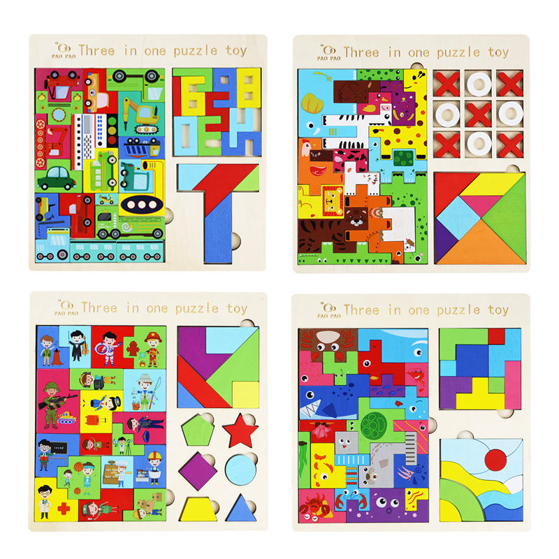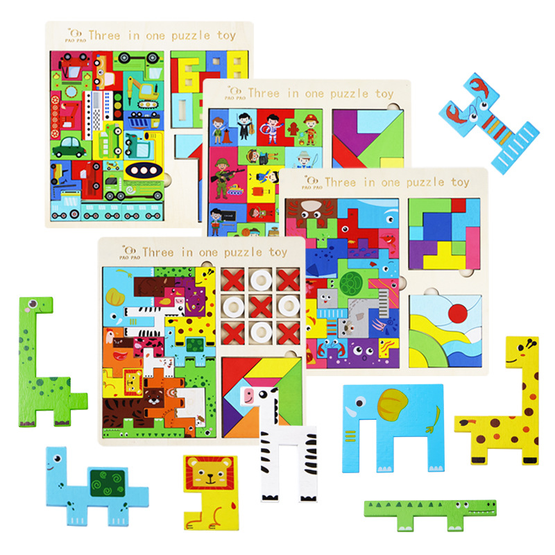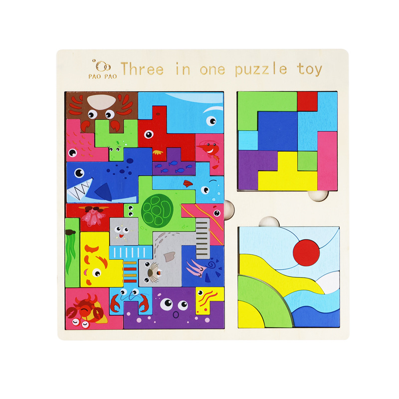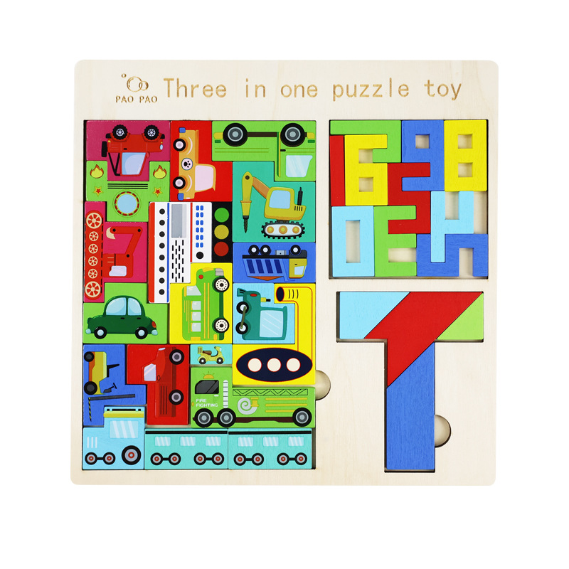 俄罗斯方块趣味三合一拼图木质卡通贴早教智慧黑板贴数字字母套装