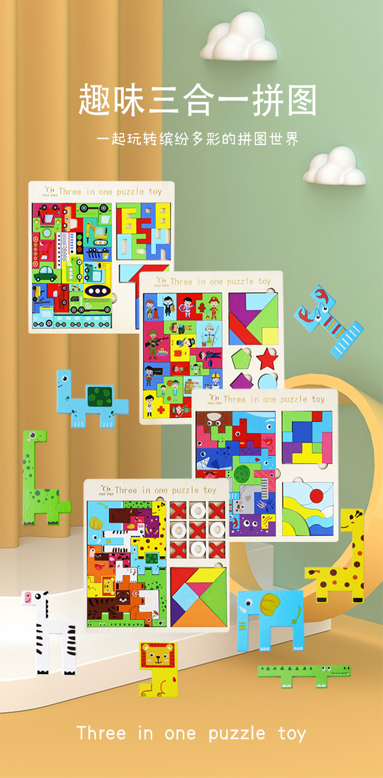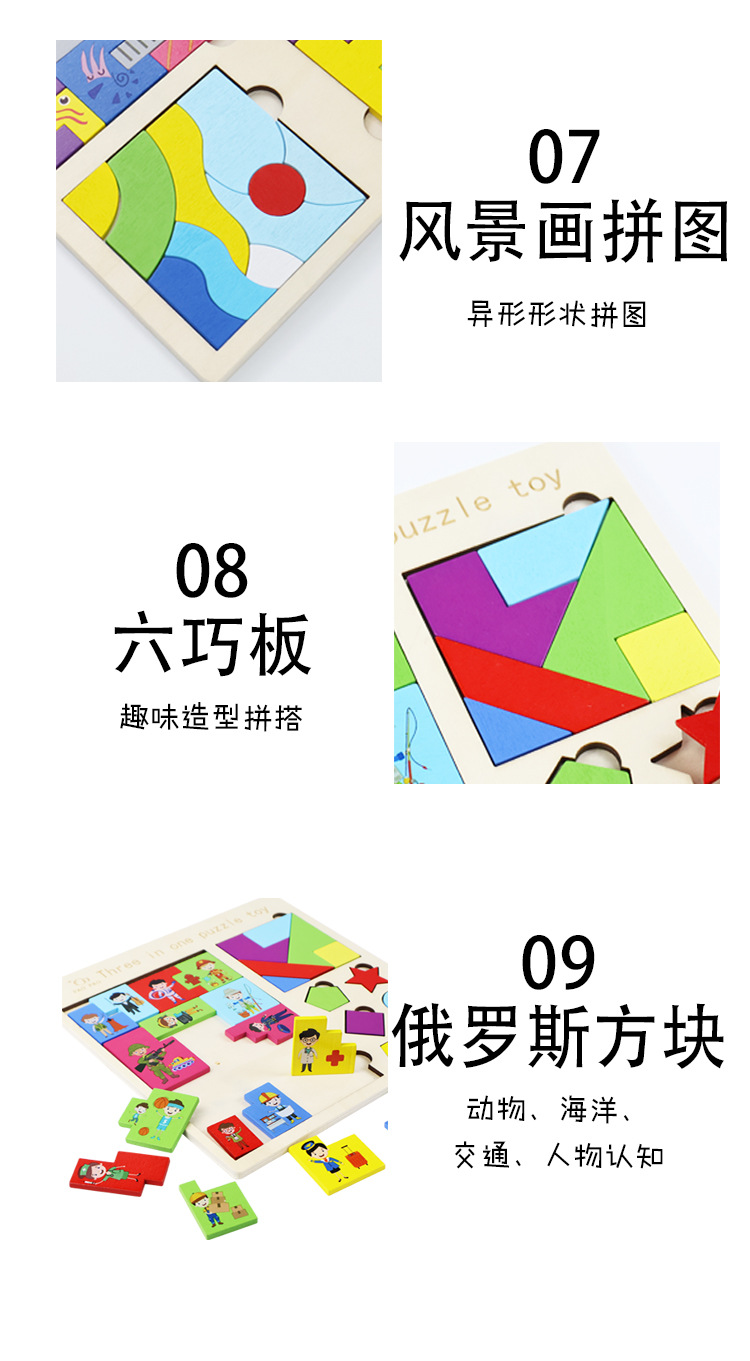 俄罗斯方块趣味三合一拼图木质卡通贴早教智慧黑板贴数字字母套装 English | 投诉