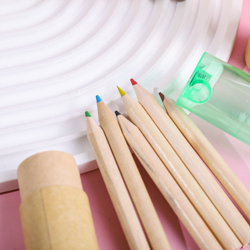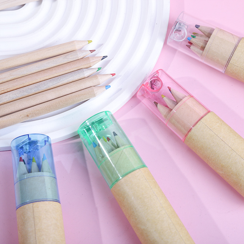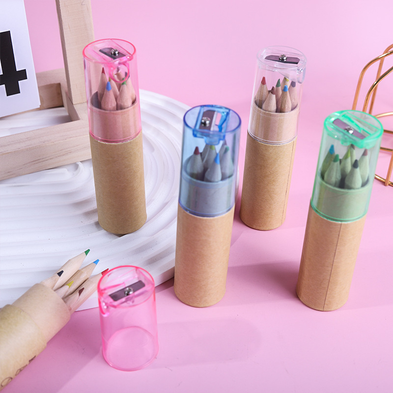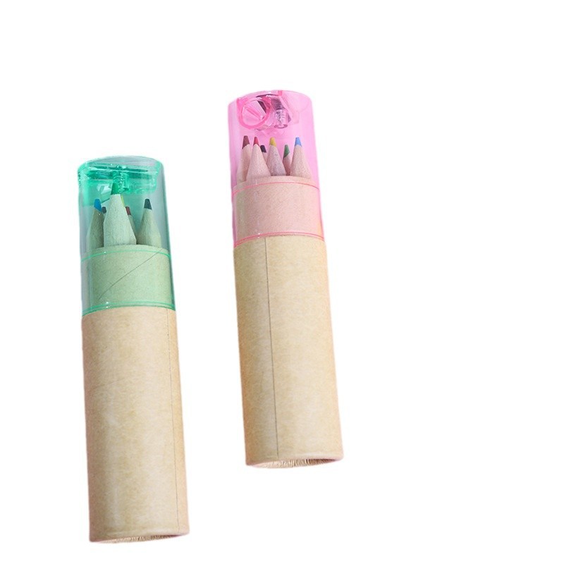 短款儿童绘画彩色铅笔桶装6色油性彩铅笔盖带卷笔刀学生必备文具
