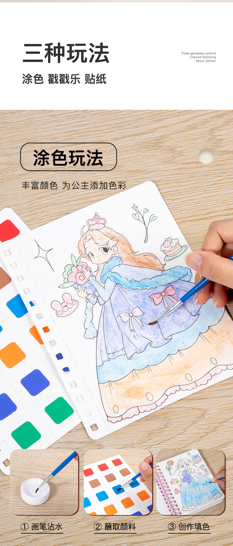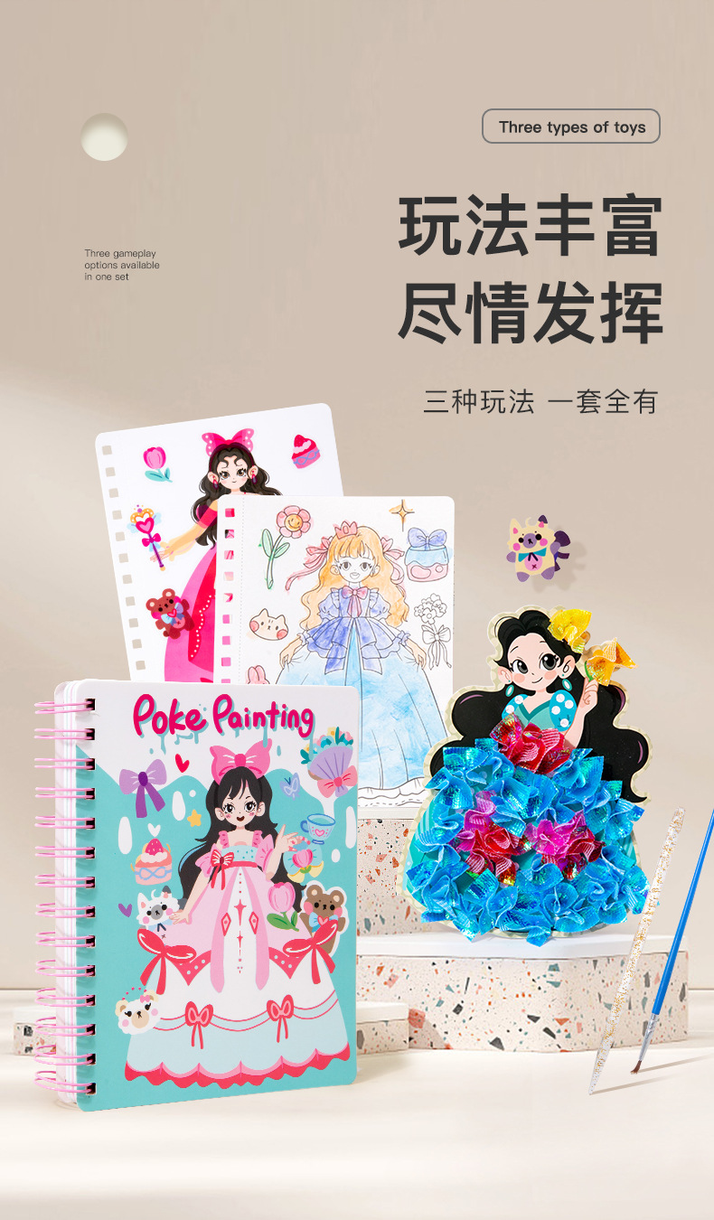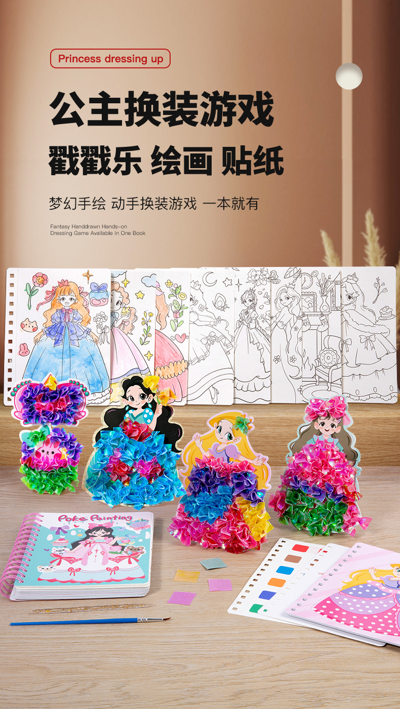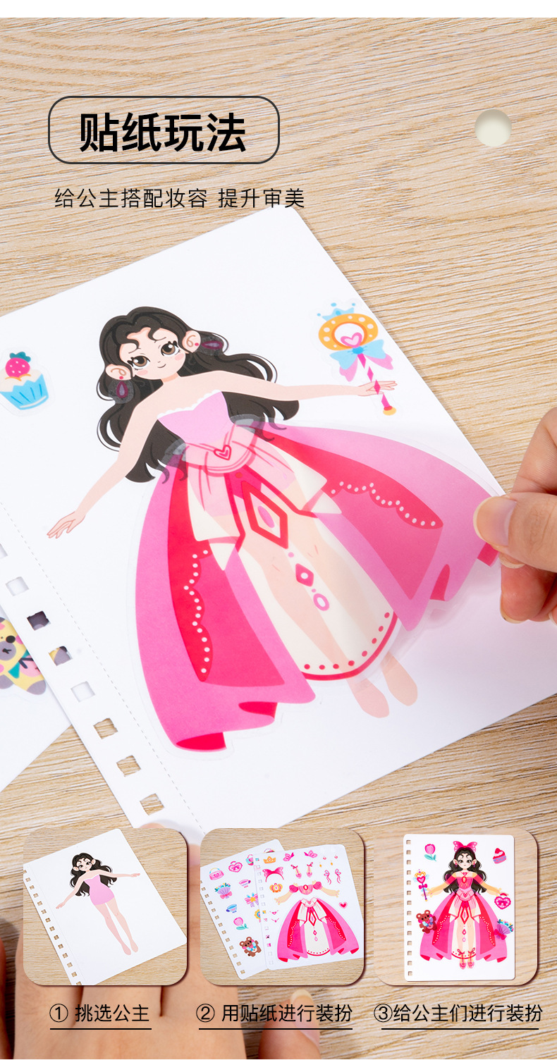 儿童公主换装贴纸书粘贴书女孩童话梦幻手绘戳戳乐画本贴贴画玩具