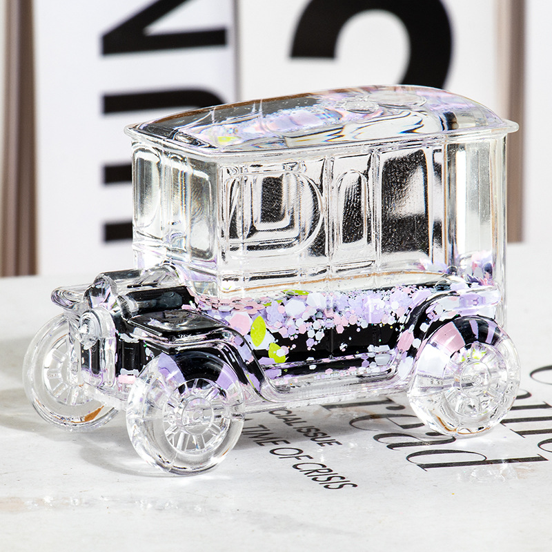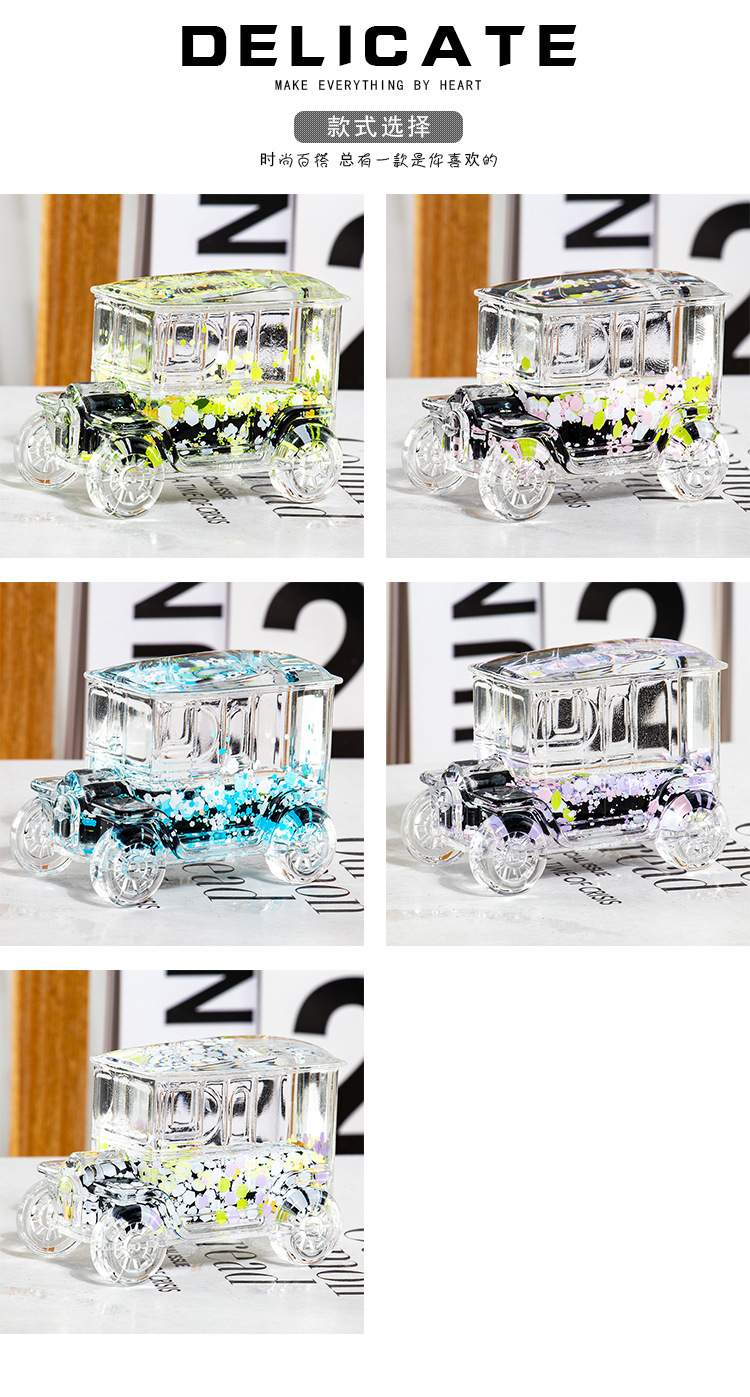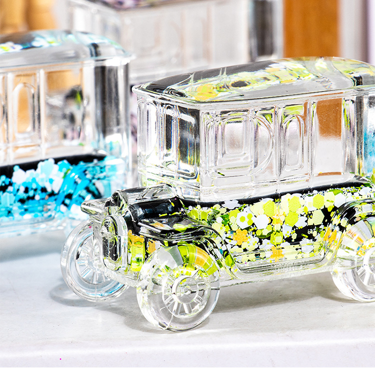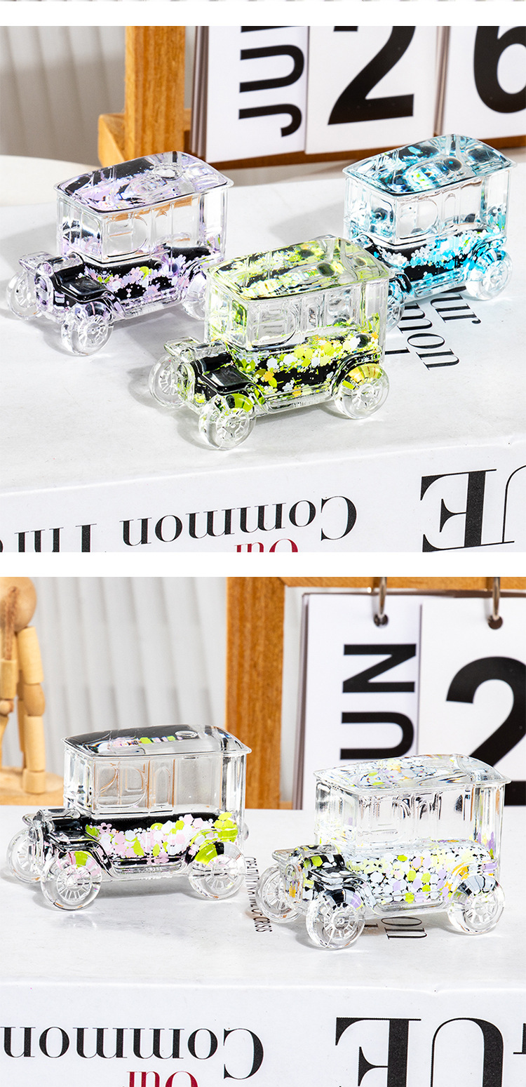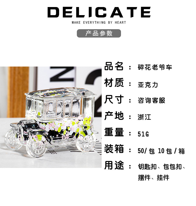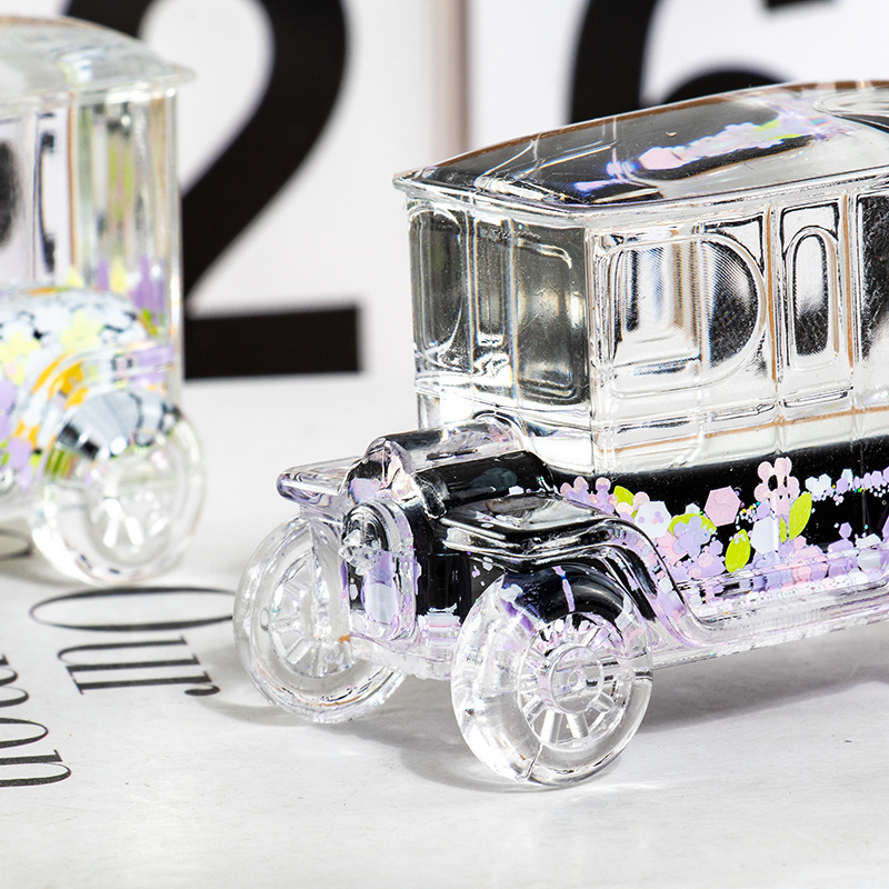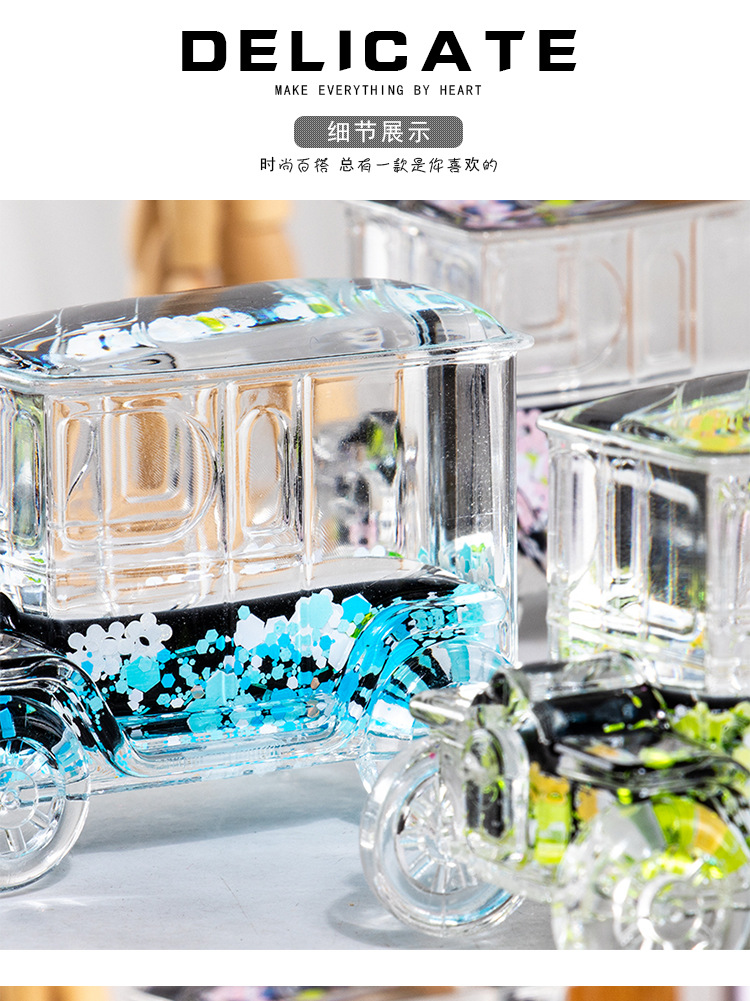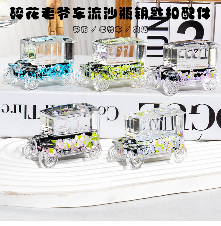 碎花黑色老爷车入油流沙瓶桌面摆件亚克力钥匙扣包包挂件礼品批发
