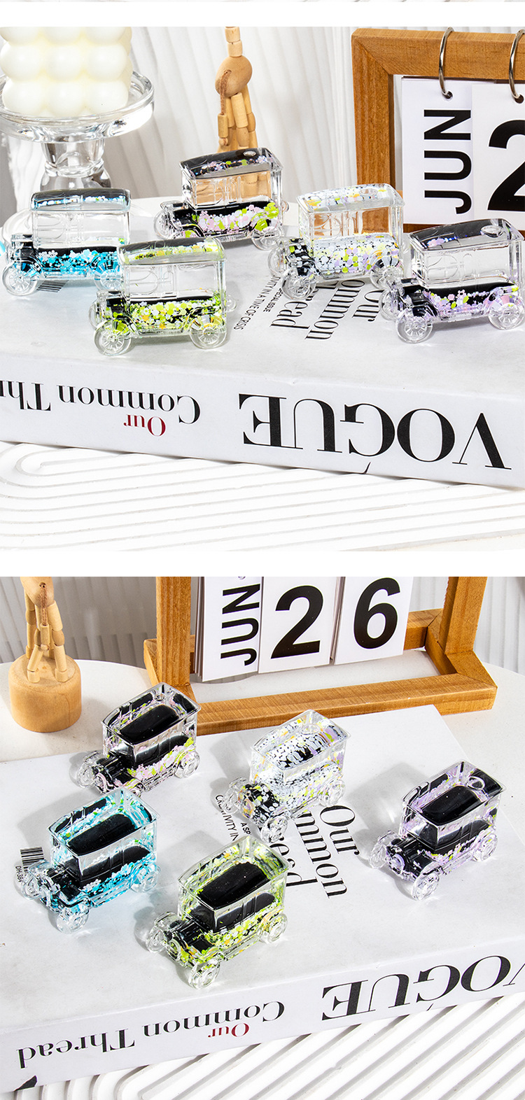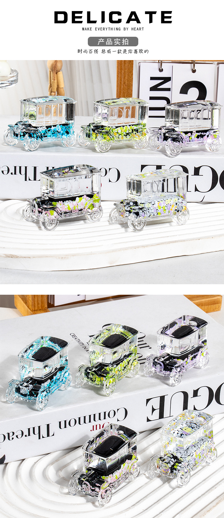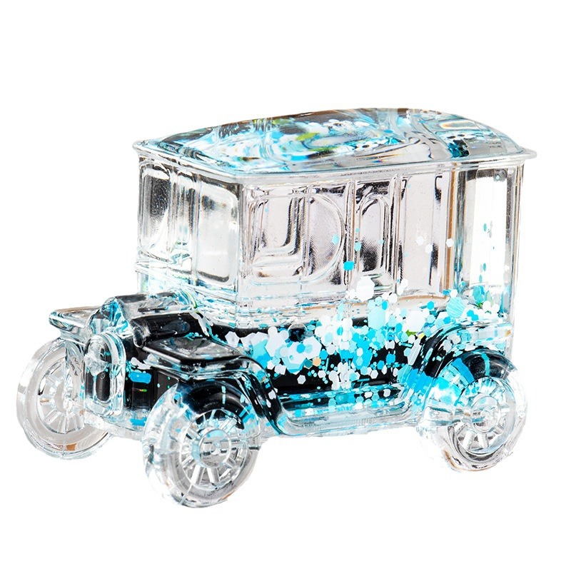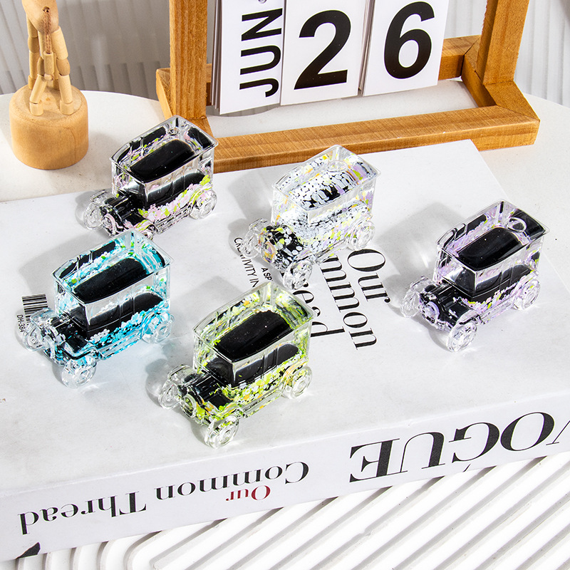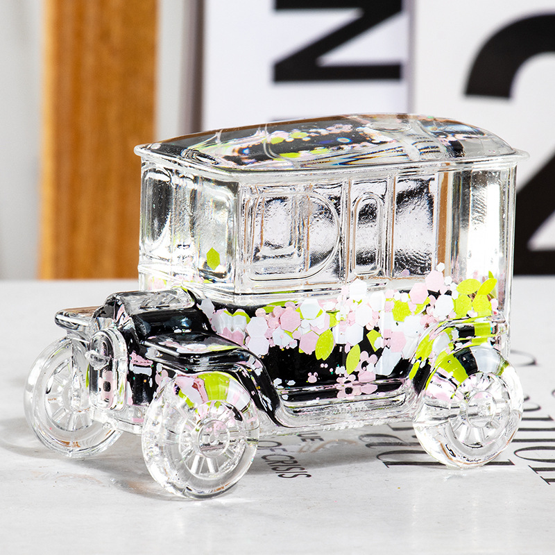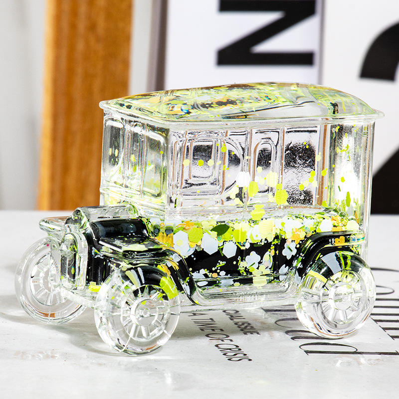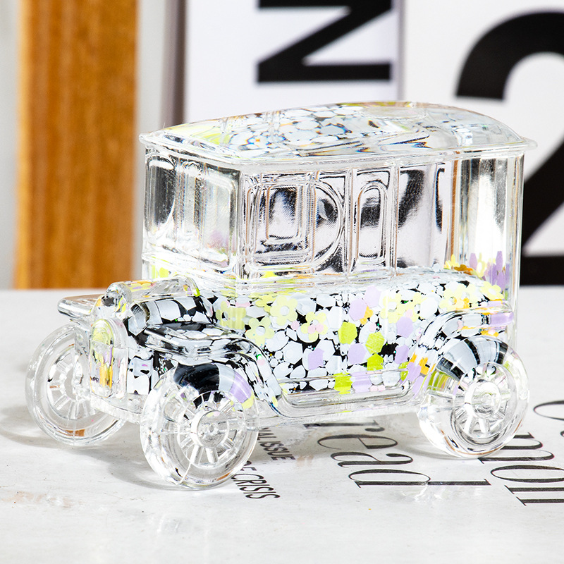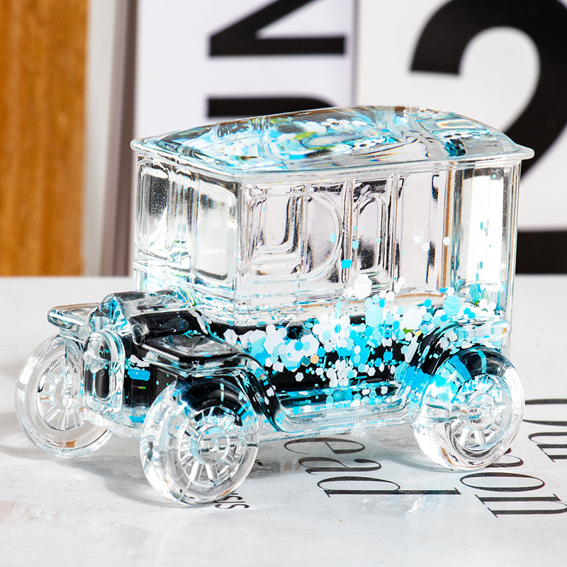 碎花黑色老爷车入油流沙瓶桌面摆件亚克力钥匙扣包包挂件礼品批发