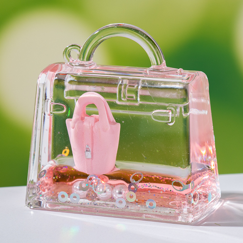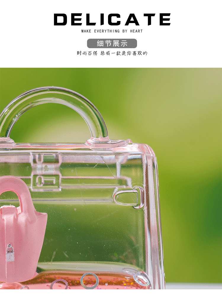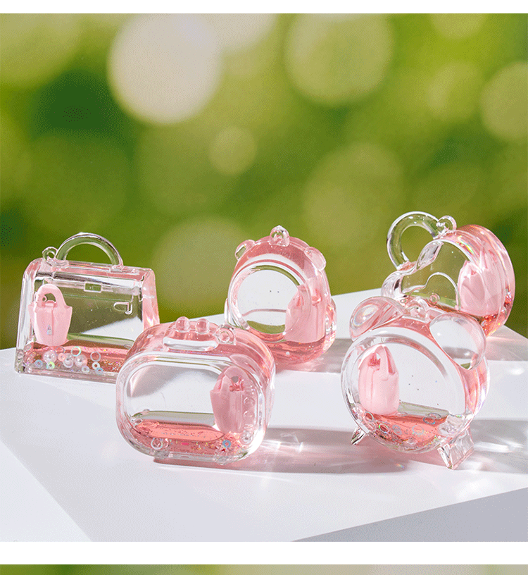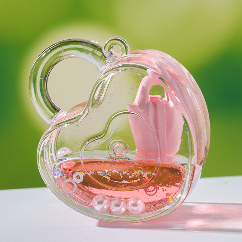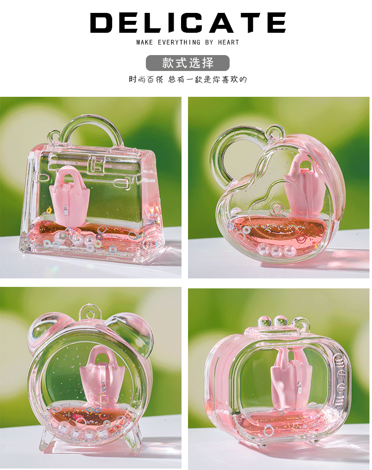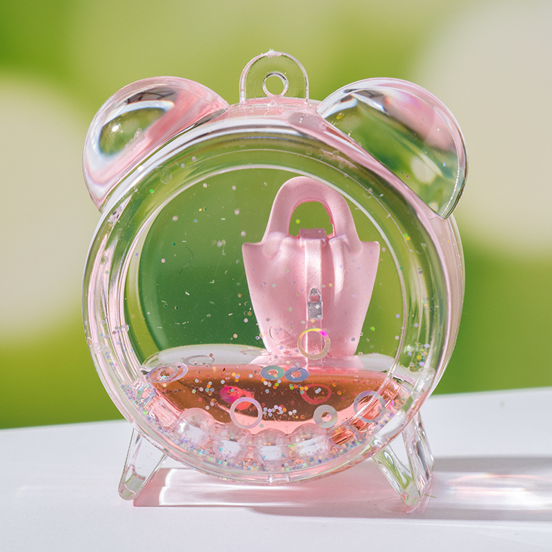 创意包包漂浮公仔液体入油流沙瓶摆件批发亚克力钥匙扣惊喜小礼品