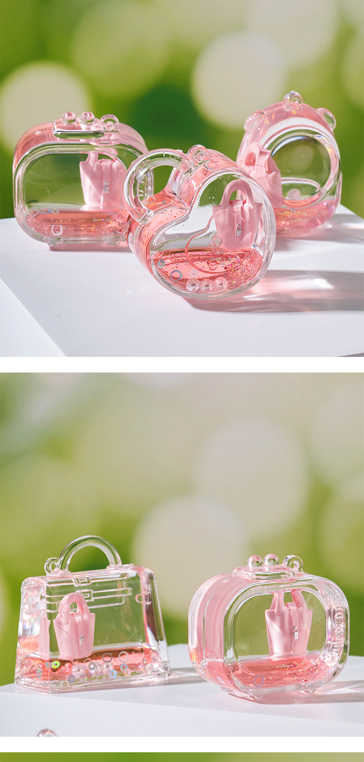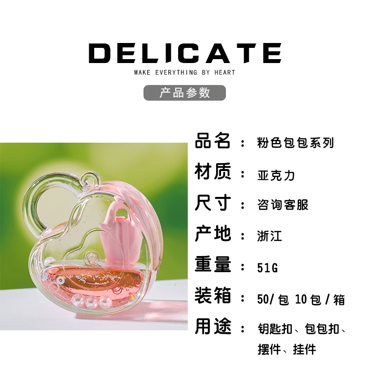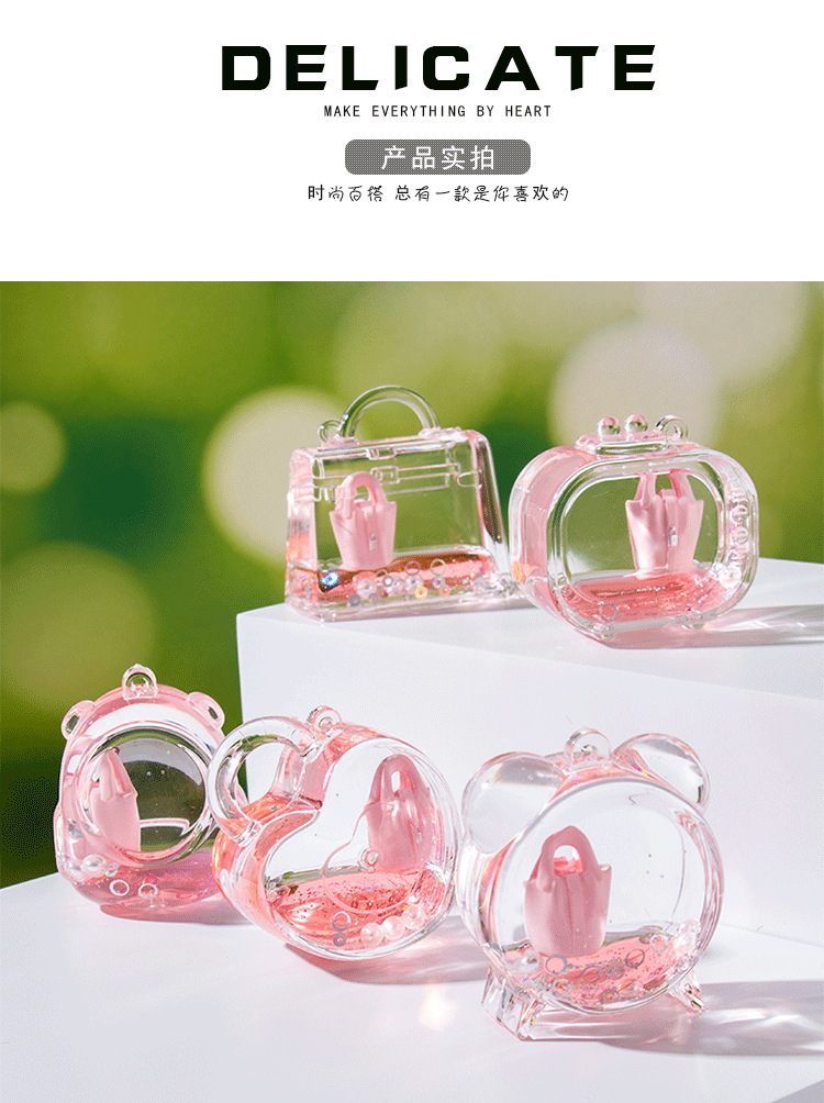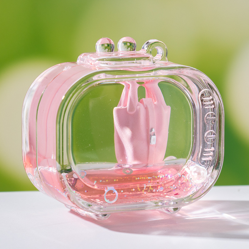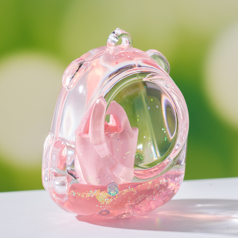 创意包包漂浮公仔液体入油流沙瓶摆件批发亚克力钥匙扣惊喜小礼品