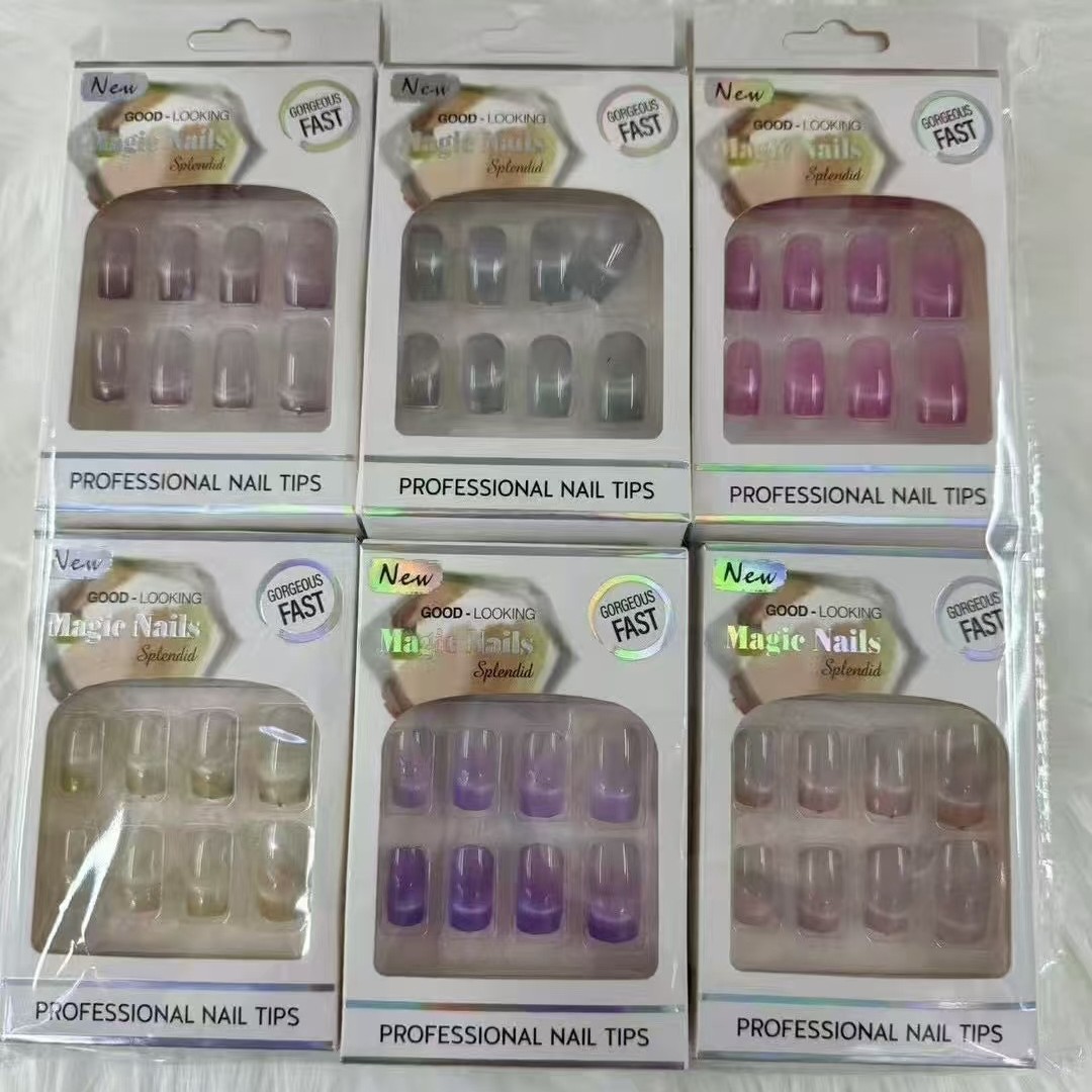新款猫眼温柔风清新可爱穿戴甲美甲贴片长款可拆卸假指甲片批发 投诉