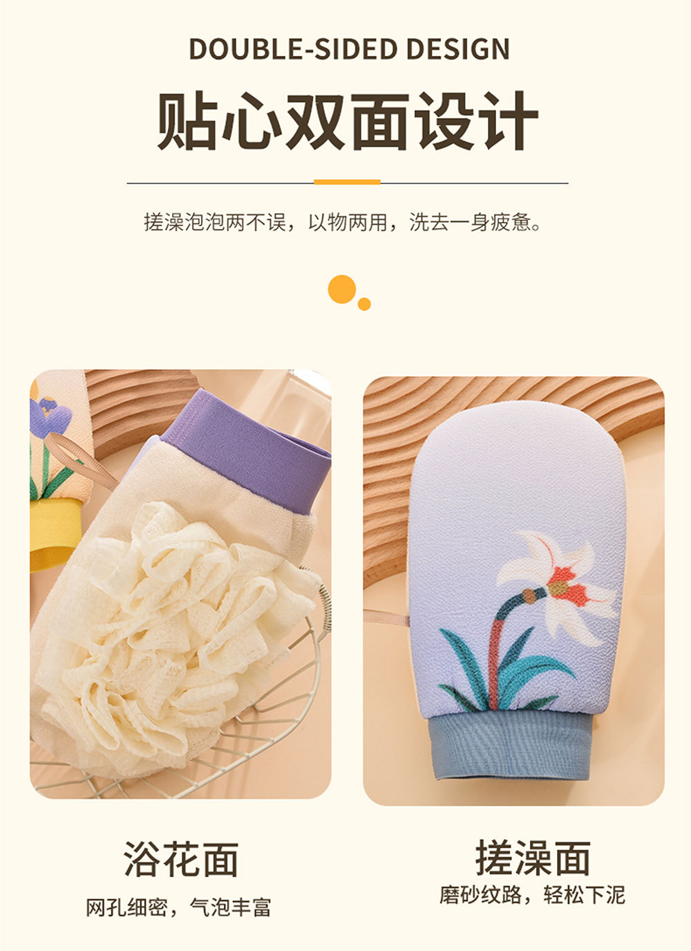 双面浴花二合一搓澡巾女士专用家用双面洗澡下泥沐浴手套洗澡神器 投诉