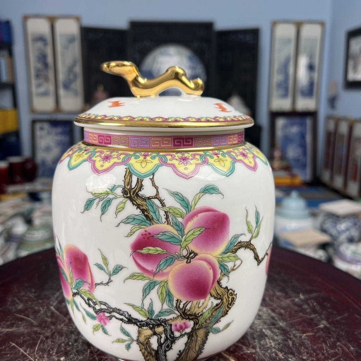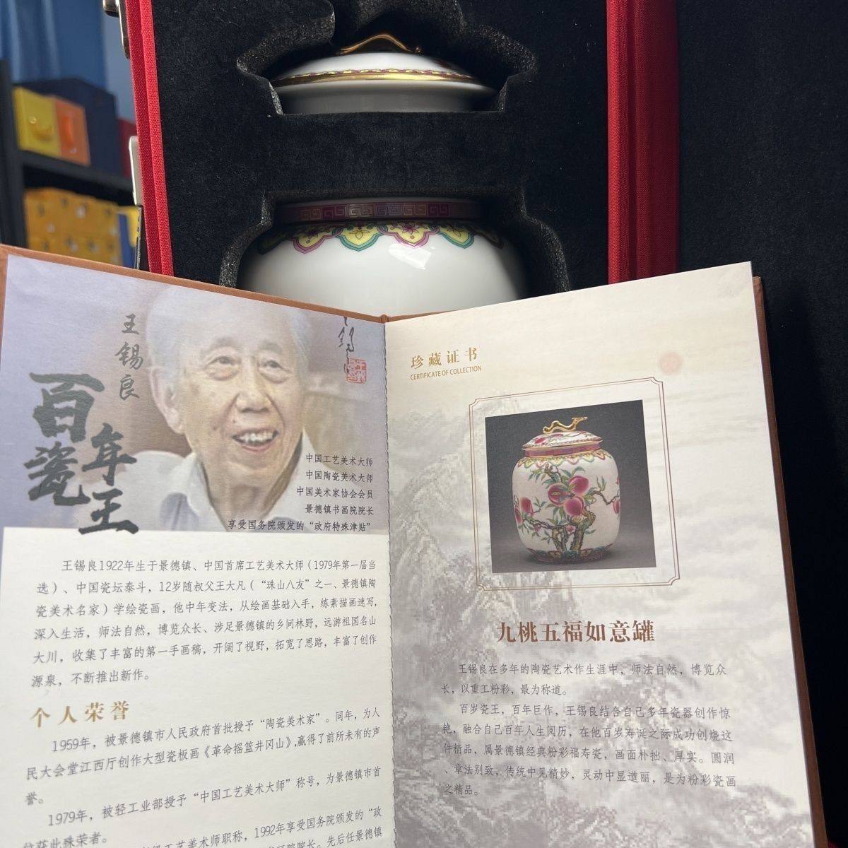 景德镇陶瓷王锡良手工《九桃五福》如意罐/收藏证书/礼盒 English | 投诉