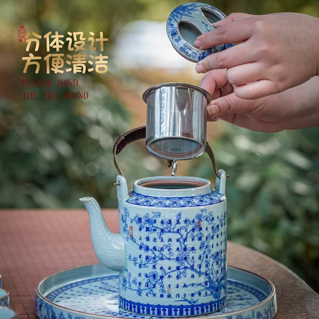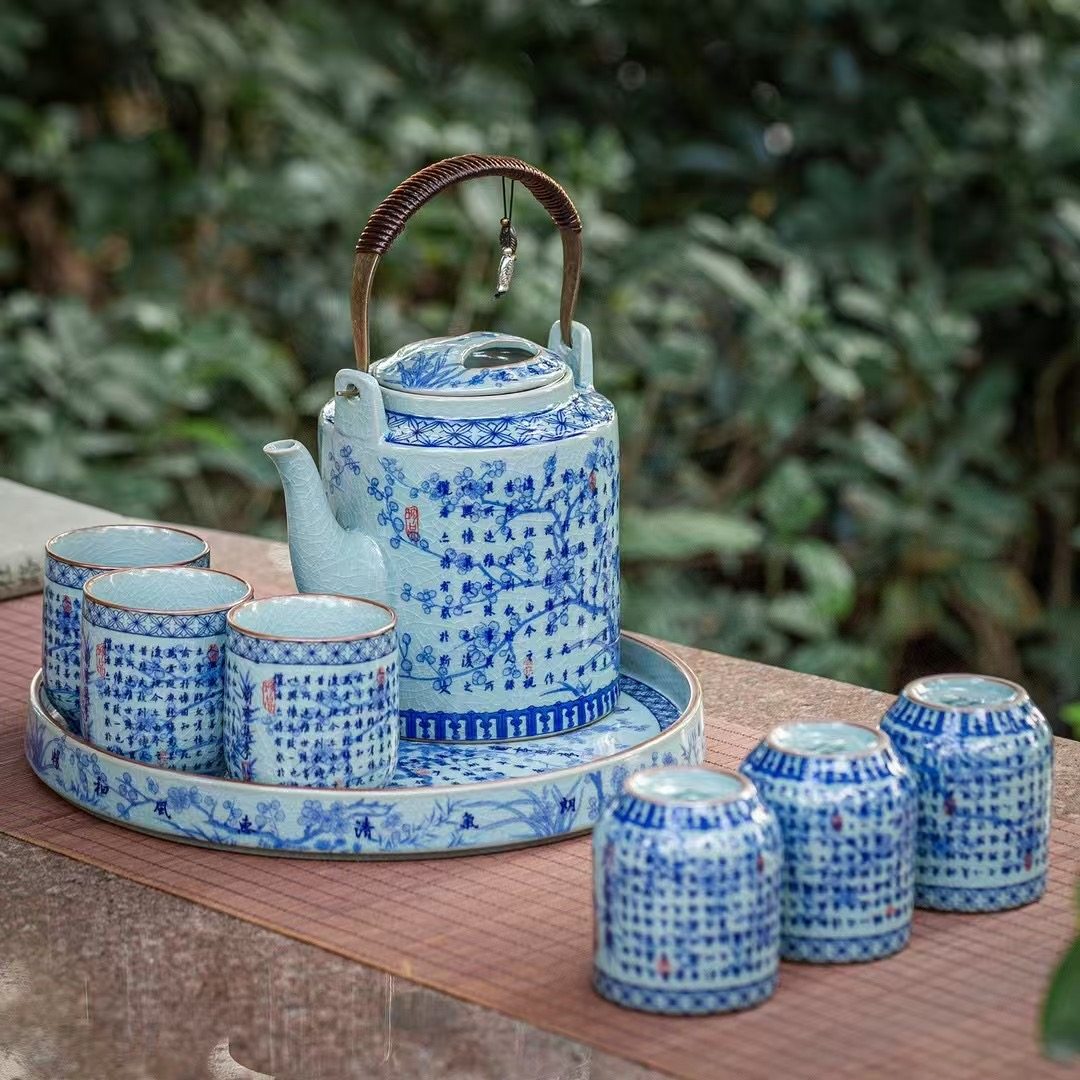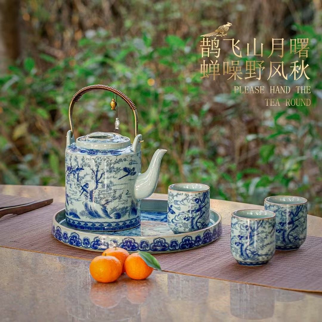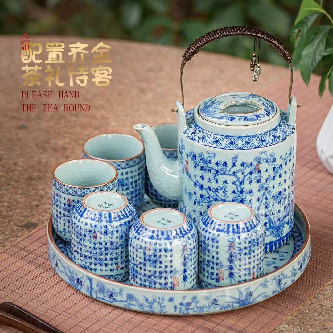 青花瓷复古风陶瓷茶具套装家用提梁壶大容量客厅冷水壶泡茶壶茶杯 English | 投诉
