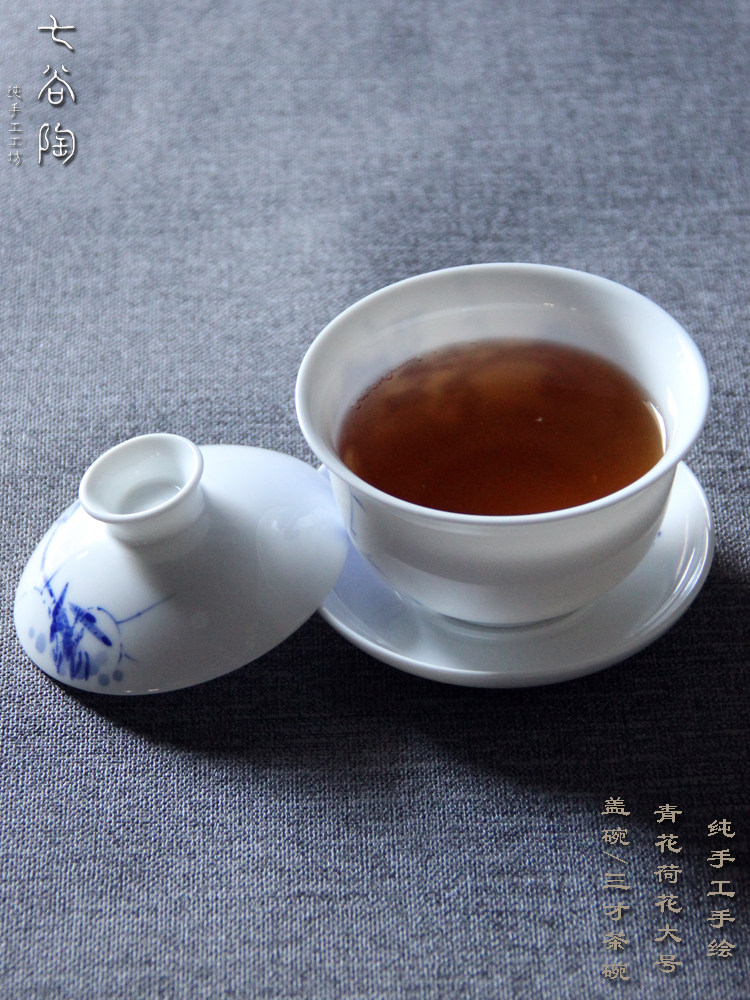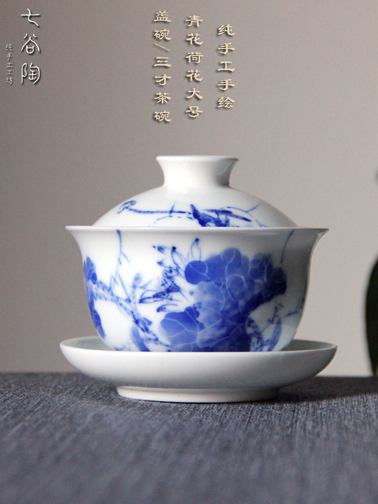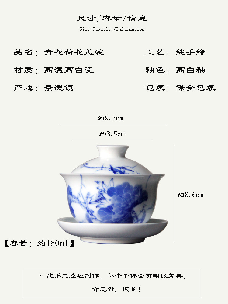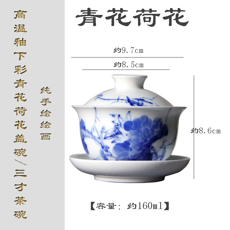 景德镇青花荷花手工盖碗陶瓷手绘盖碗茶杯中式功夫茶具三才泡茶碗 English | 投诉
