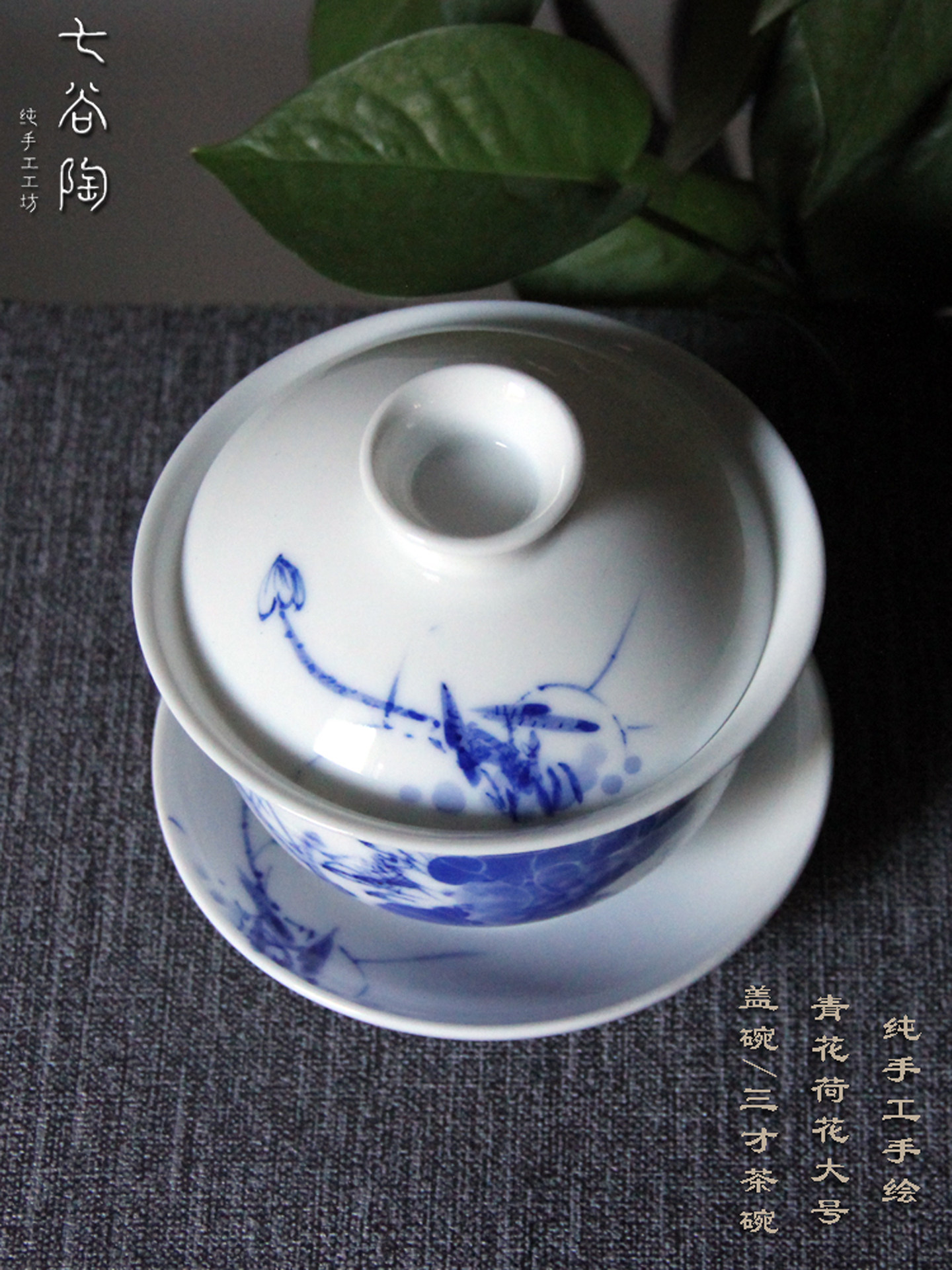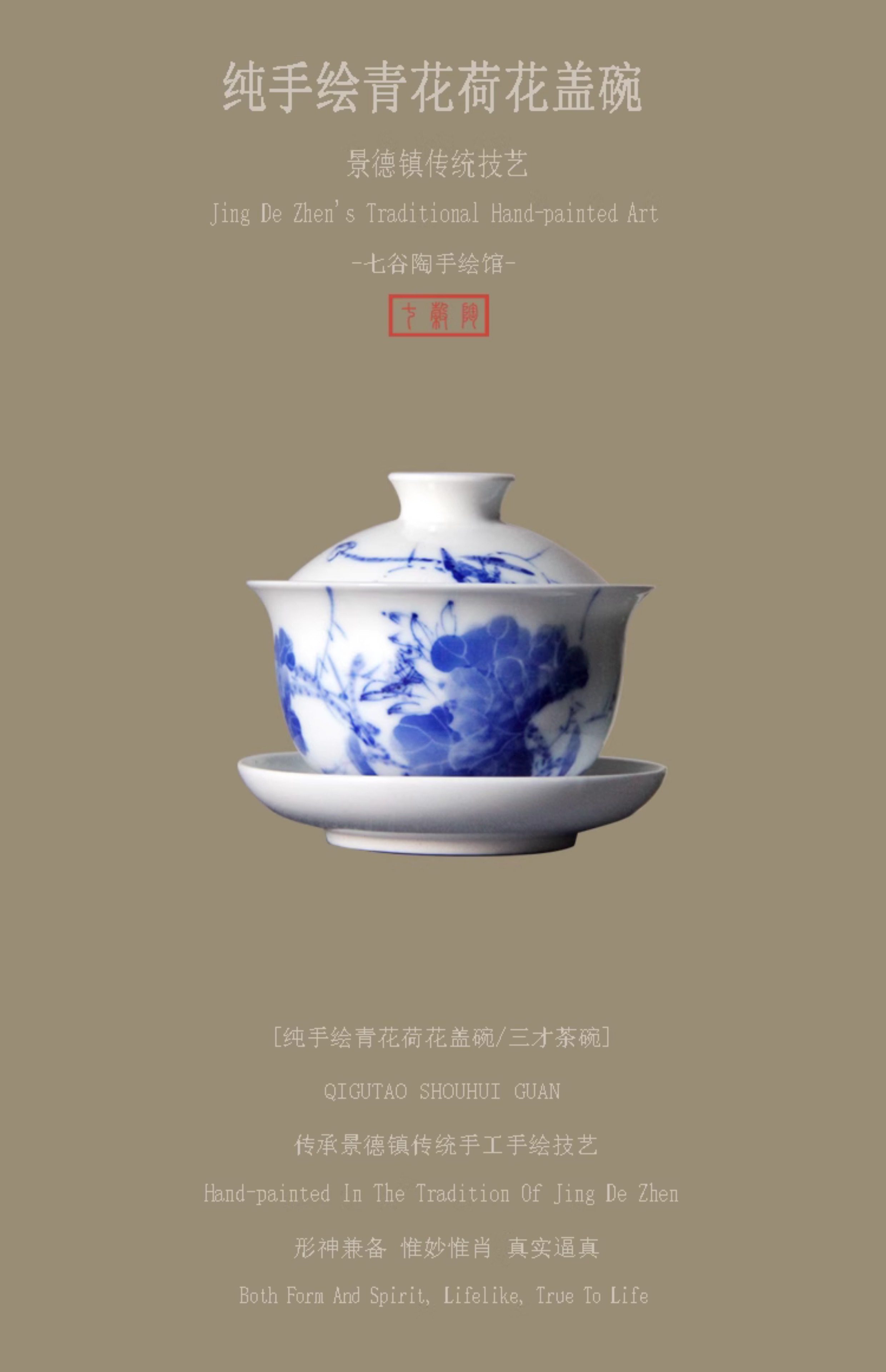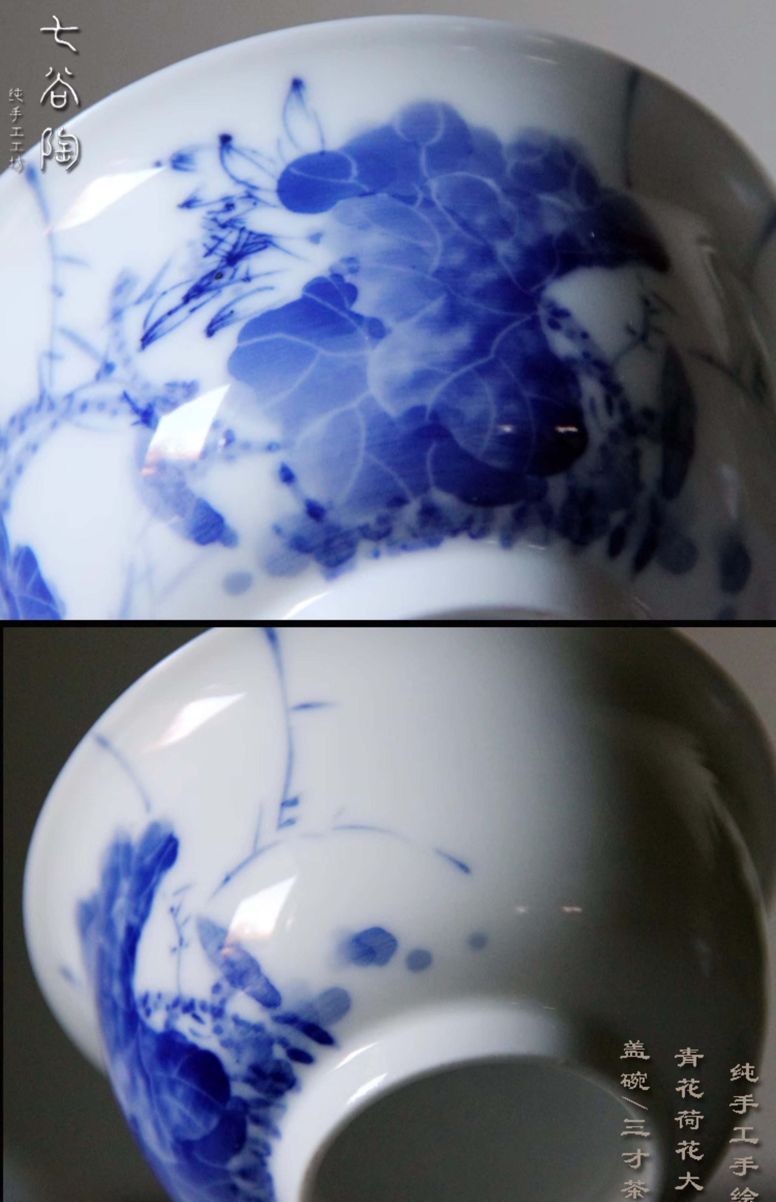 景德镇青花荷花手工盖碗陶瓷手绘盖碗茶杯中式功夫茶具三才泡茶碗 English | 投诉