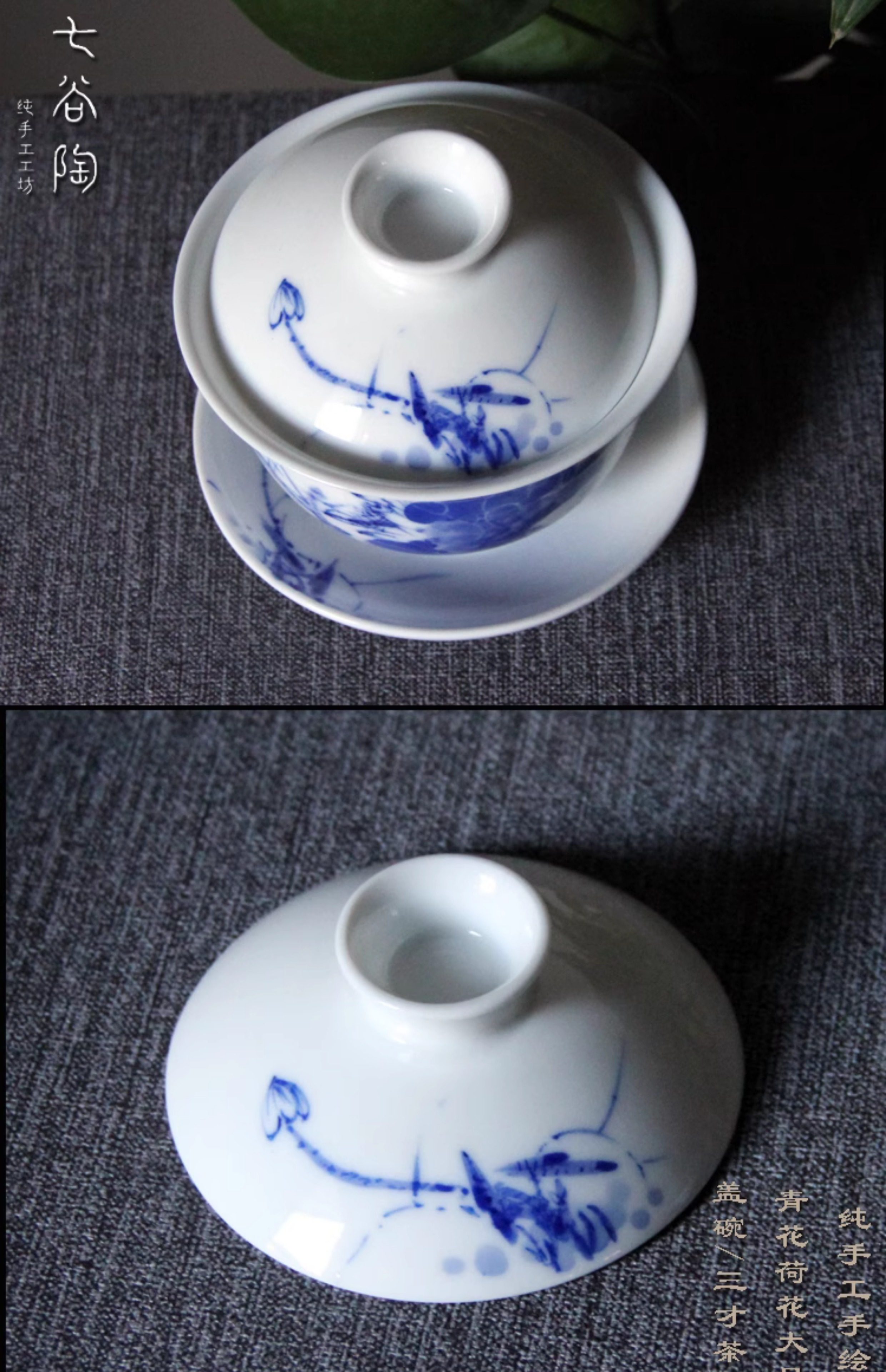 主图来源: 自主实拍图 颜色分类: 青花荷花盖碗