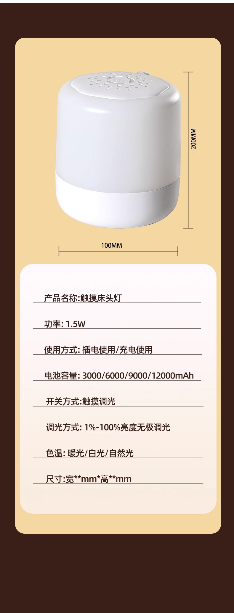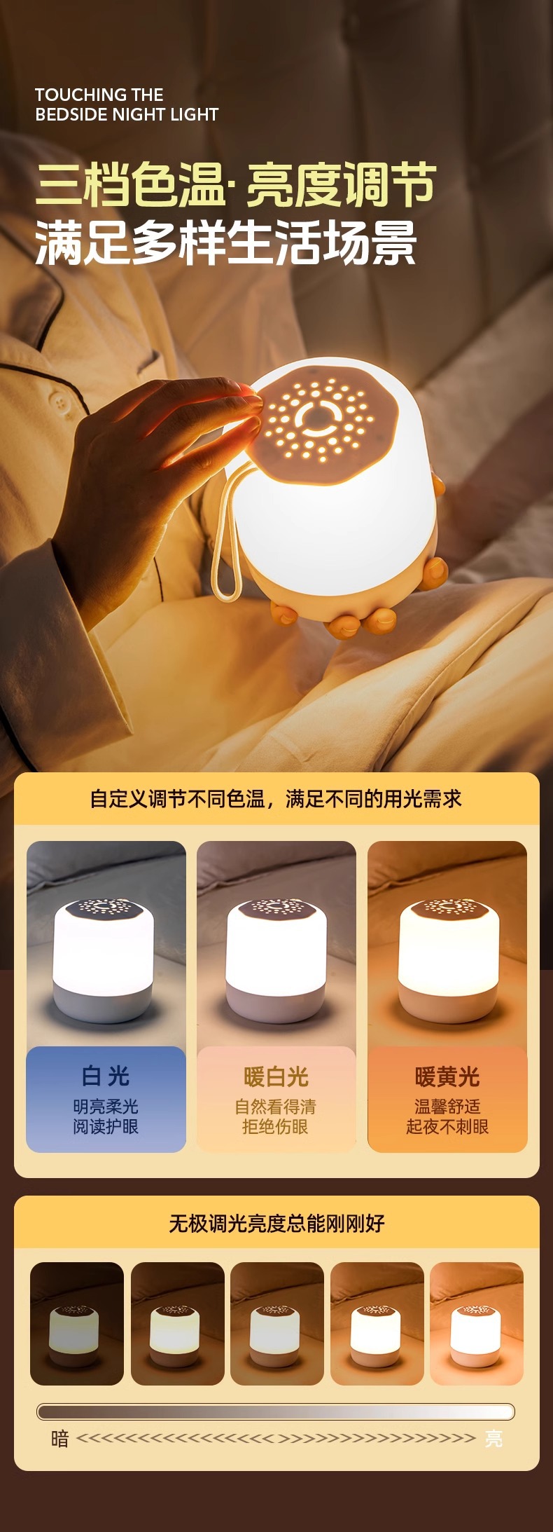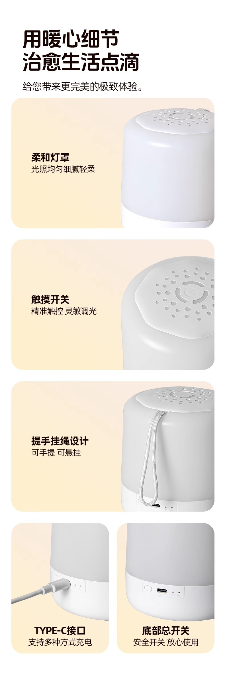 附加功能: 拍拍灯,夜灯,氛围灯,其他 电压: ≤36V 开关类型: 触摸式 风格: 现代简约 重量: 0.5 kg/台