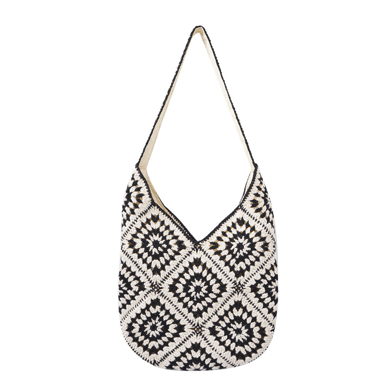 颜色: 咖色,黑色 风格: 清新甜美 货号: QBH-329 材质: 棉 箱包潮流款式: 托特包 箱包大小: 大 流行元素: 编织,撞色 上市年份季节: 2025年春季 里料质地: 涤纶 箱包形状: 椭圆形