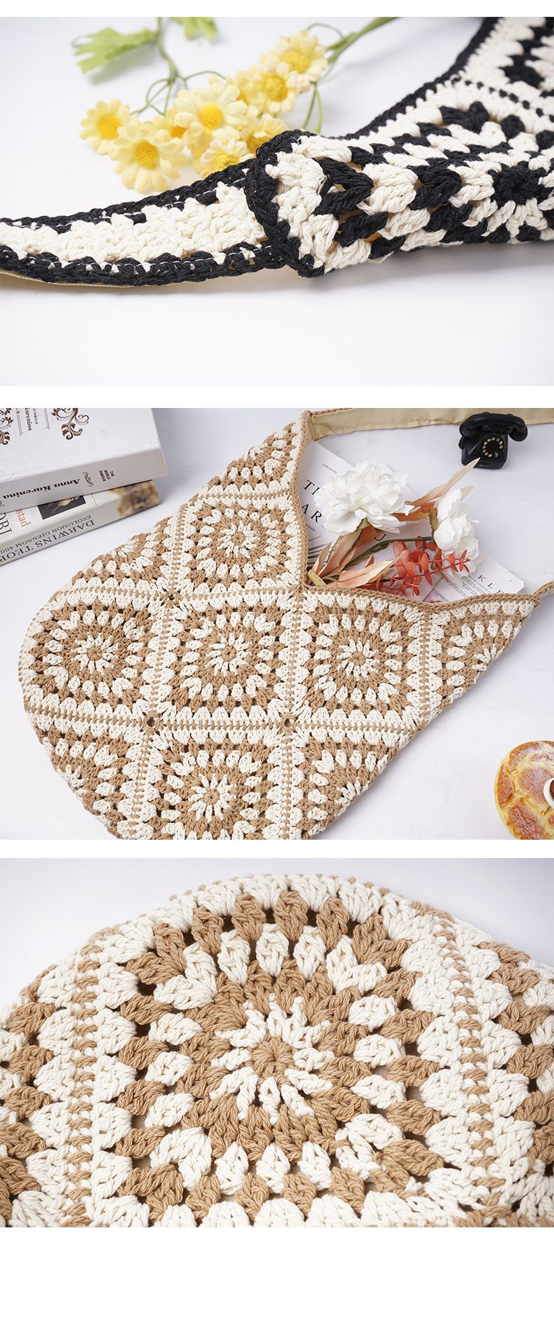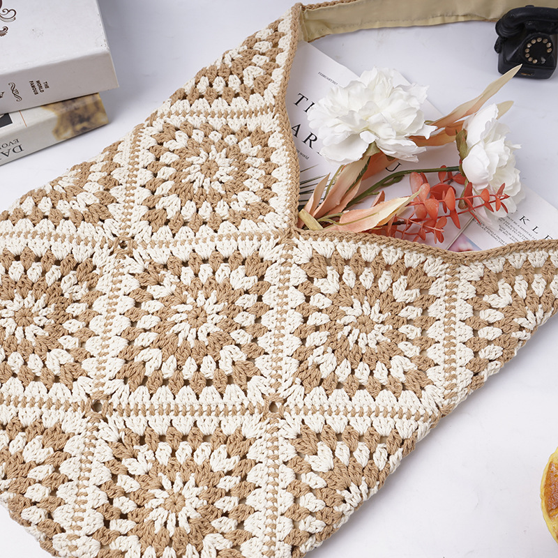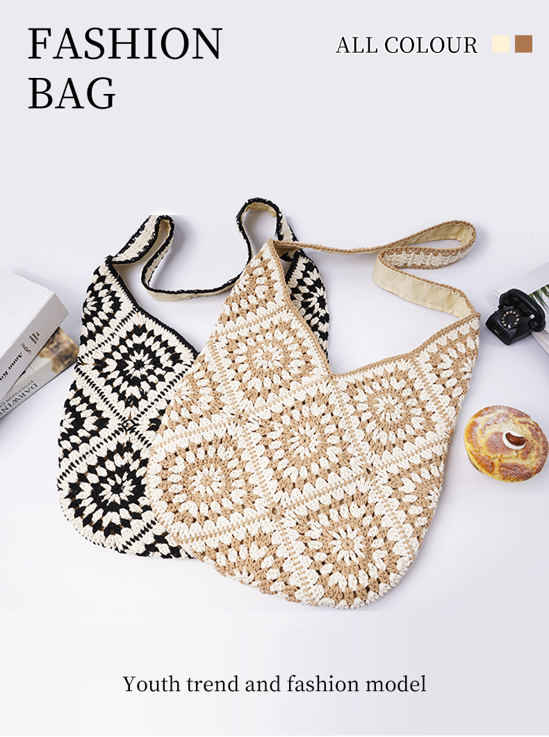 托特包新品源头厂家批发定 制撞色棉线文艺复古手工编织包 投诉