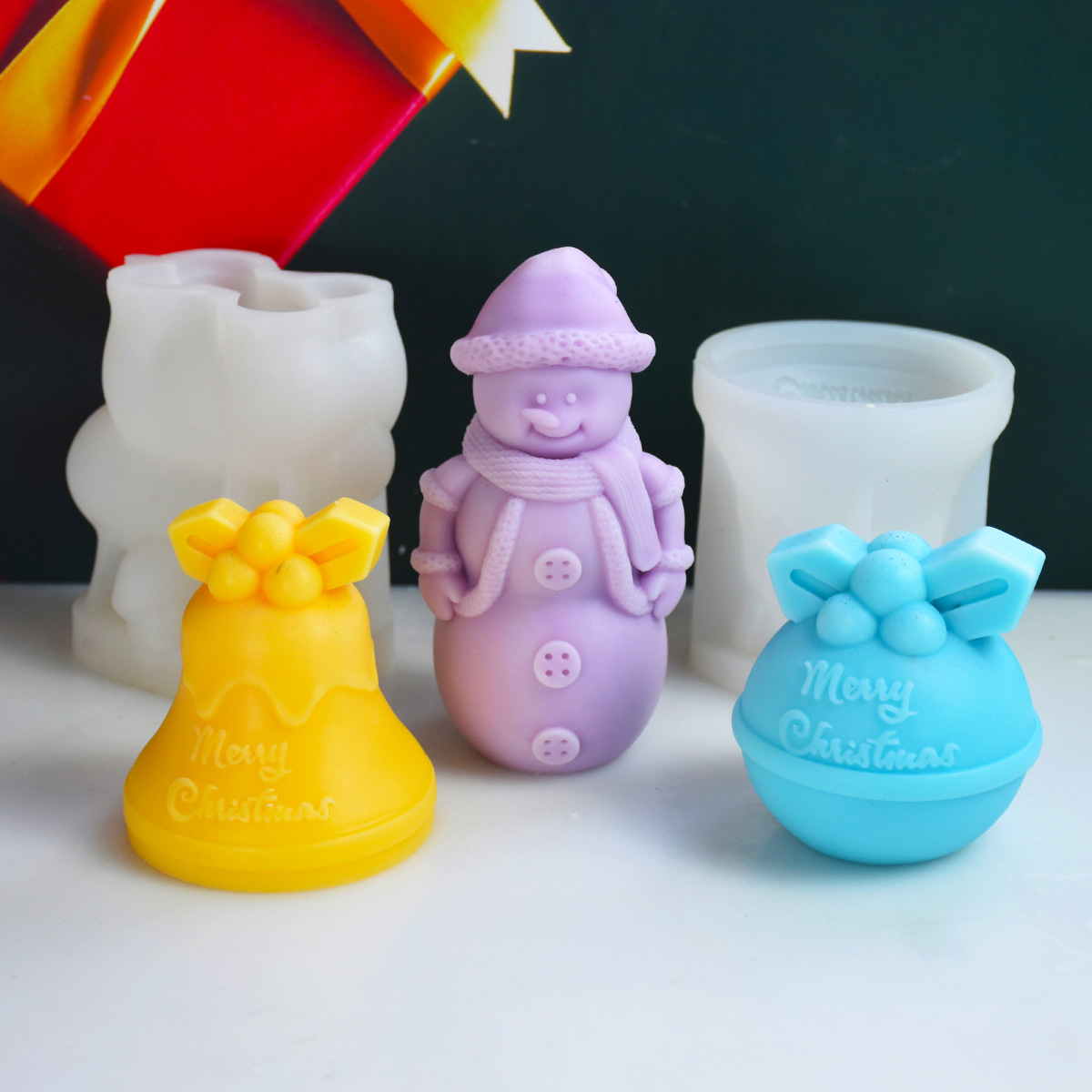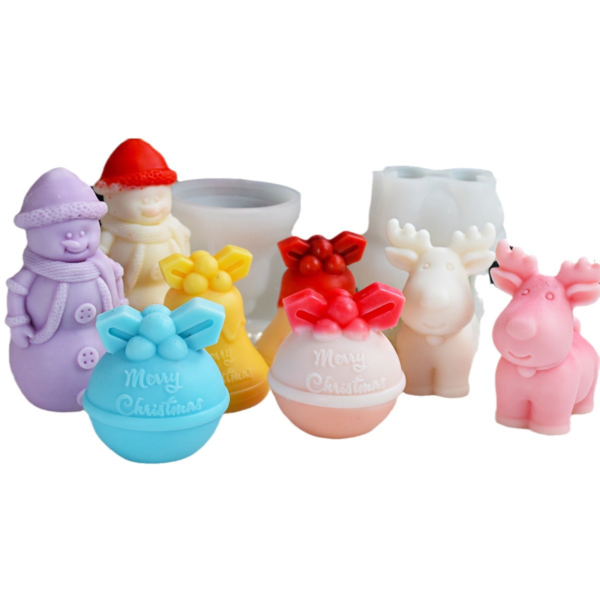 圣诞蜡烛硅胶模具麋鹿圣诞雪人铃铛蜡烛石膏摆件模具diy创意摆件