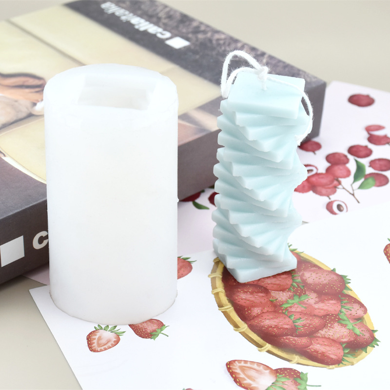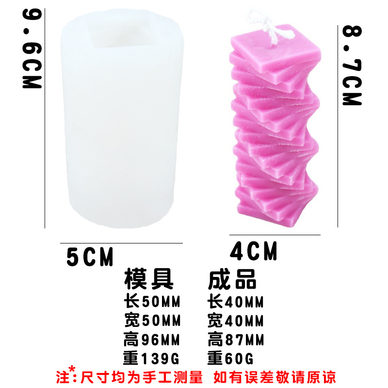 旋转螺旋方块柱香薰蜡烛硅胶模具 立体叠加方块摆件模具现货跨境 投诉
