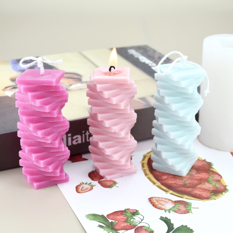 旋转螺旋方块柱香薰蜡烛硅胶模具 立体叠加方块摆件模具现货跨境