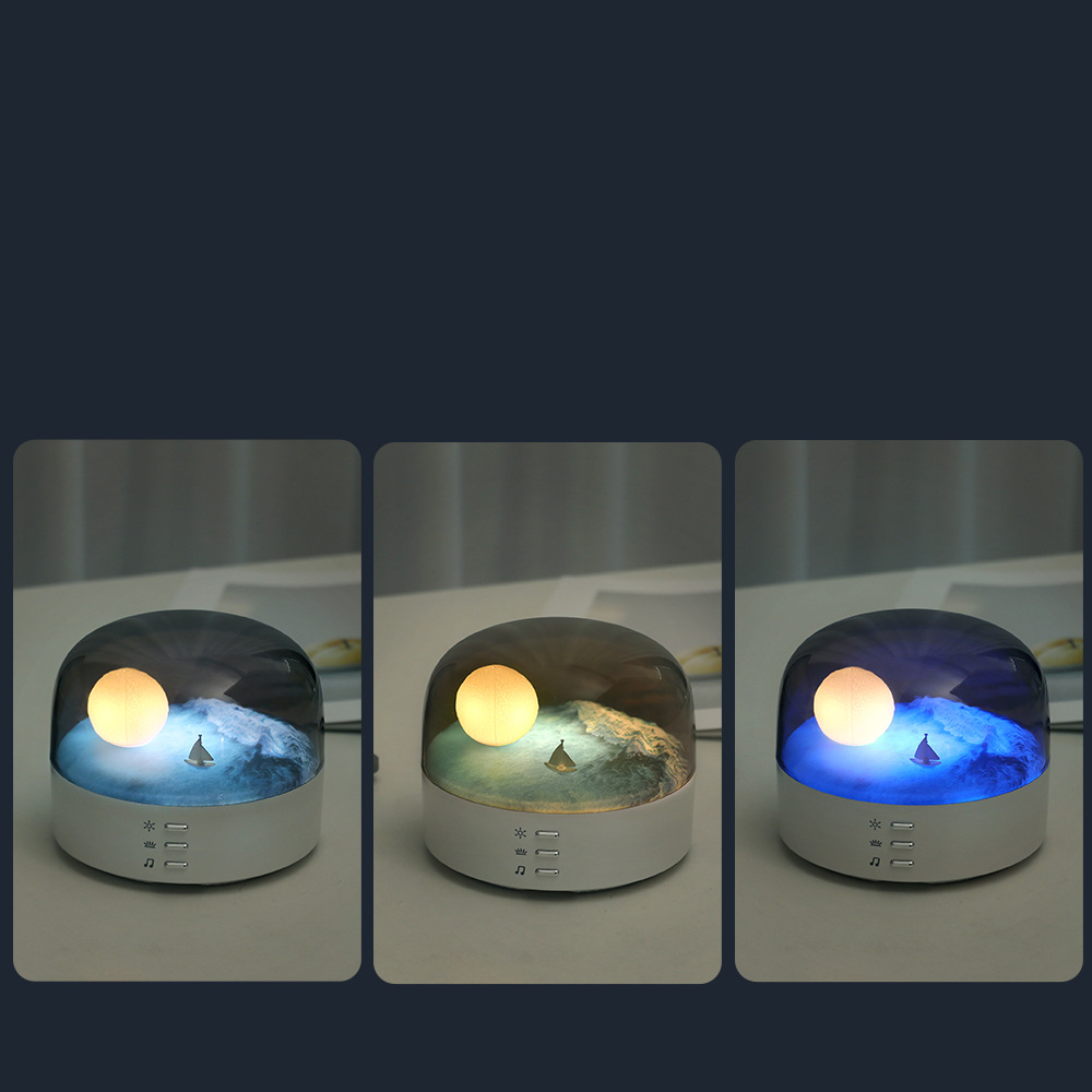 1.创意音箱氛围灯,造型独特,可装饰环境,具有氛围灯、呼吸灯和蓝牙音箱功能。