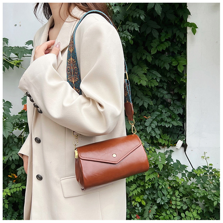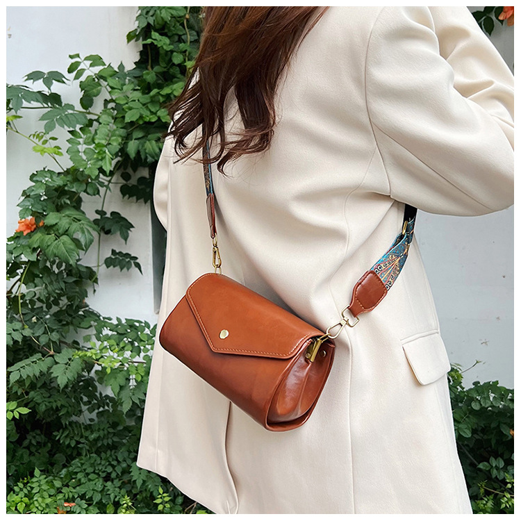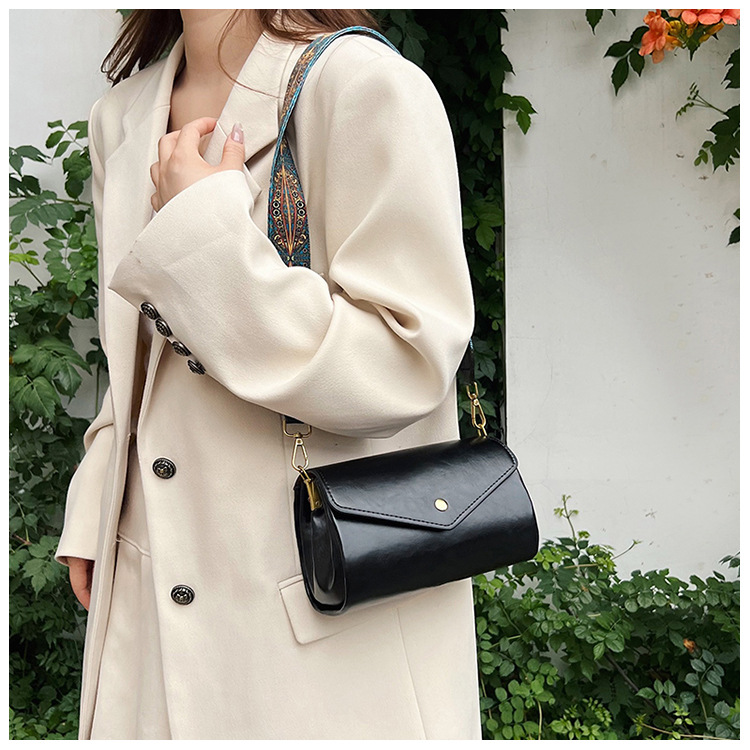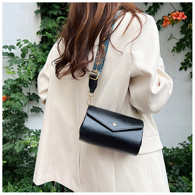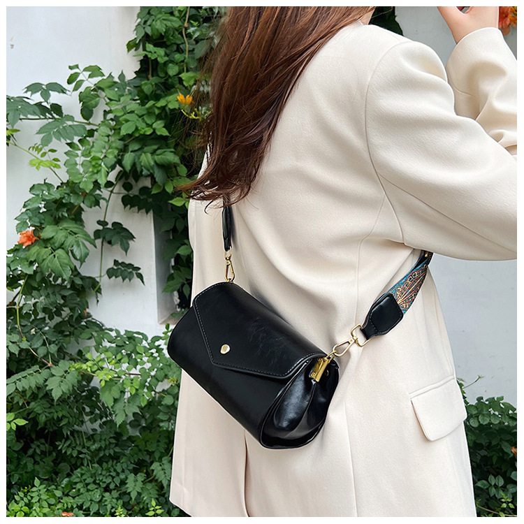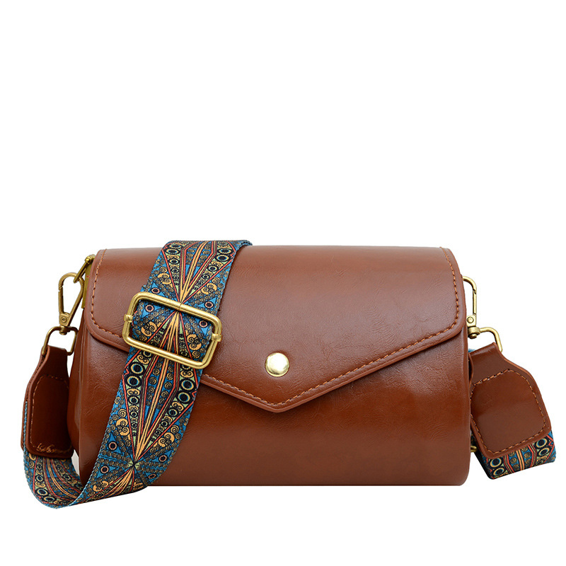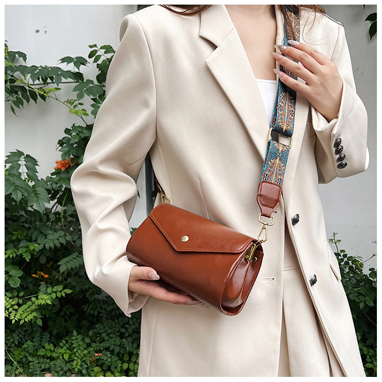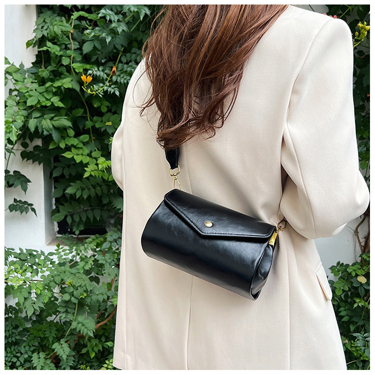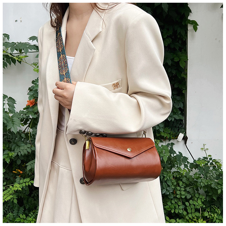 复古女士斜挎包时尚多隔层圆筒包PU软皮质感大容量轻便休闲单肩包