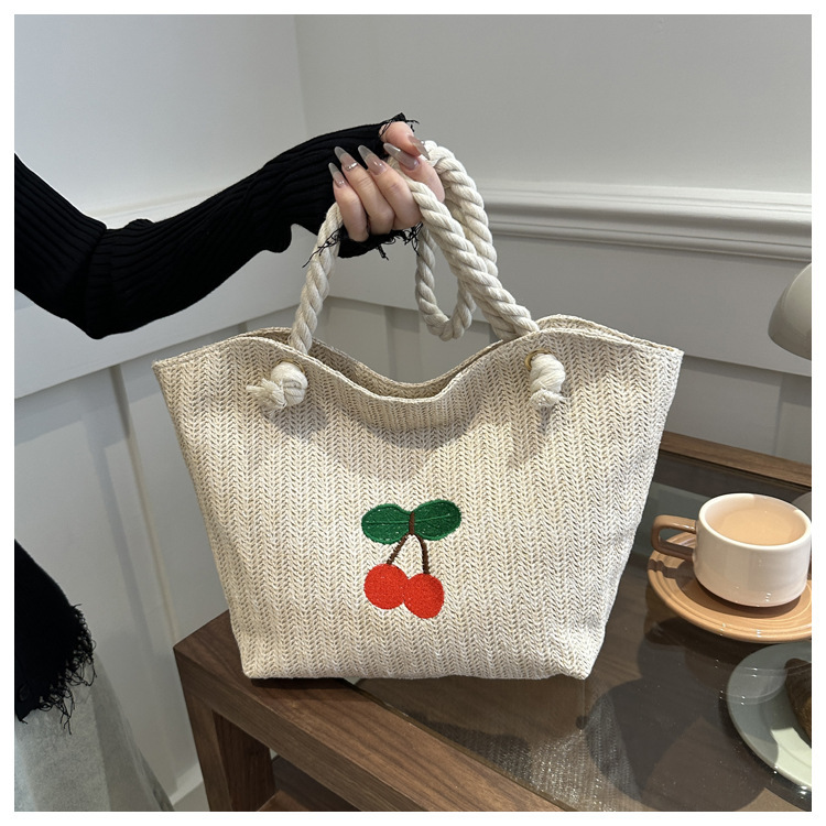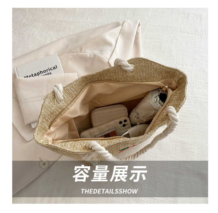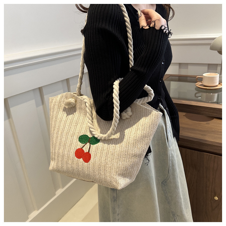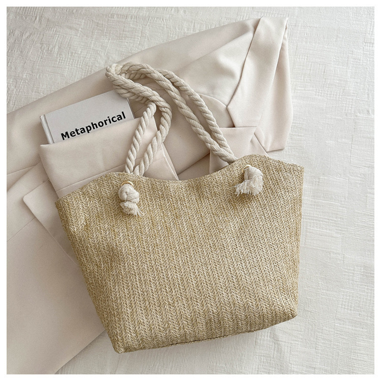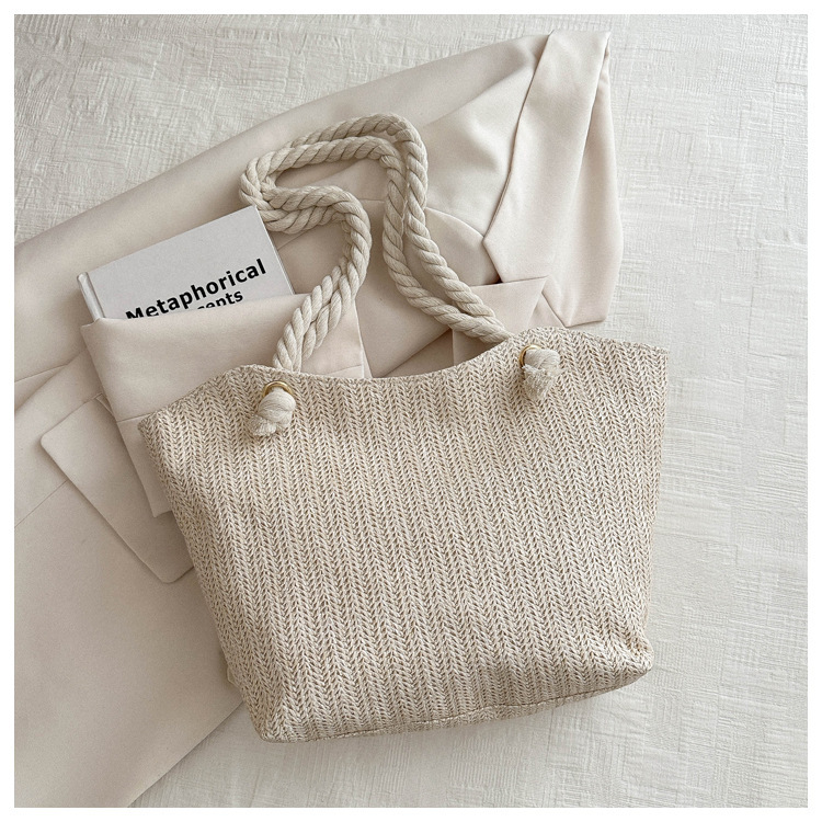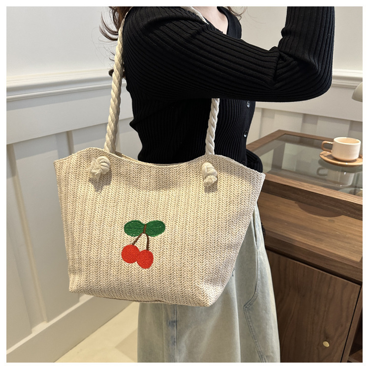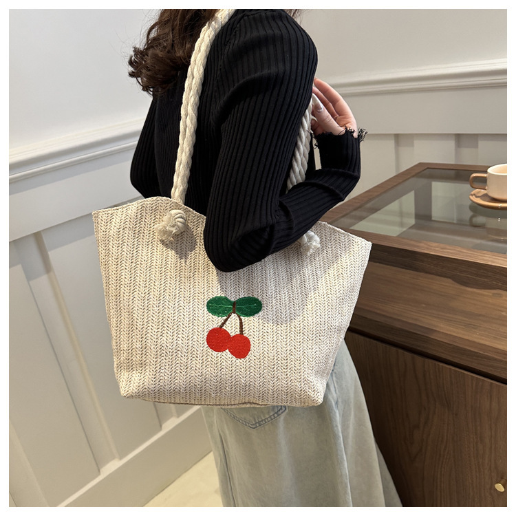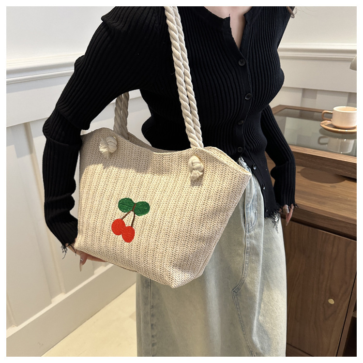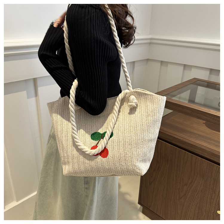 编织草编包包女2024新款百搭单肩手提包时尚学生通勤大容量托特包