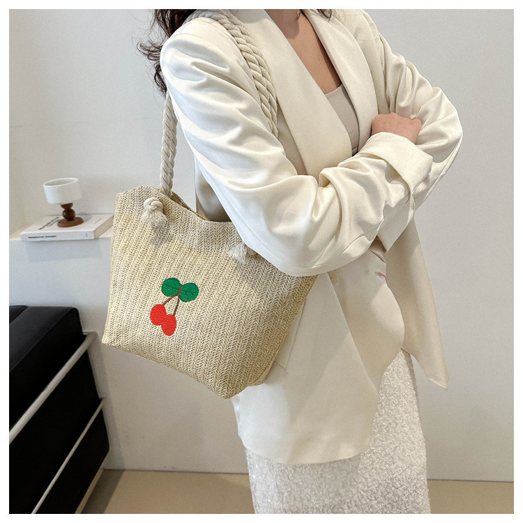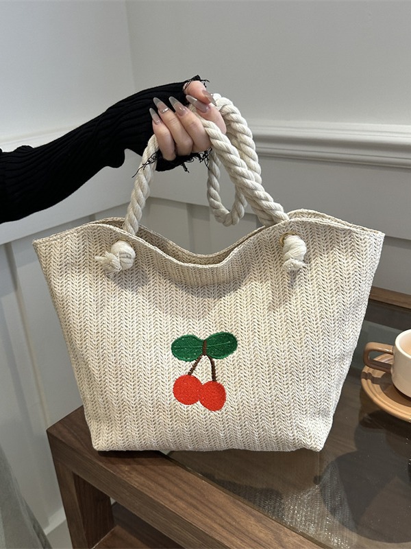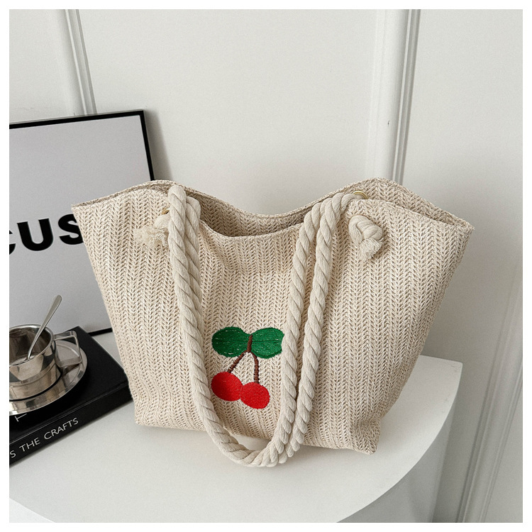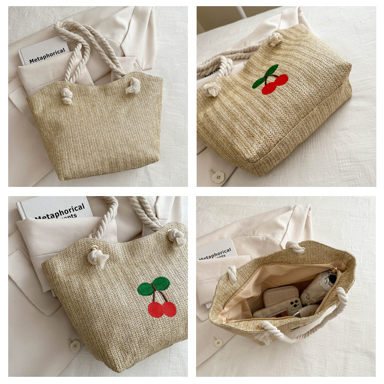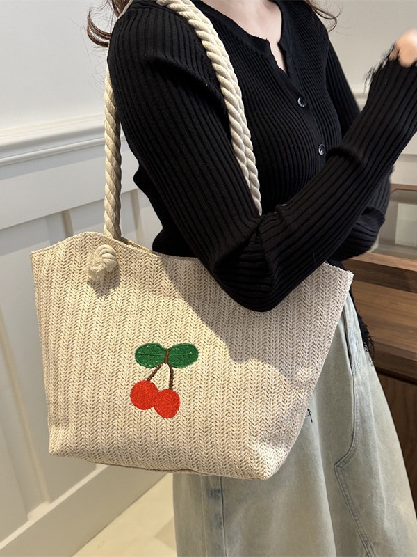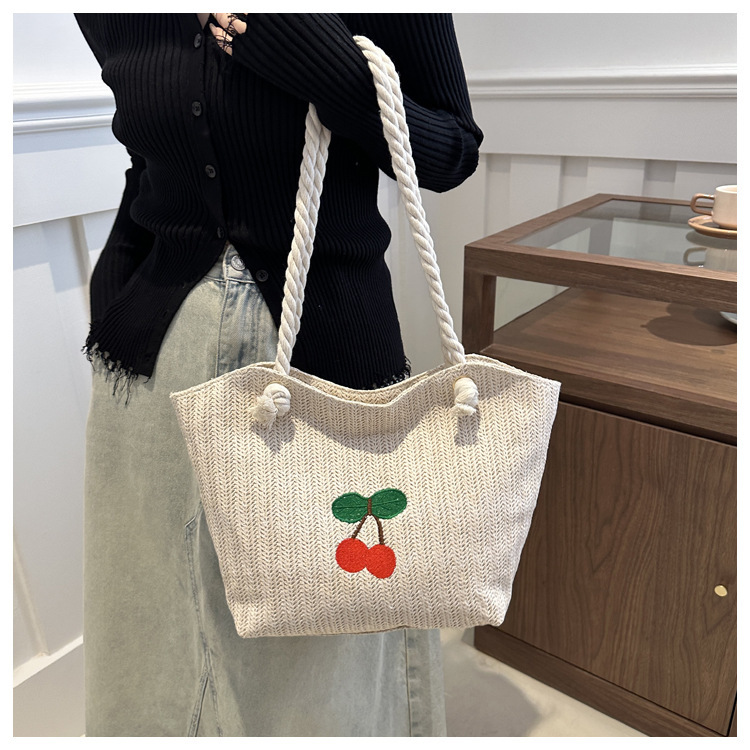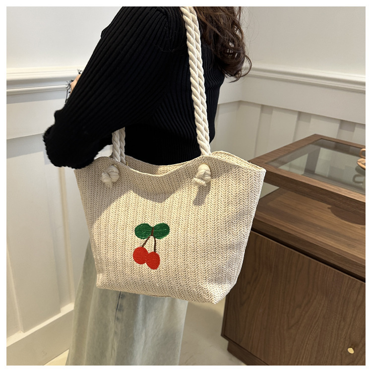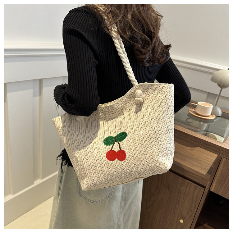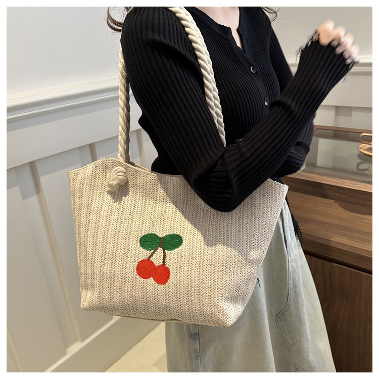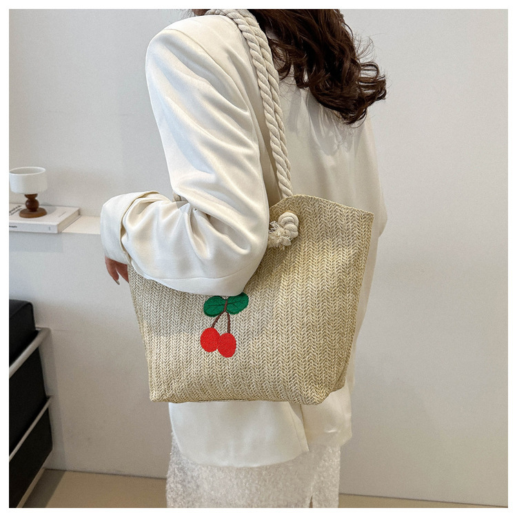 编织草编包包女2024新款百搭单肩手提包时尚学生通勤大容量托特包