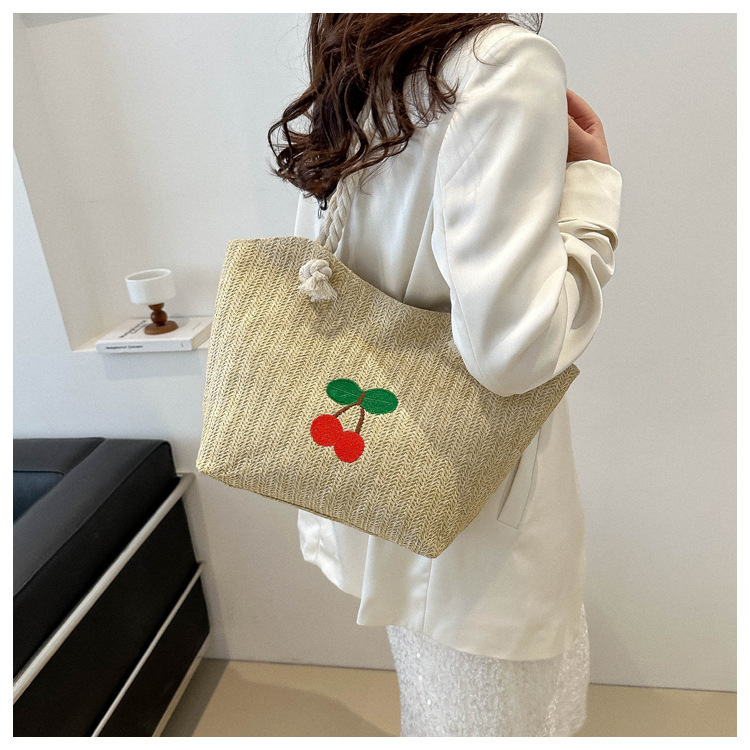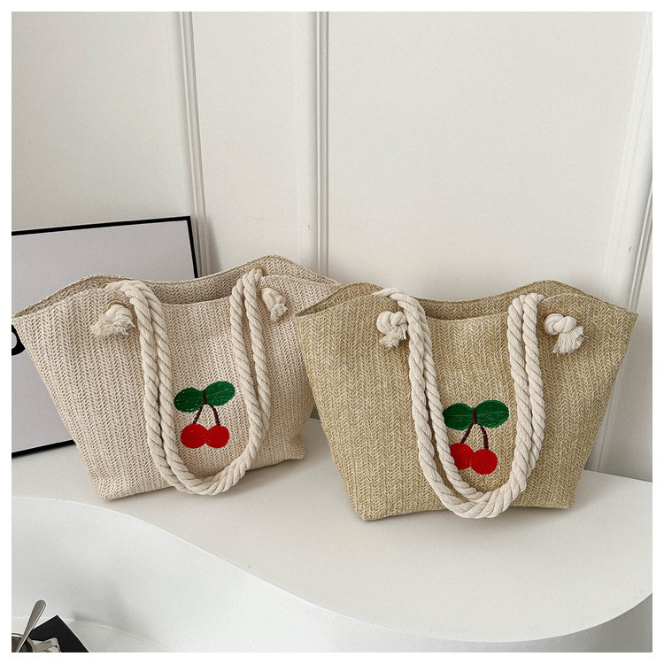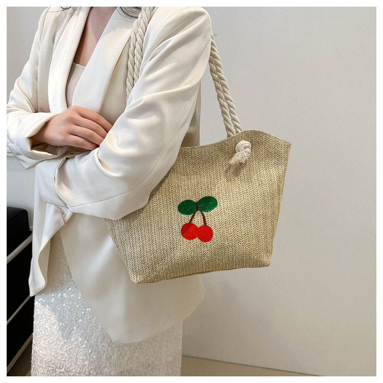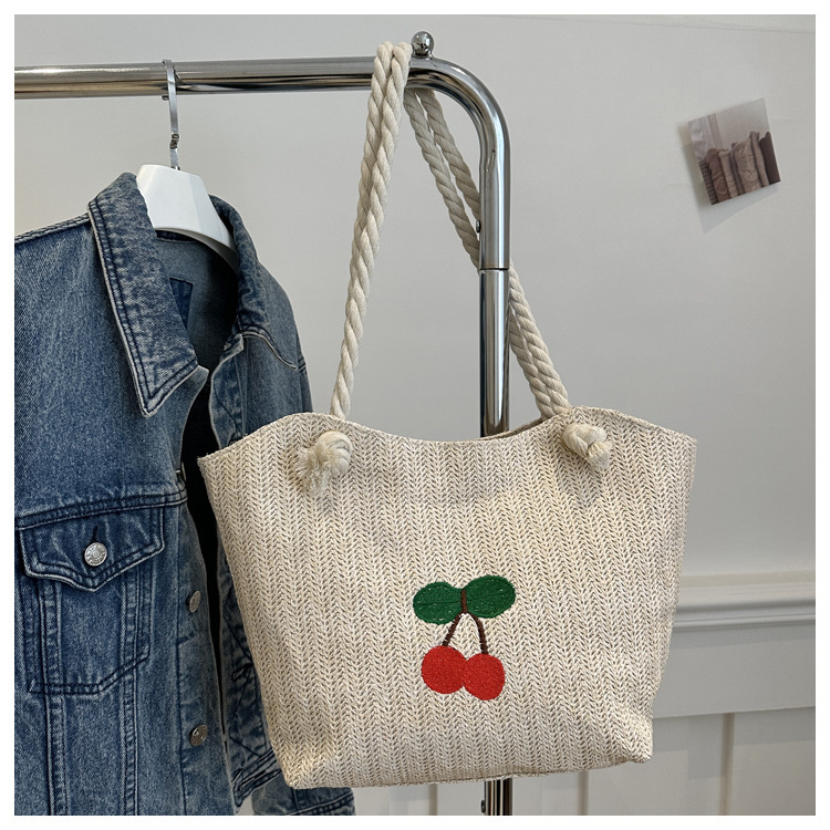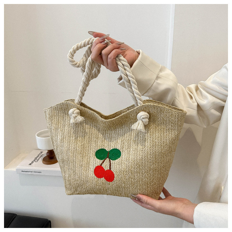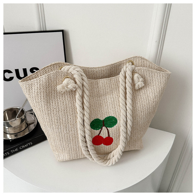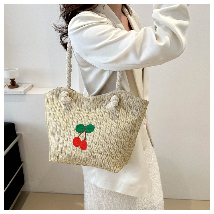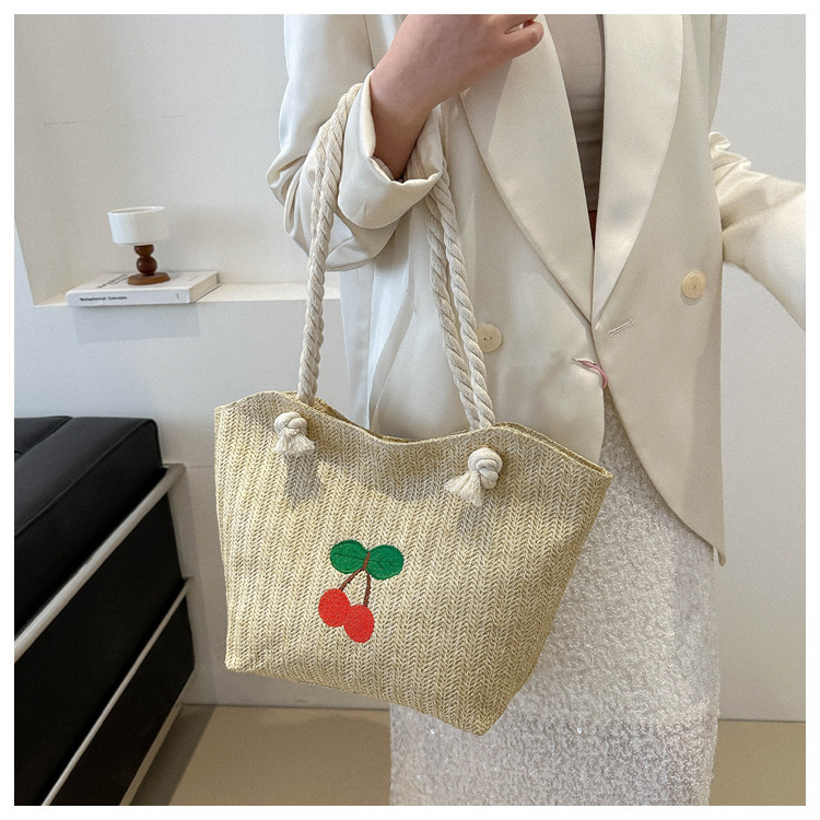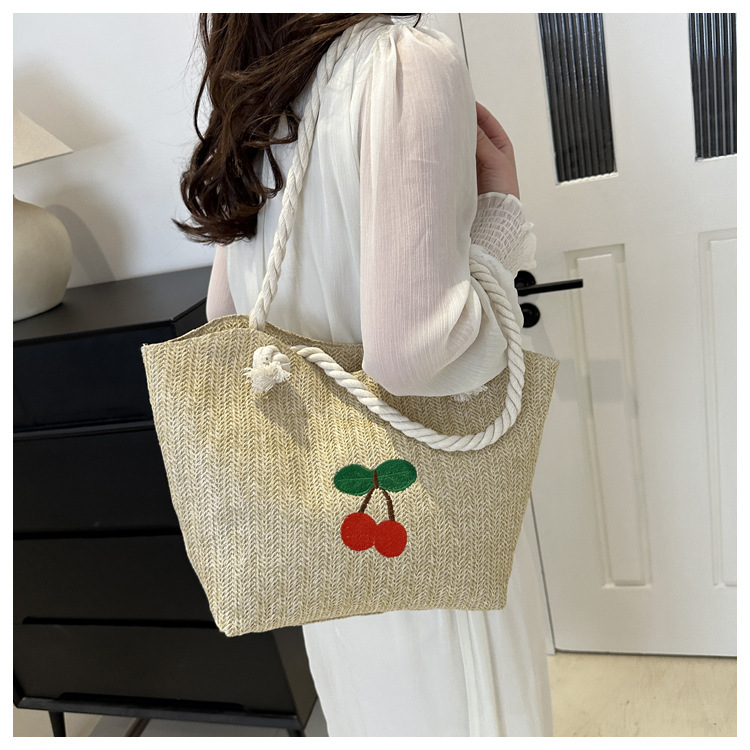 编织草编包包女2024新款百搭单肩手提包时尚学生通勤大容量托特包