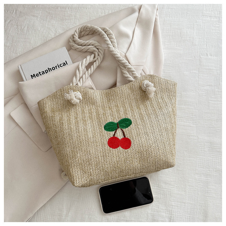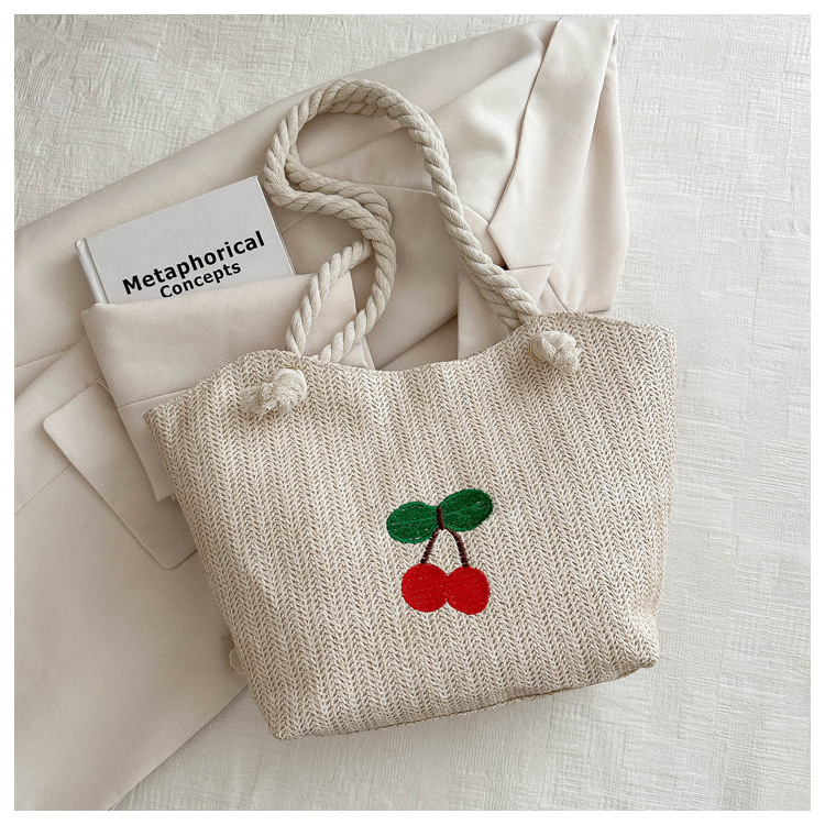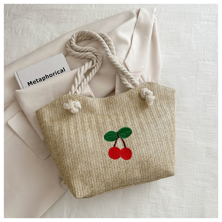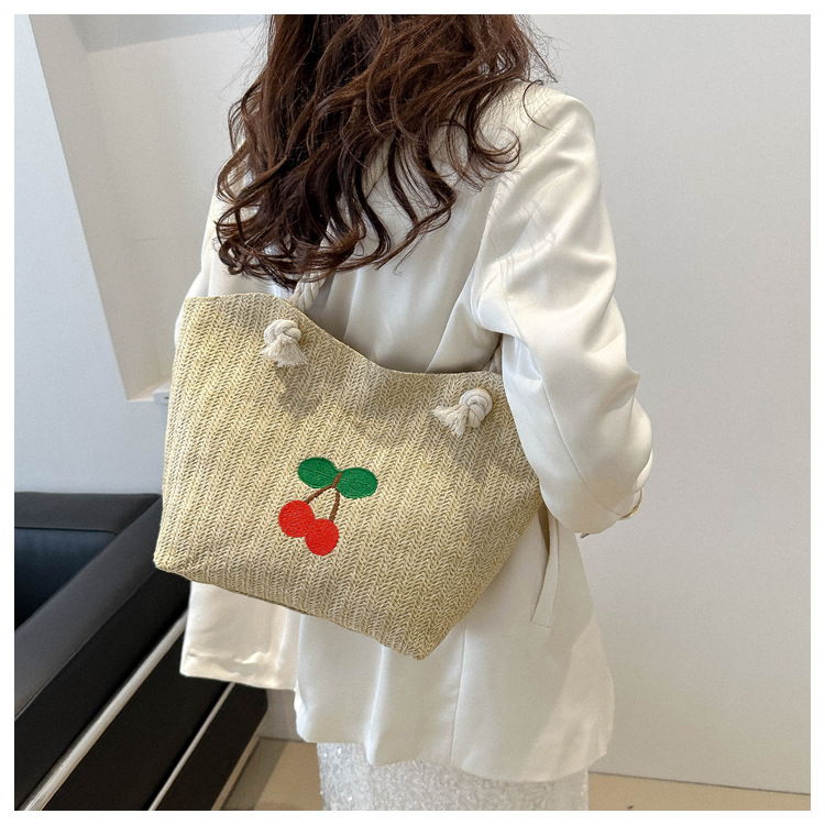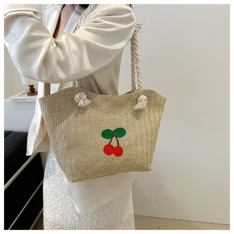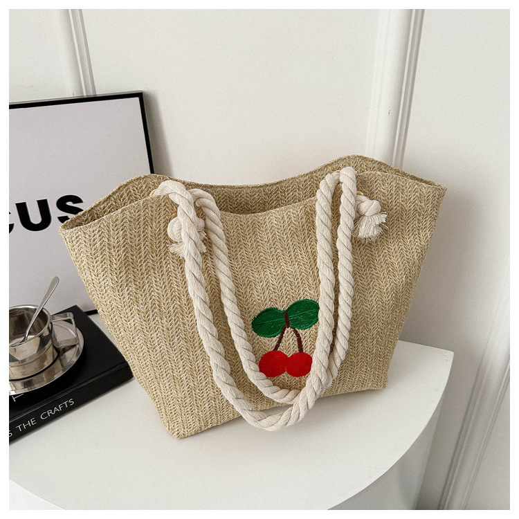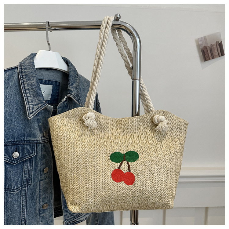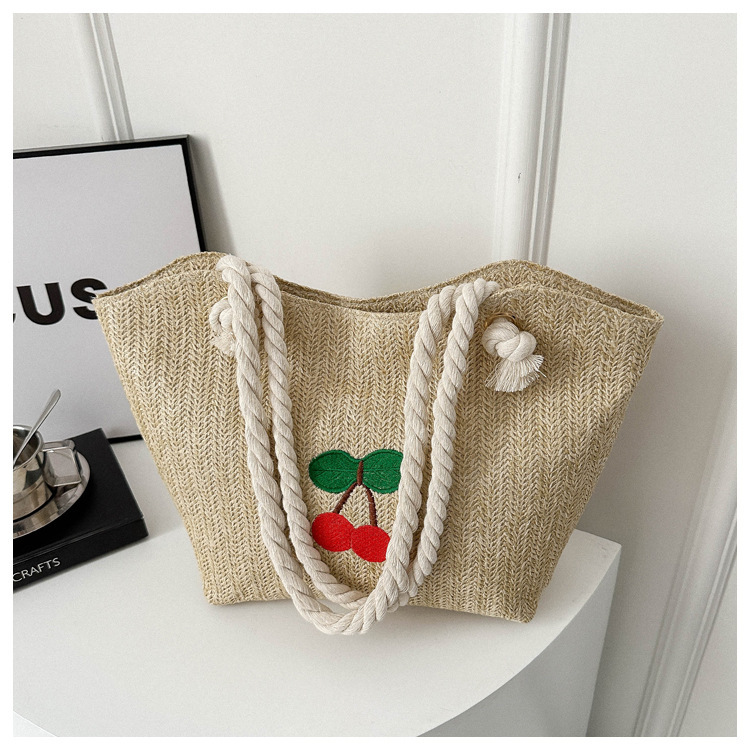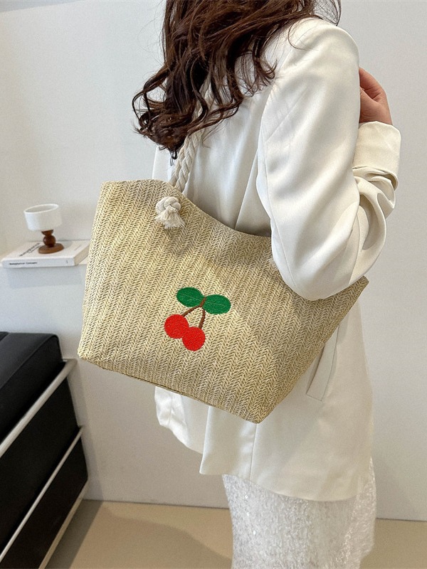编织草编包包女2024新款百搭单肩手提包时尚学生通勤大容量托特包