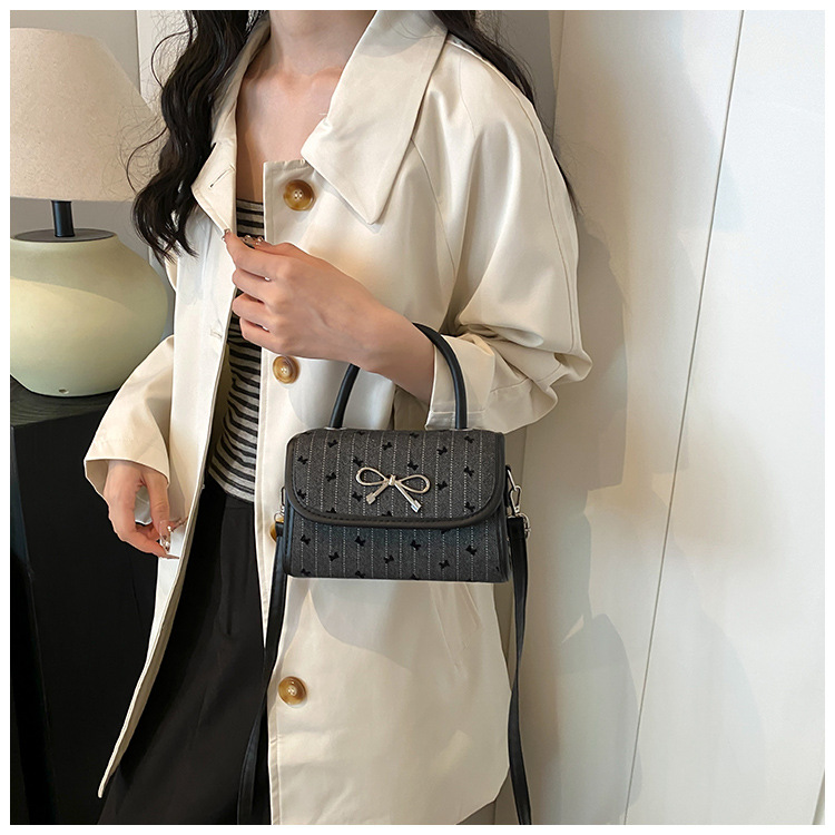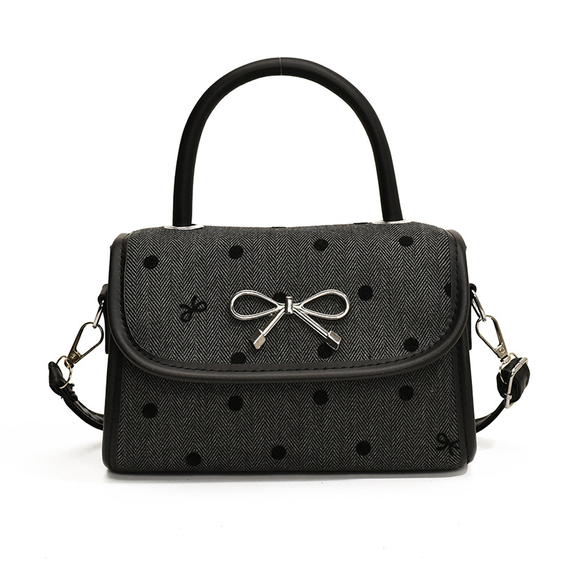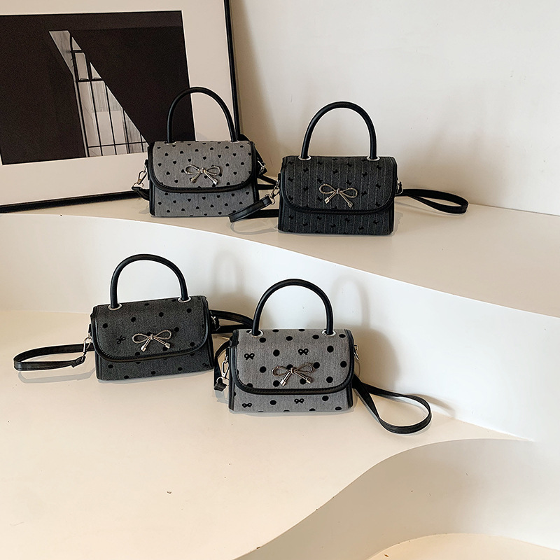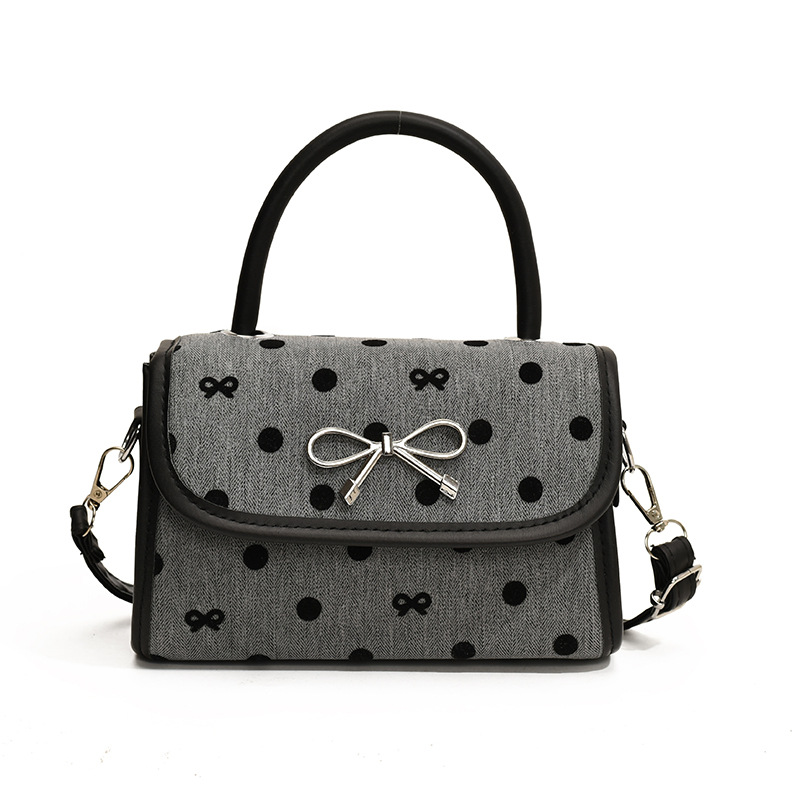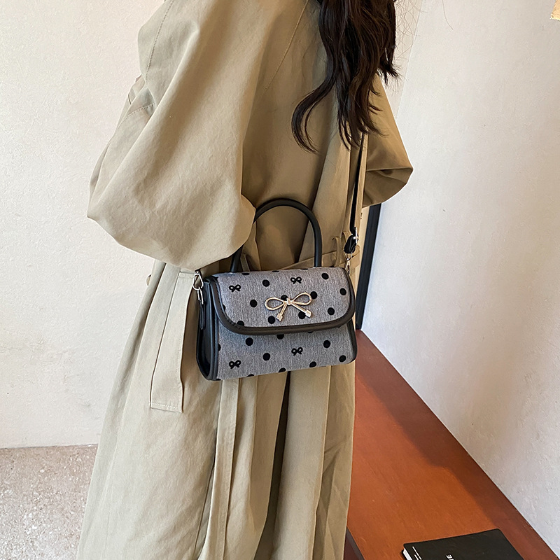 2024秋季新款简约时尚休闲通勤小方包质感蝴蝶结波点手提小包包