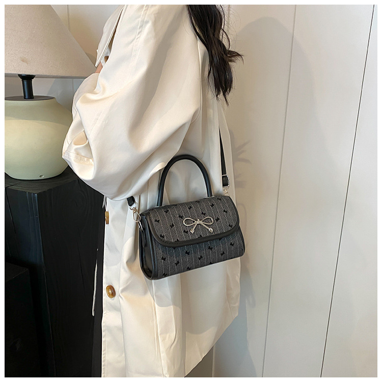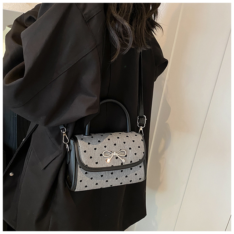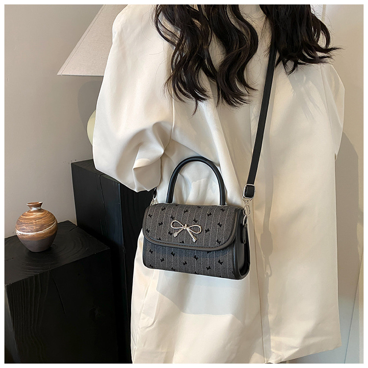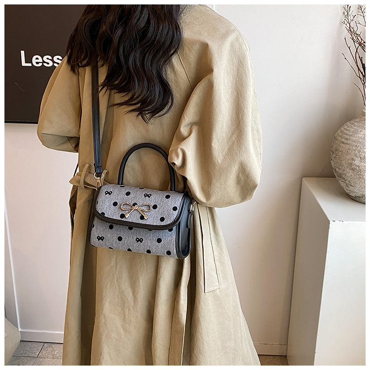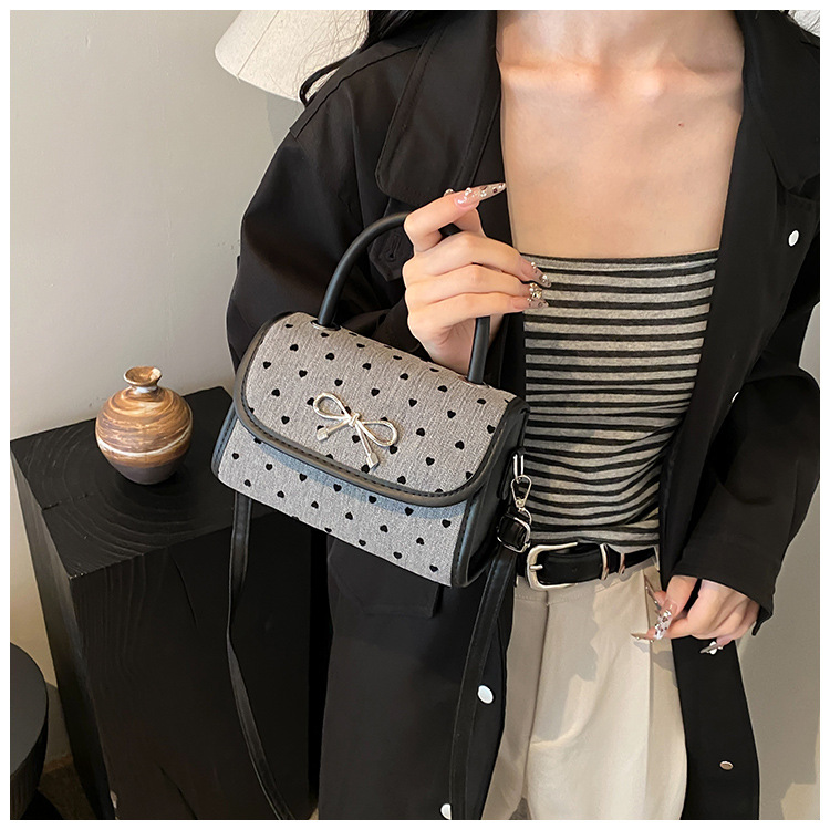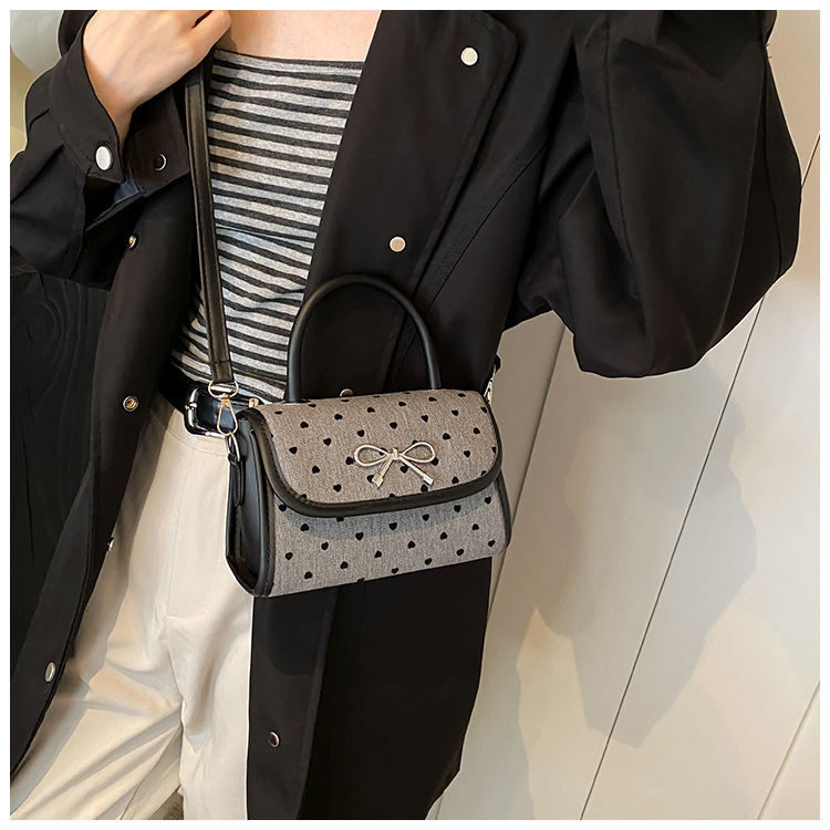 2024秋季新款简约时尚休闲通勤小方包质感蝴蝶结波点手提小包包