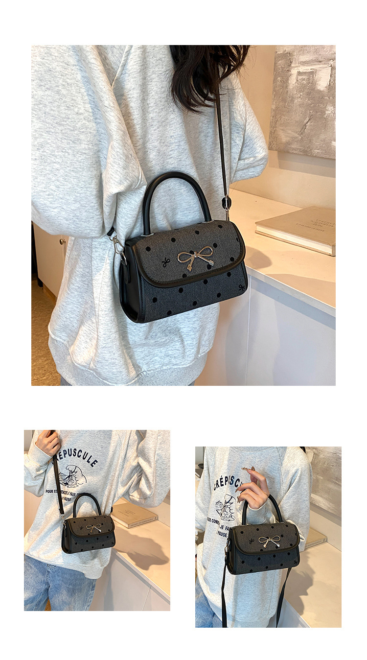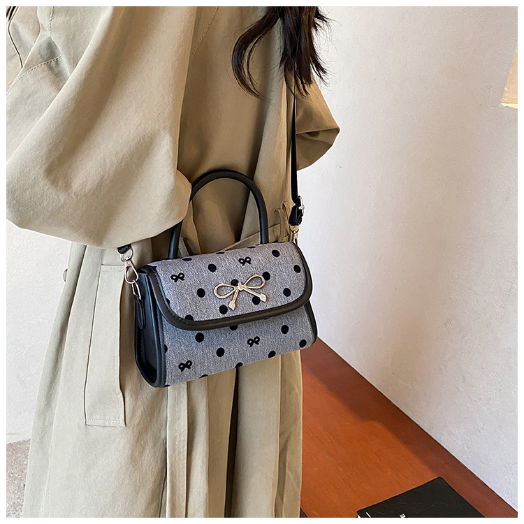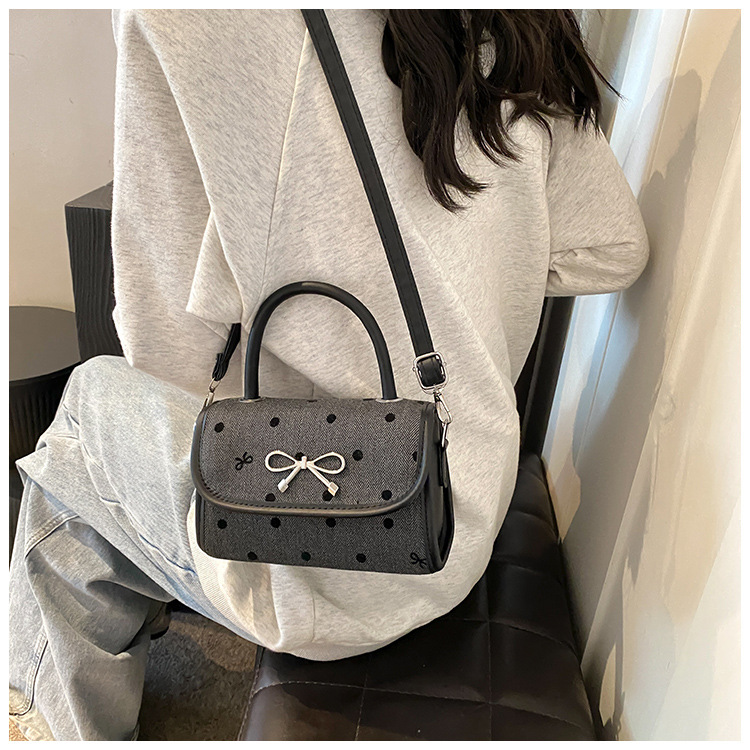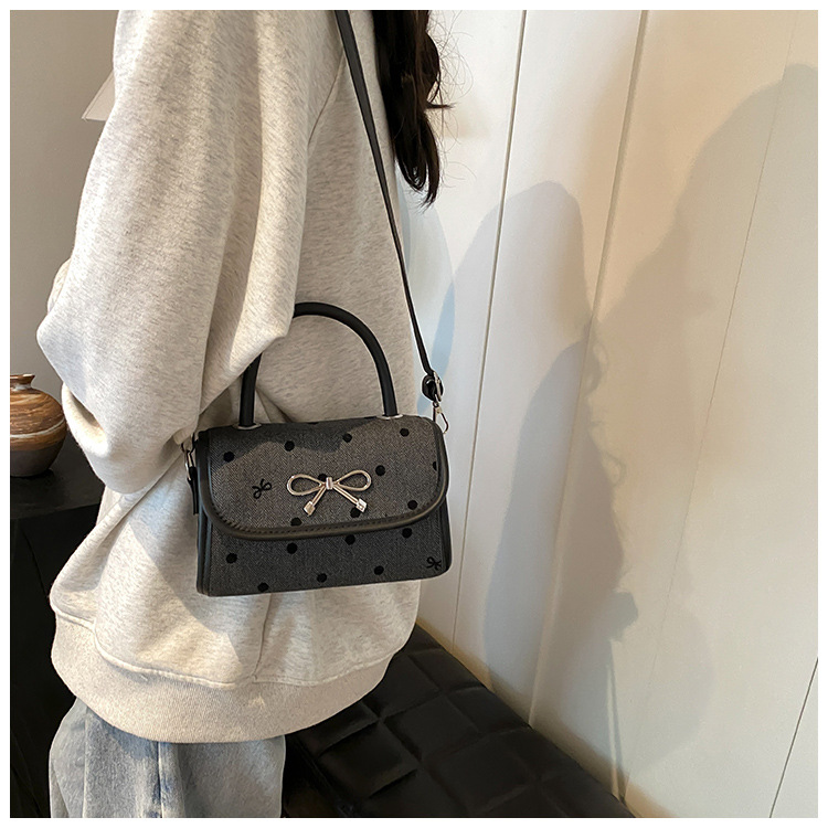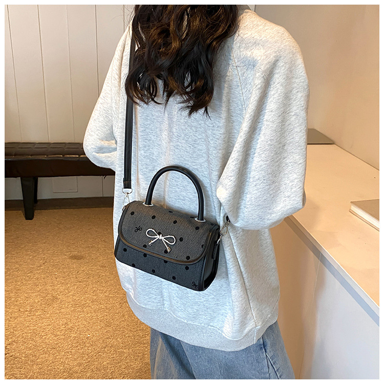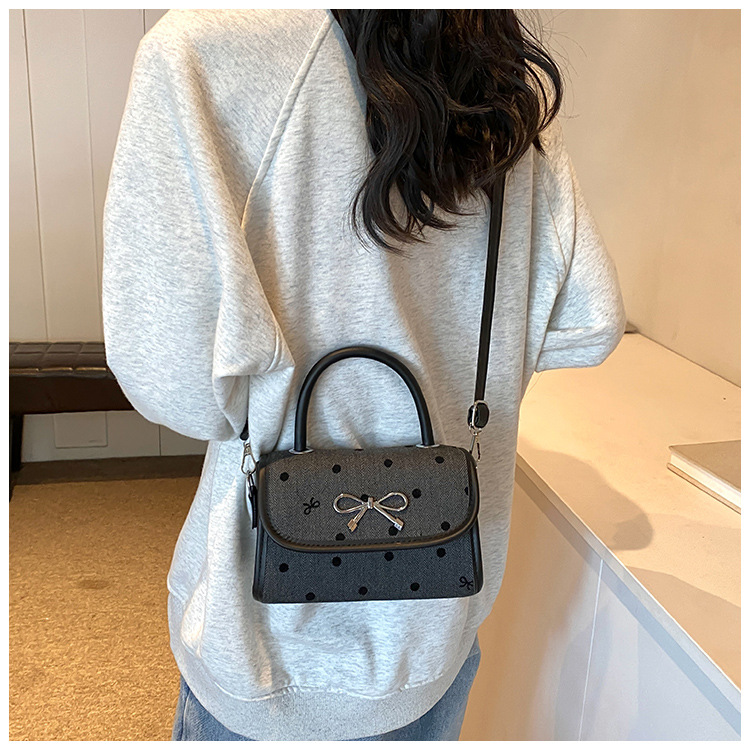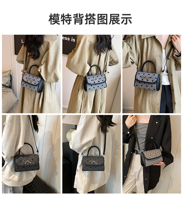 2024秋季新款简约时尚休闲通勤小方包质感蝴蝶结波点手提小包包 投诉