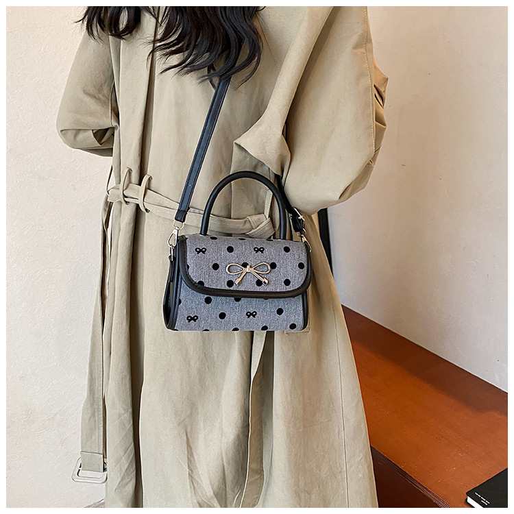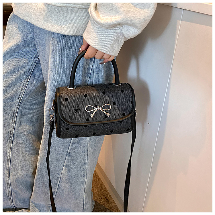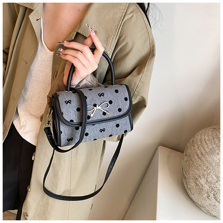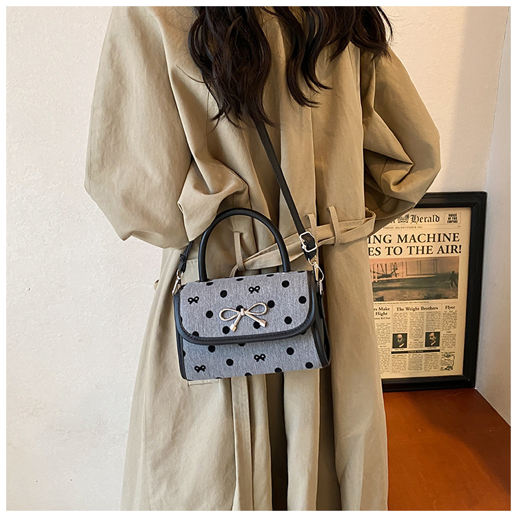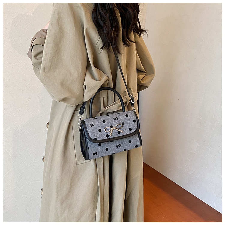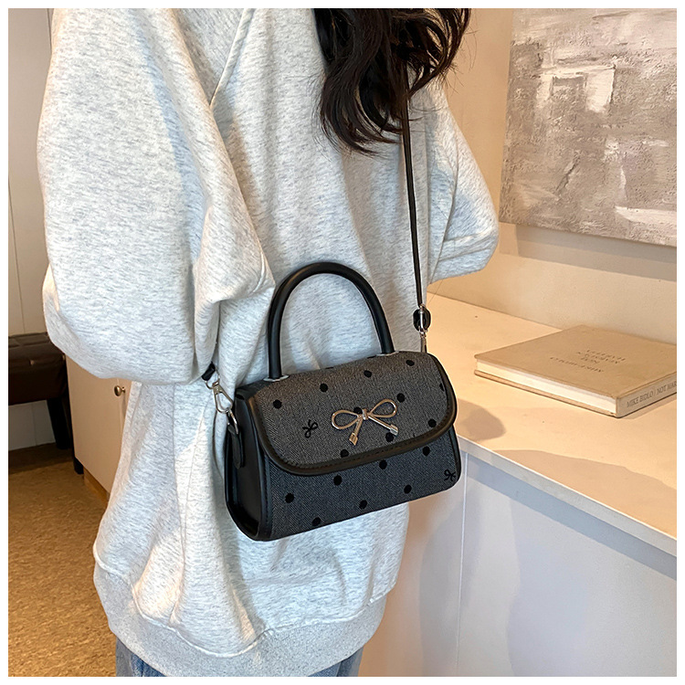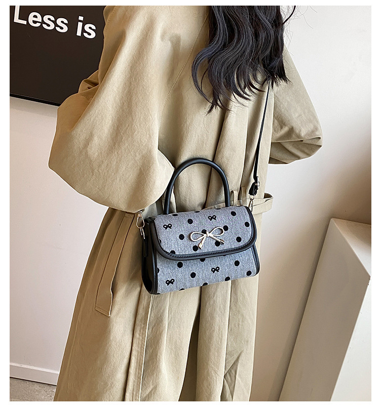 2024秋季新款简约时尚休闲通勤小方包质感蝴蝶结波点手提小包包 投诉