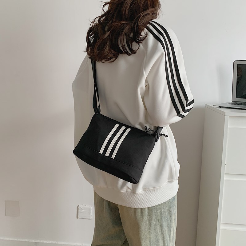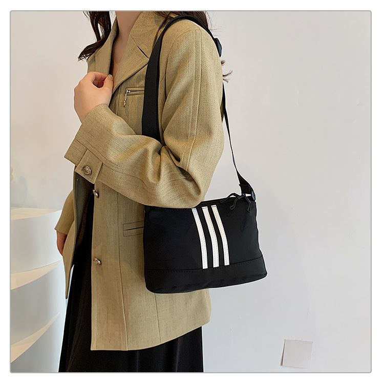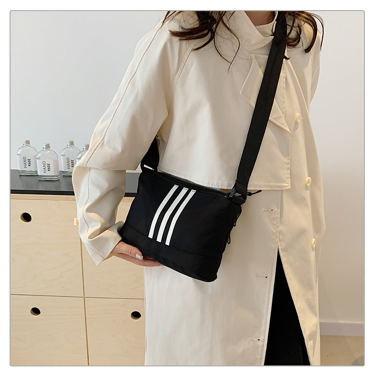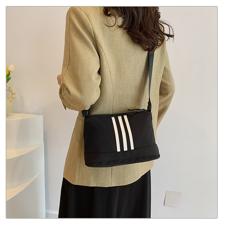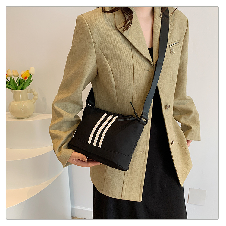 休闲运动风牛津布斜挎包包女2024新款韩版潮条纹小方包百搭单肩包