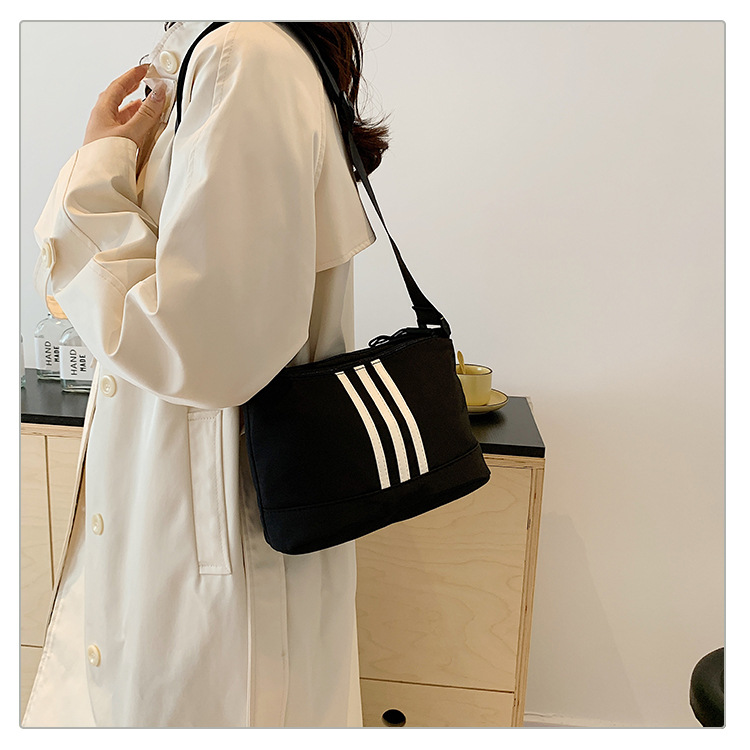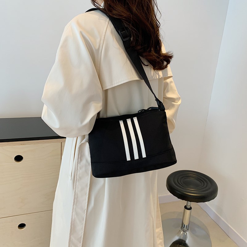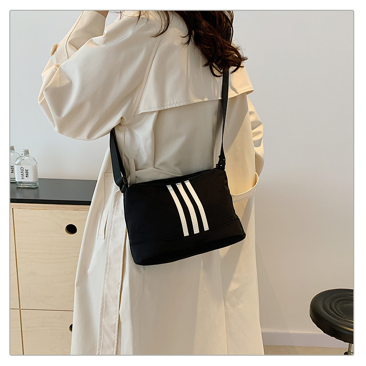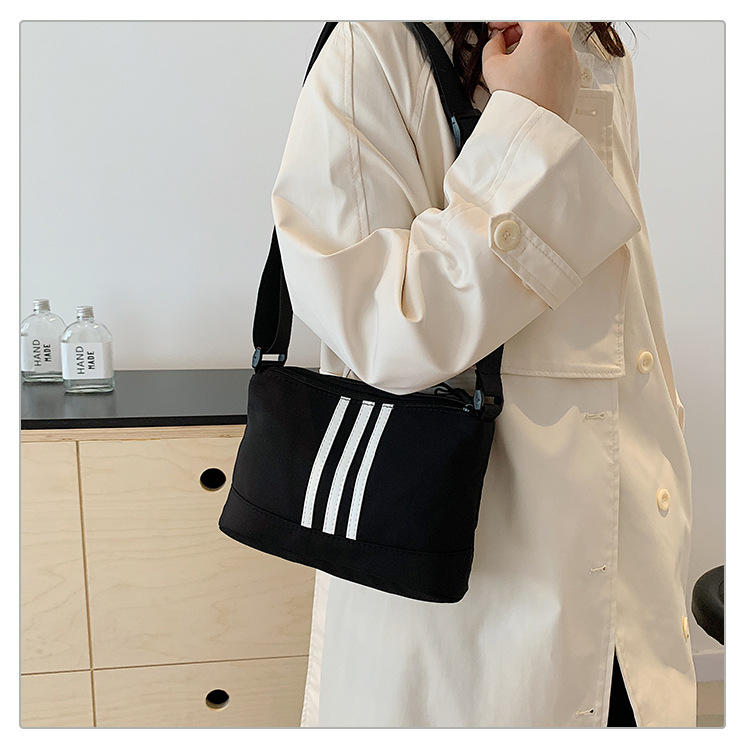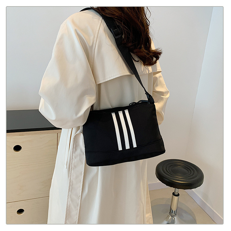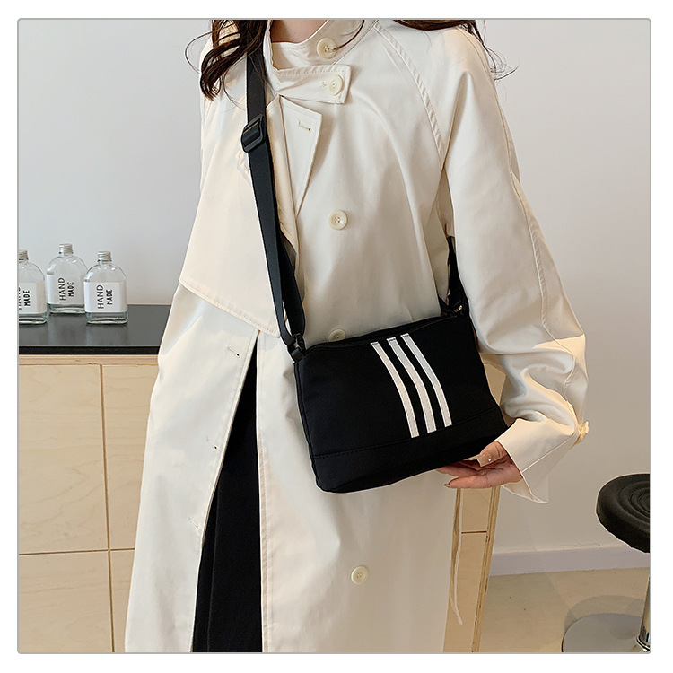 休闲运动风牛津布斜挎包包女2024新款韩版潮条纹小方包百搭单肩包