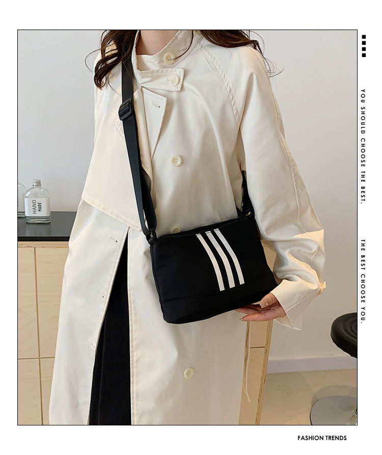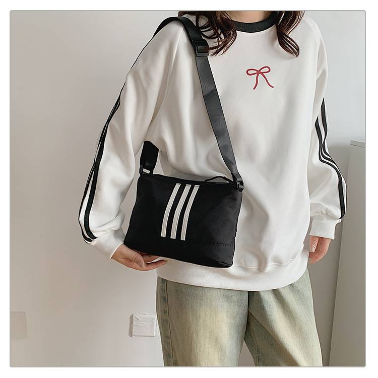 休闲运动风牛津布斜挎包包女2024新款韩版潮条纹小方包百搭单肩包 投诉