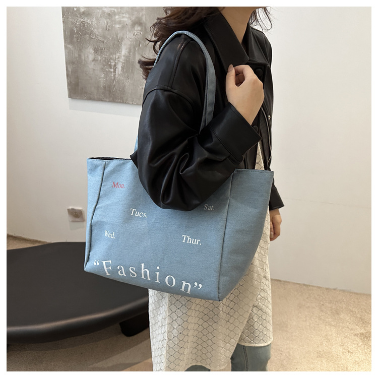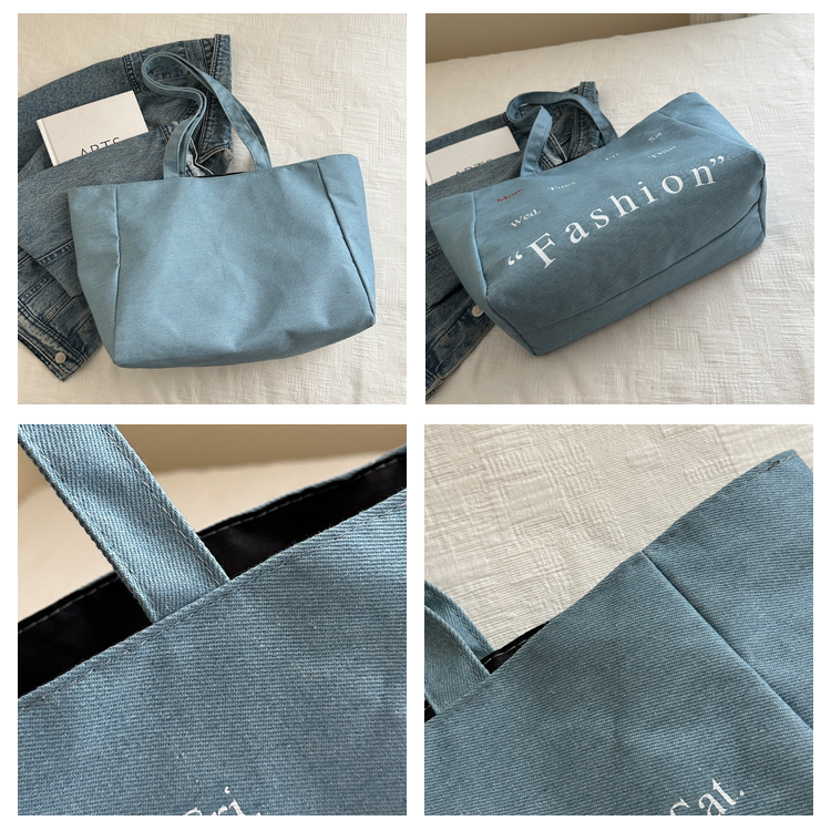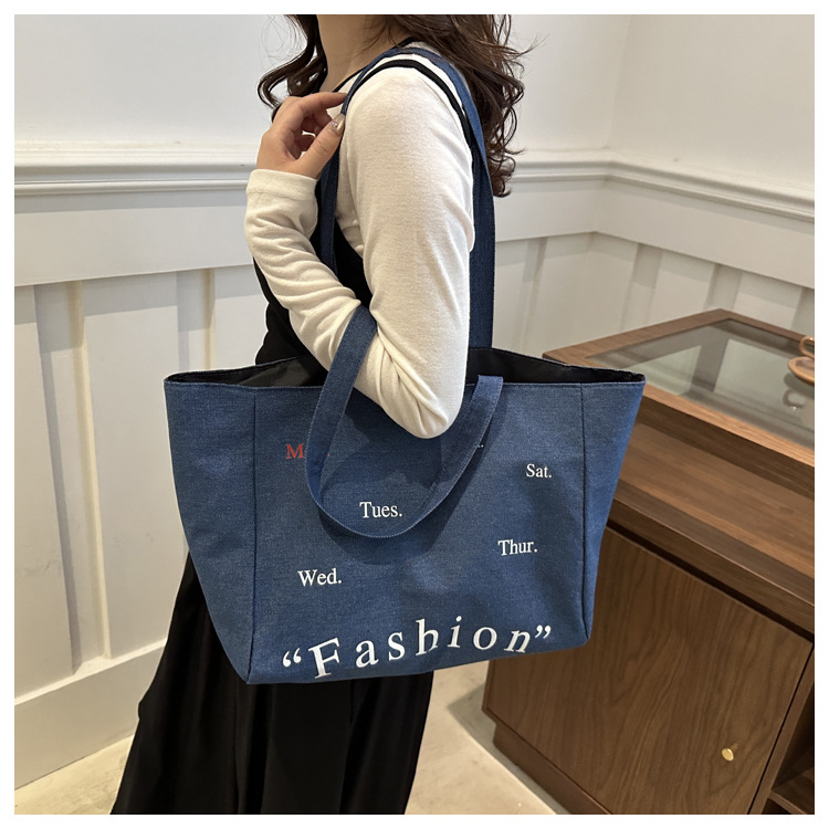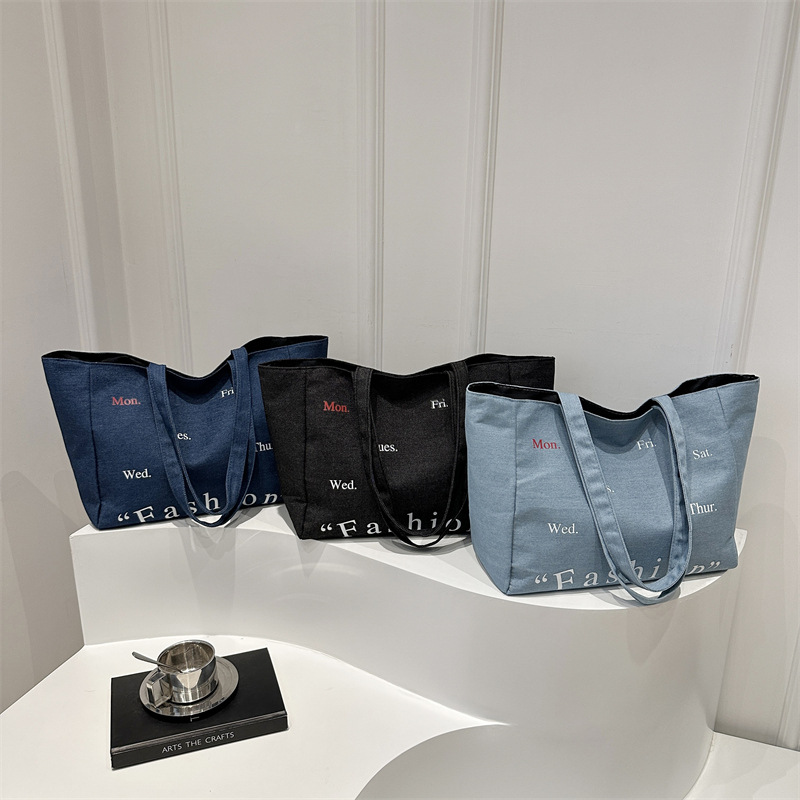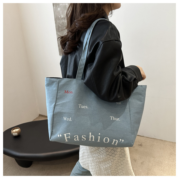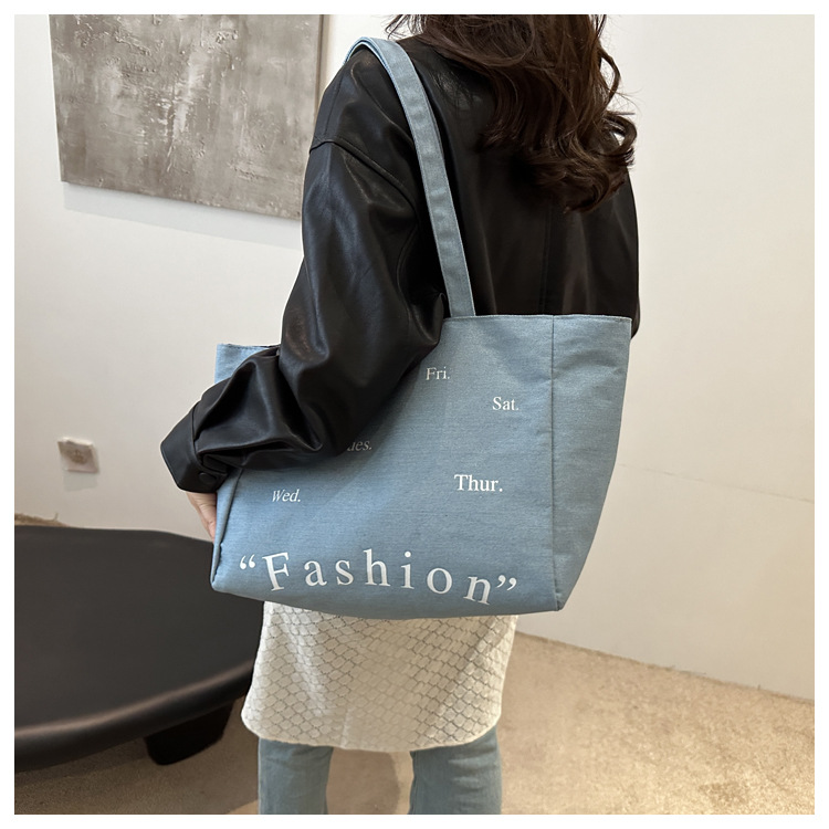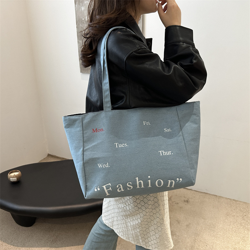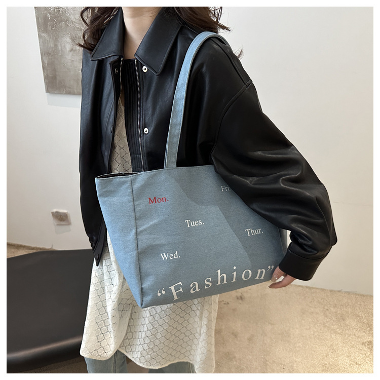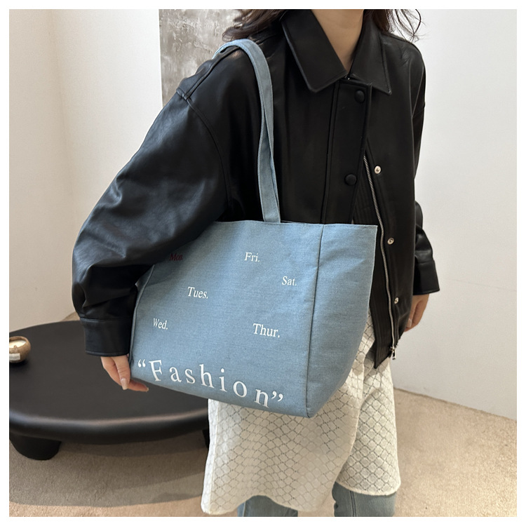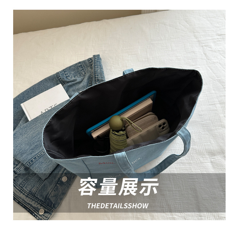 休闲通勤大容量包包女式2024新款牛仔布单肩包轻便百搭手提托特包