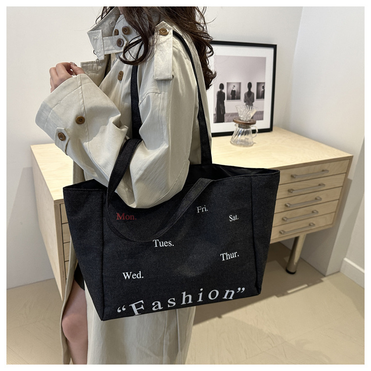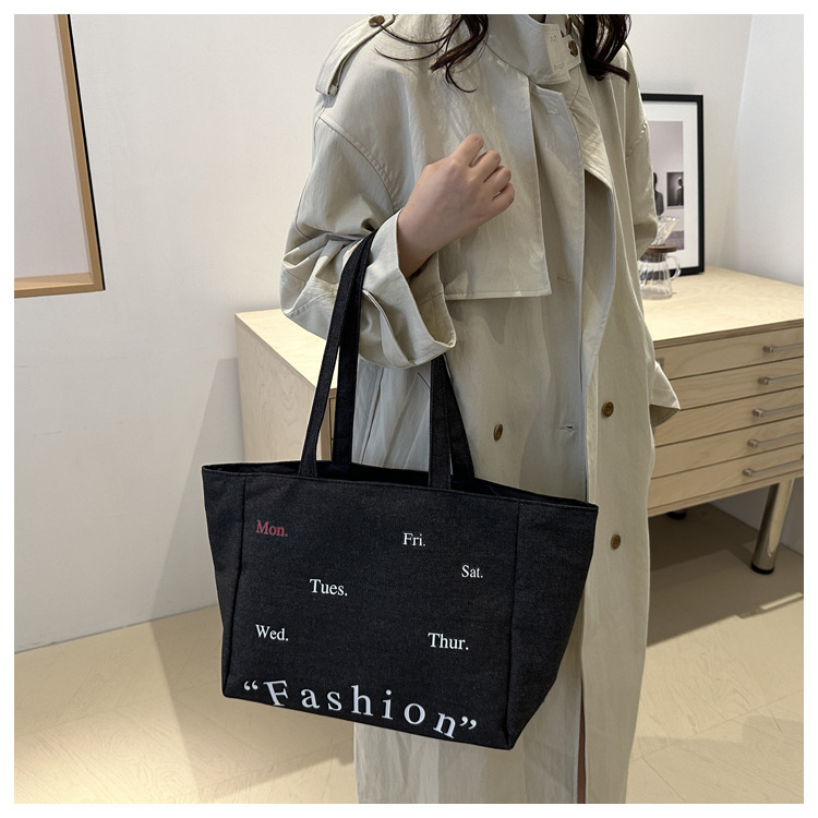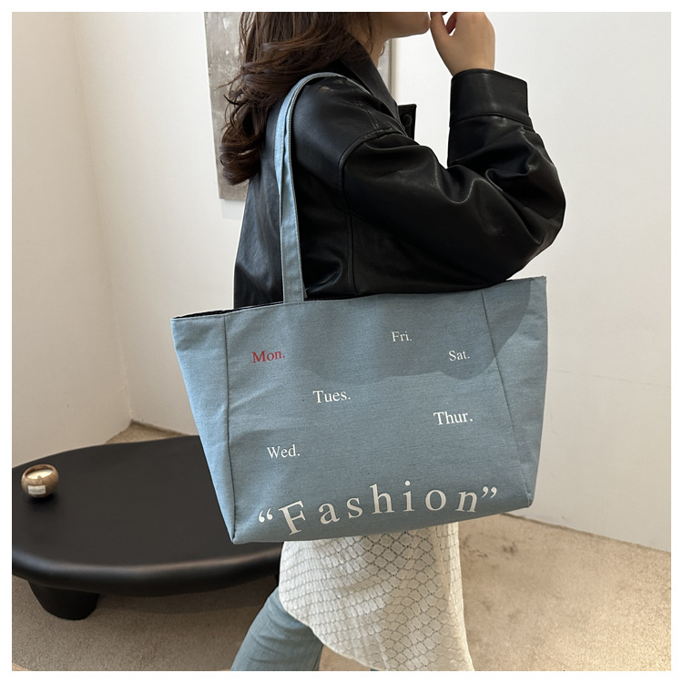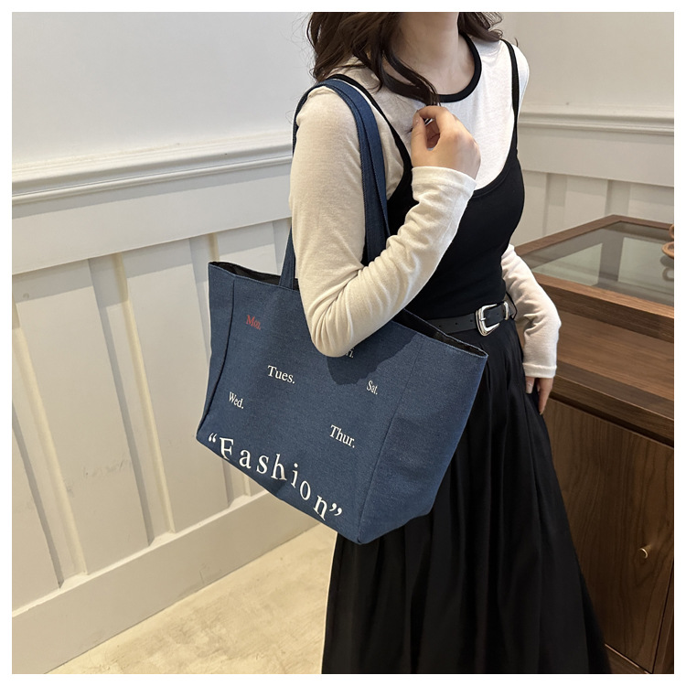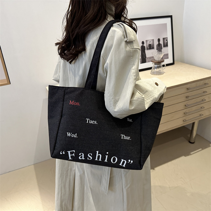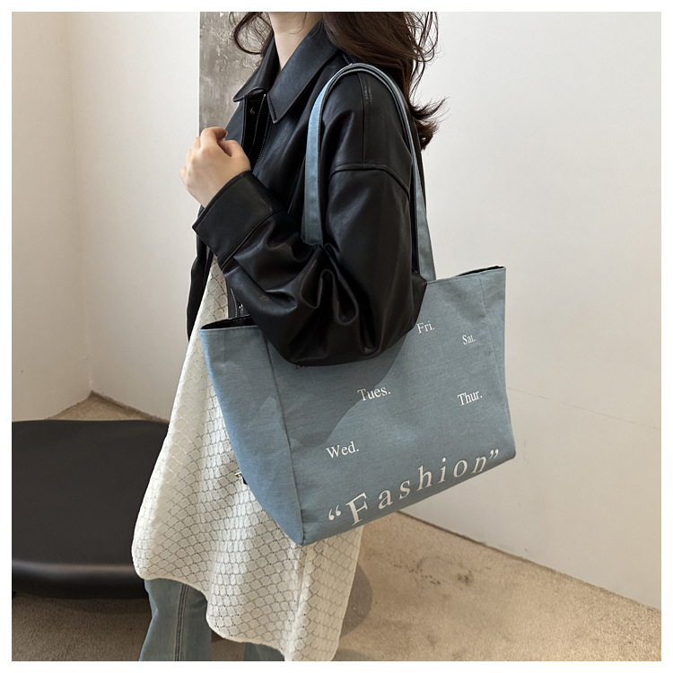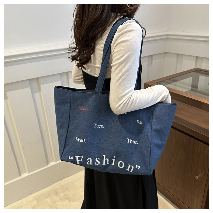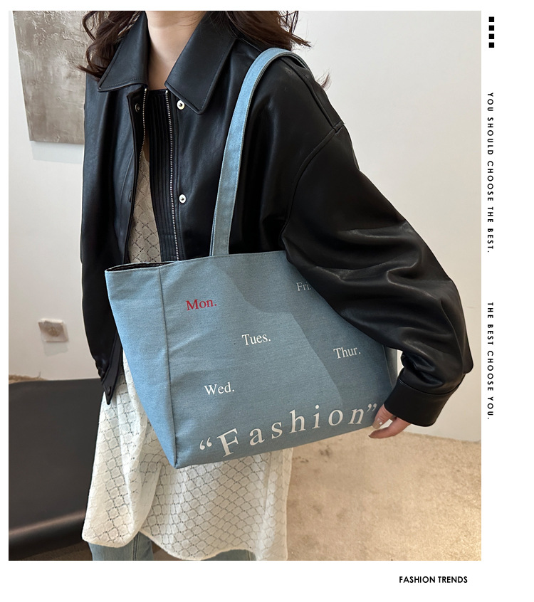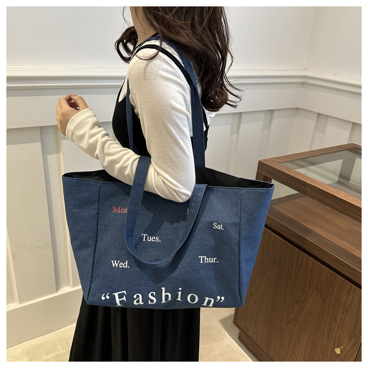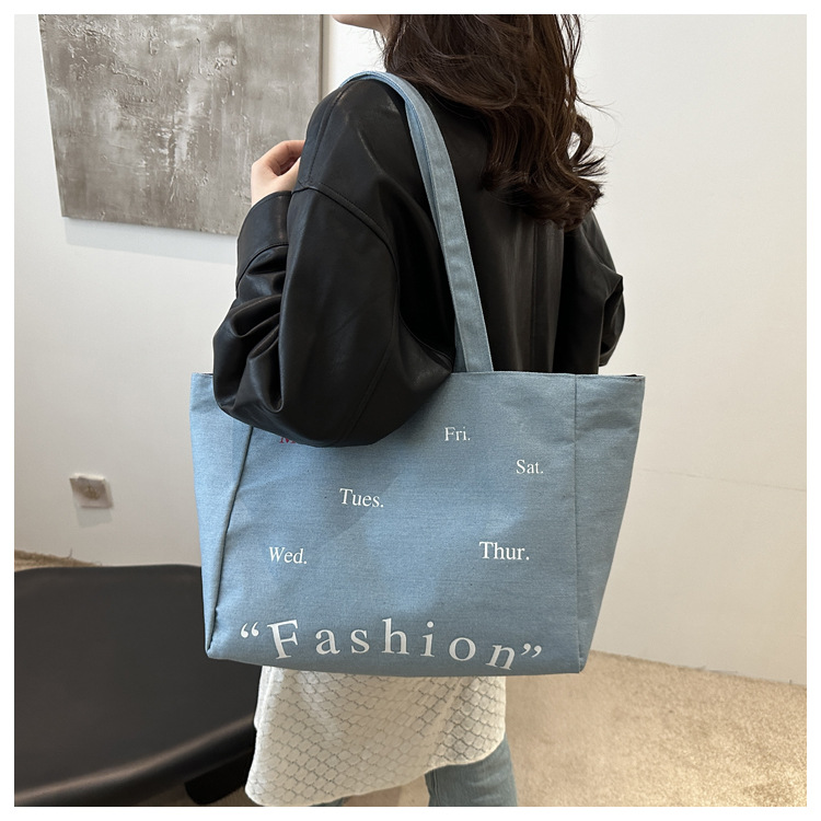 休闲通勤大容量包包女式2024新款牛仔布单肩包轻便百搭手提托特包