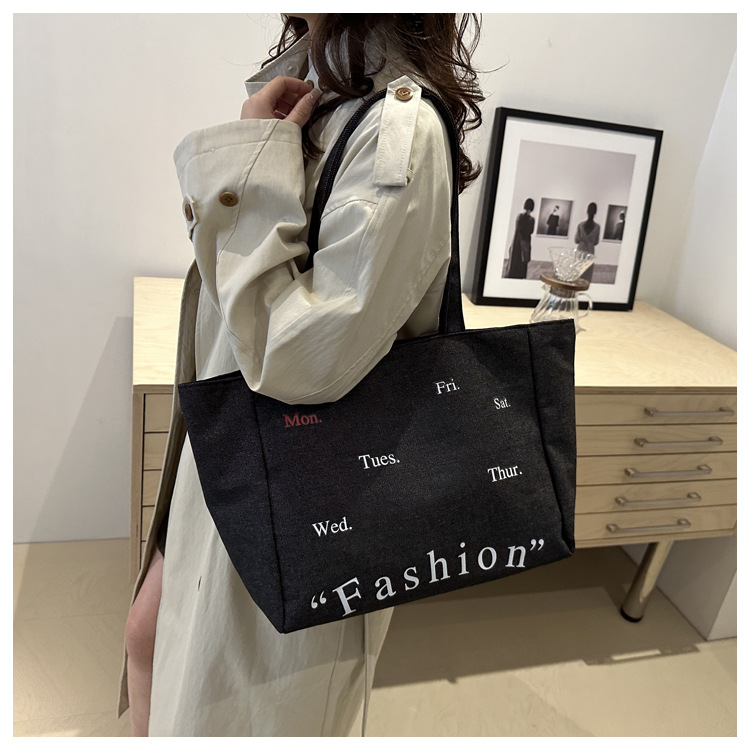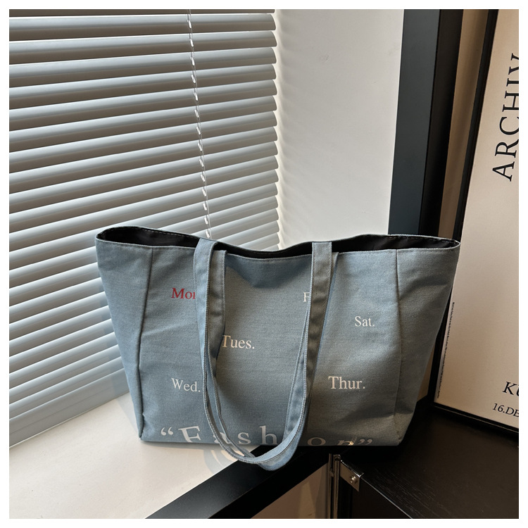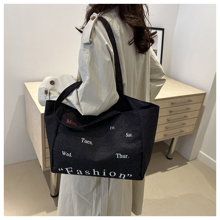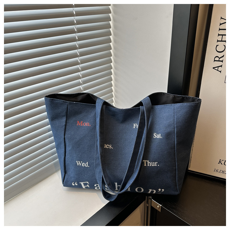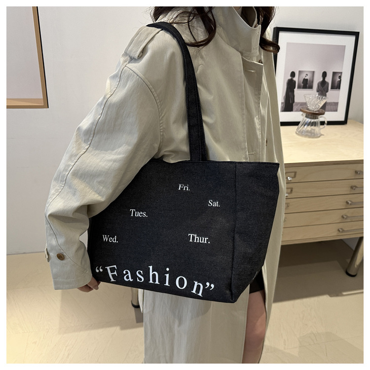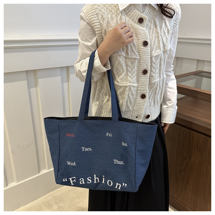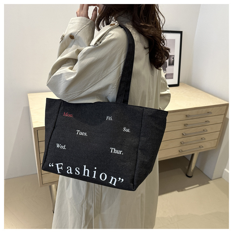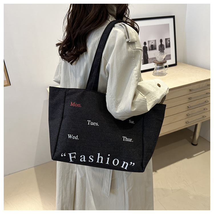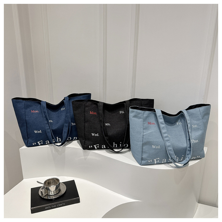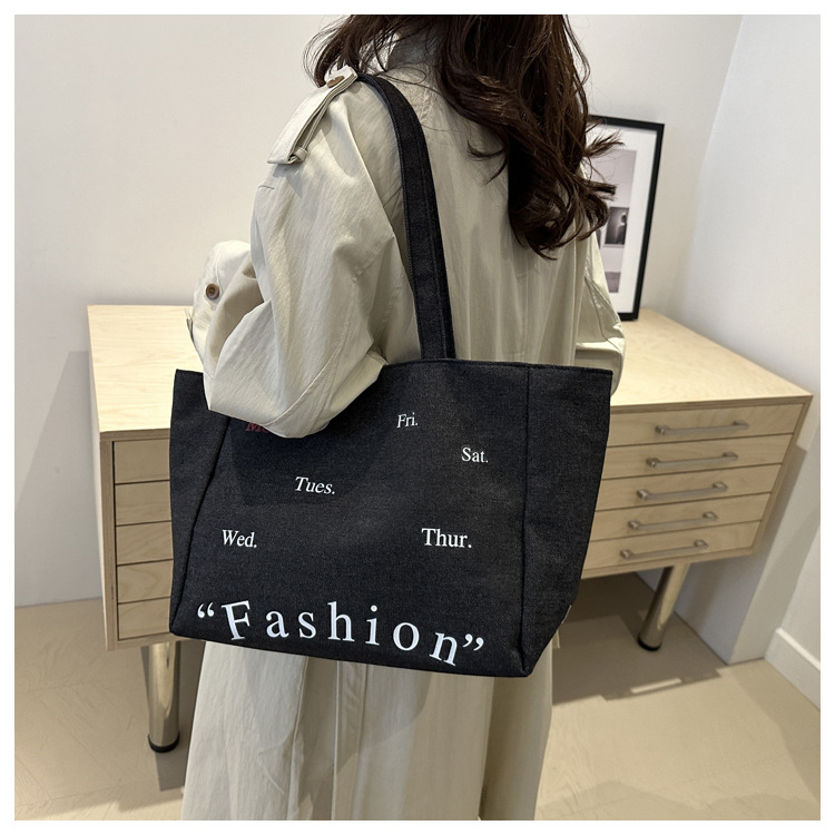 休闲通勤大容量包包女式2024新款牛仔布单肩包轻便百搭手提托特包