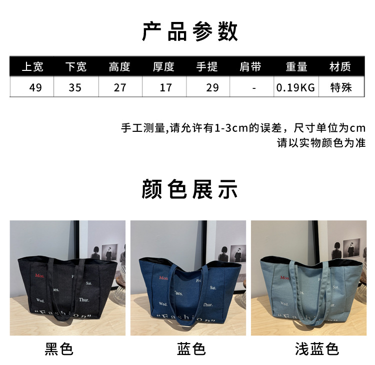 休闲通勤大容量包包女式2024新款牛仔布单肩包轻便百搭手提托特包 投诉