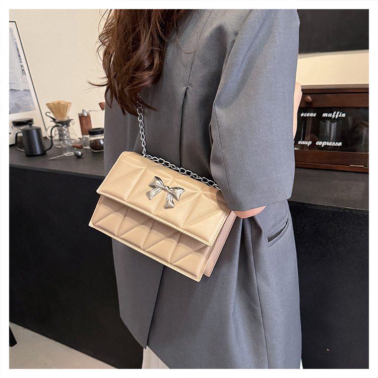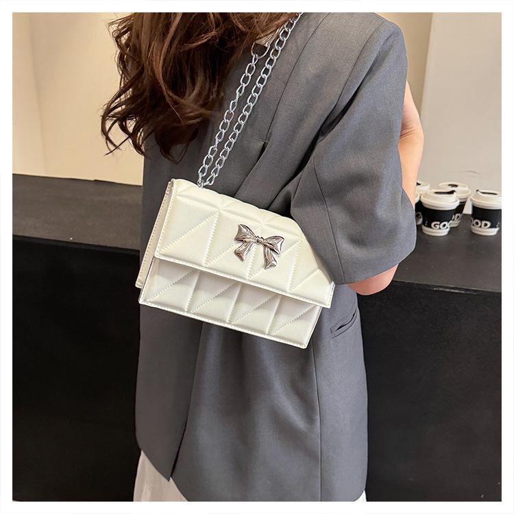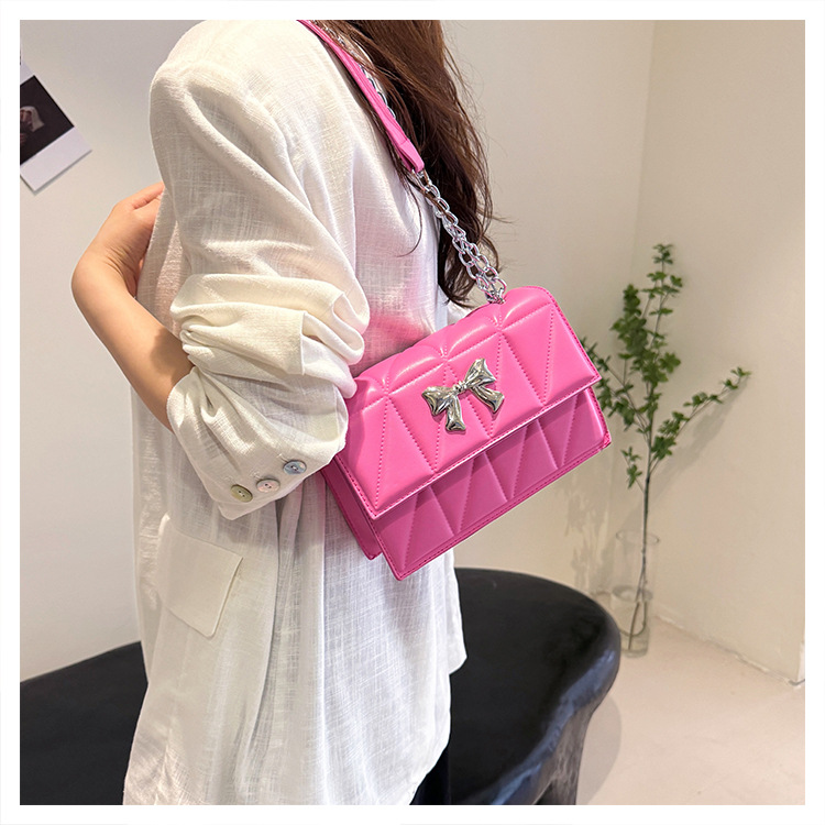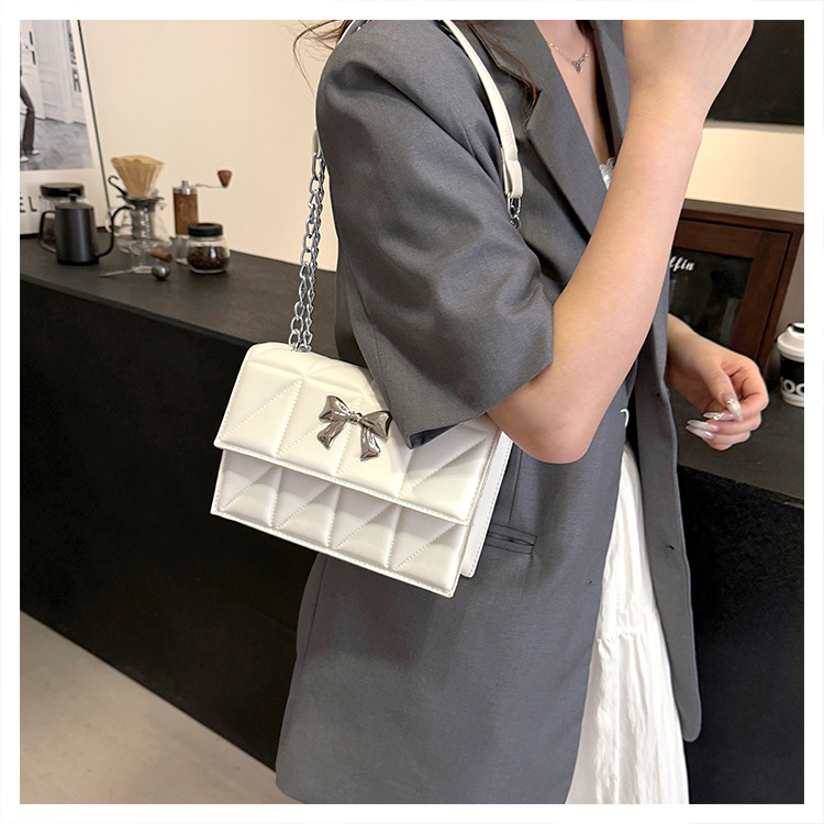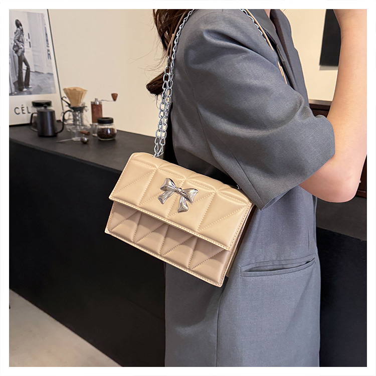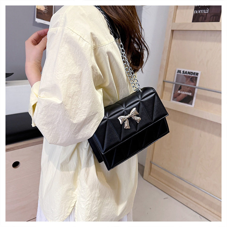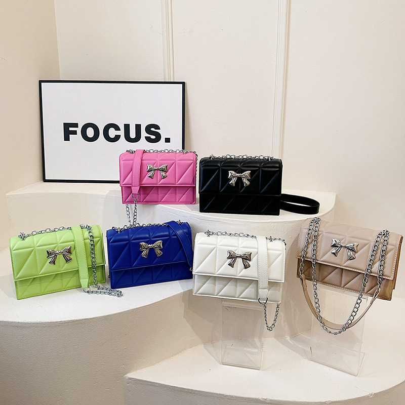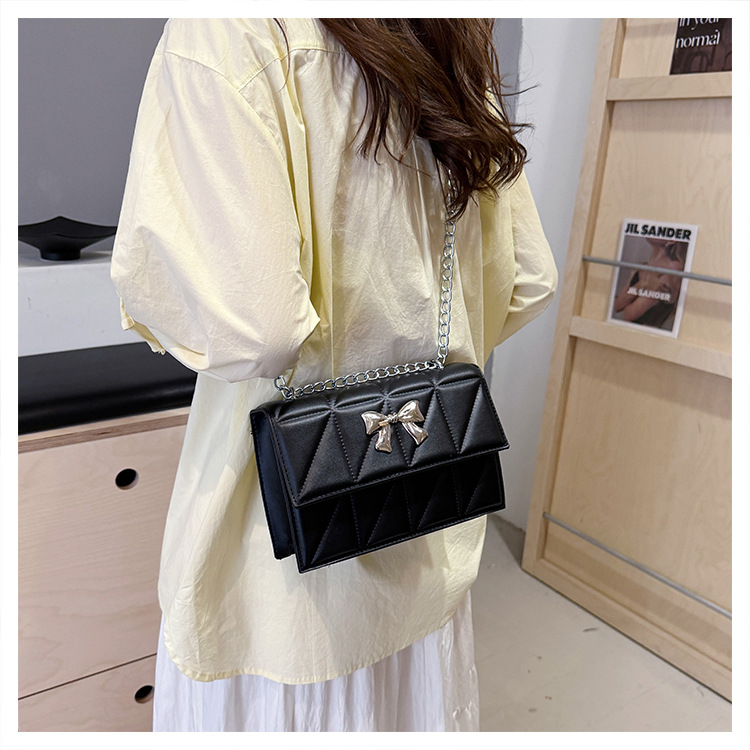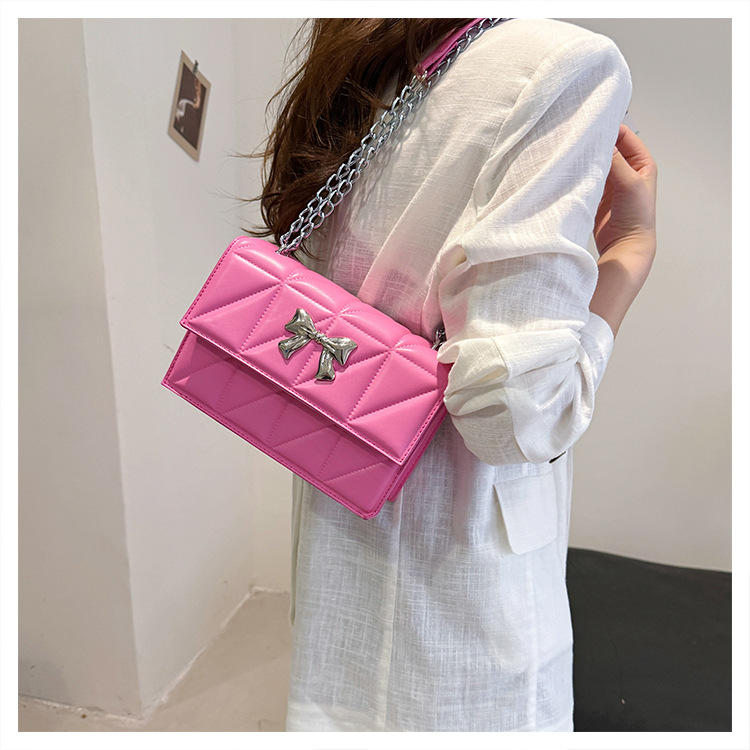 跨境蝴蝶结韩版菱格链条小方包包2024新款时尚个性ins洋气斜挎包