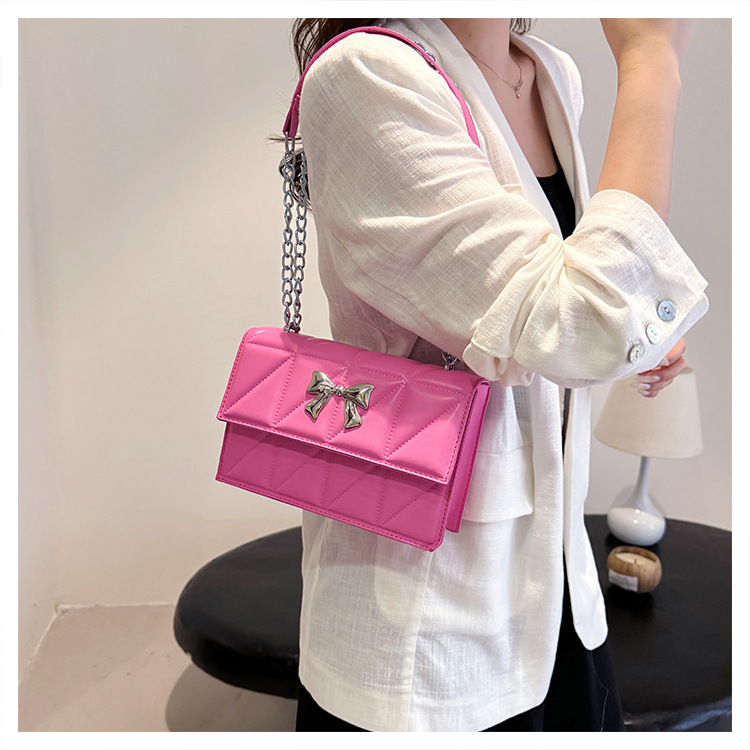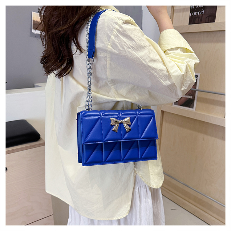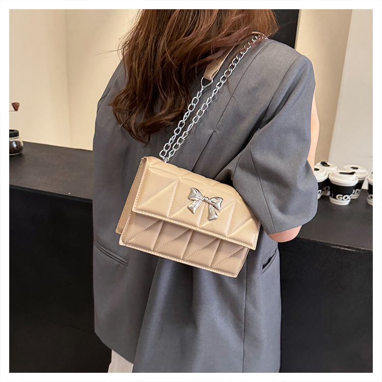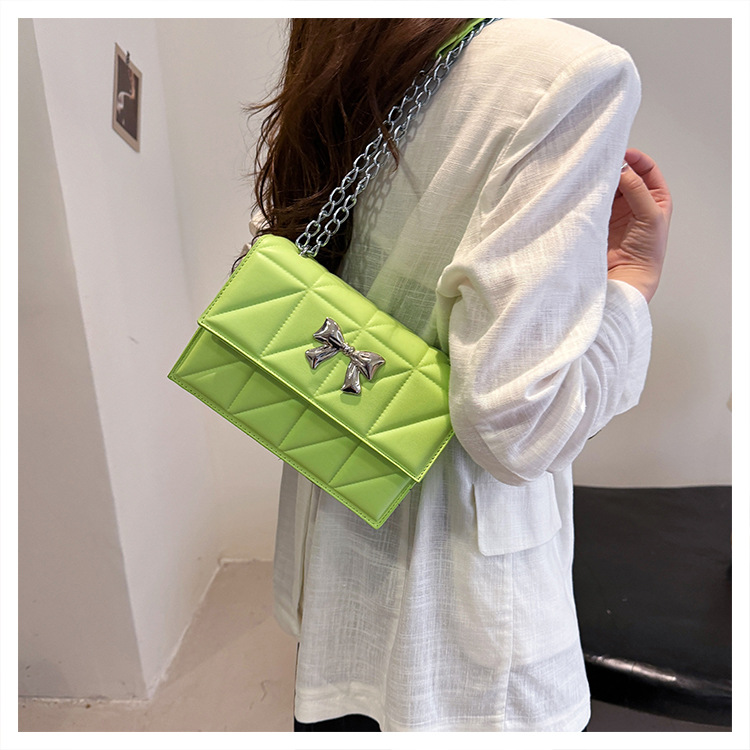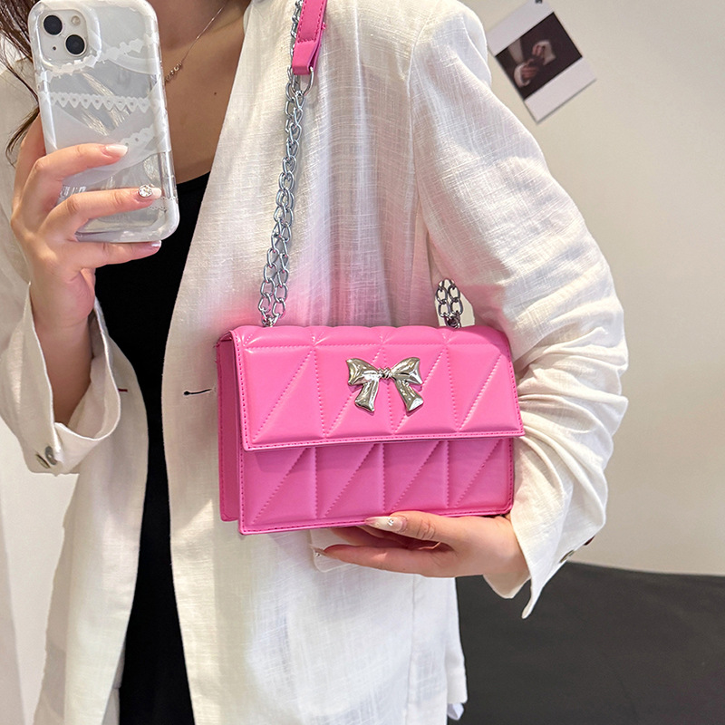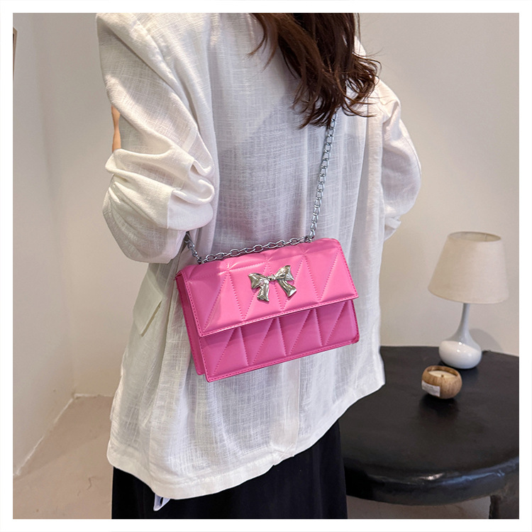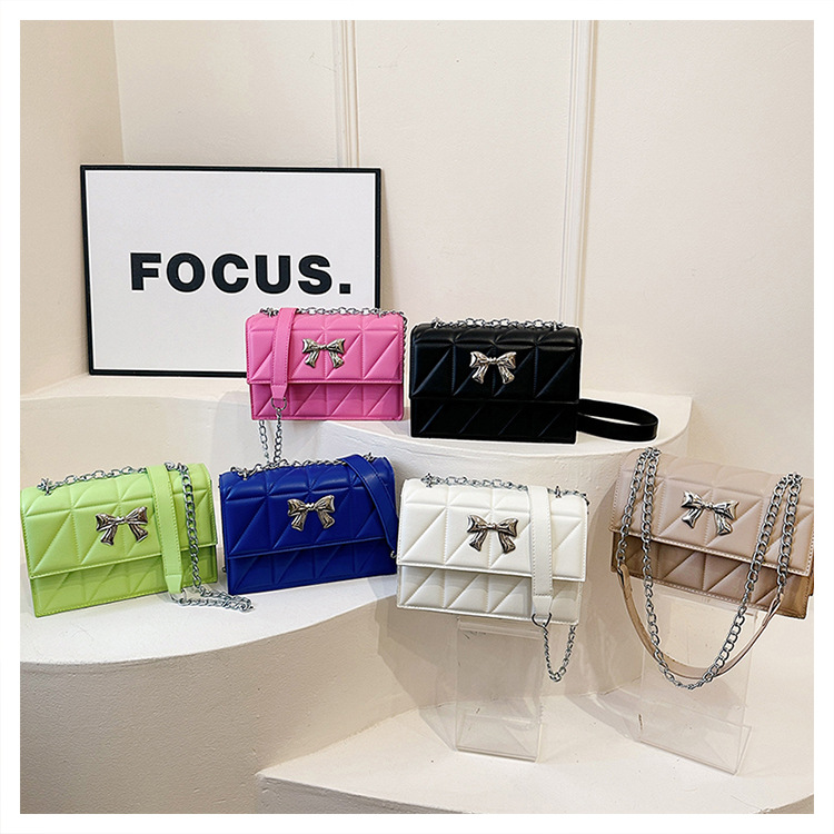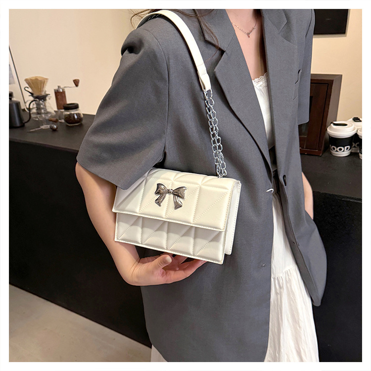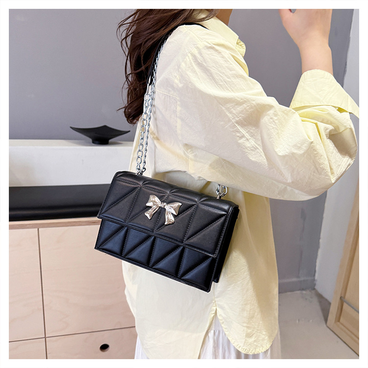 跨境蝴蝶结韩版菱格链条小方包包2024新款时尚个性ins洋气斜挎包