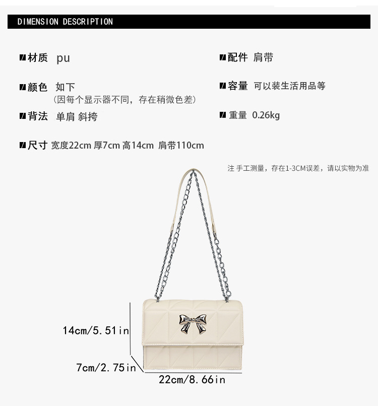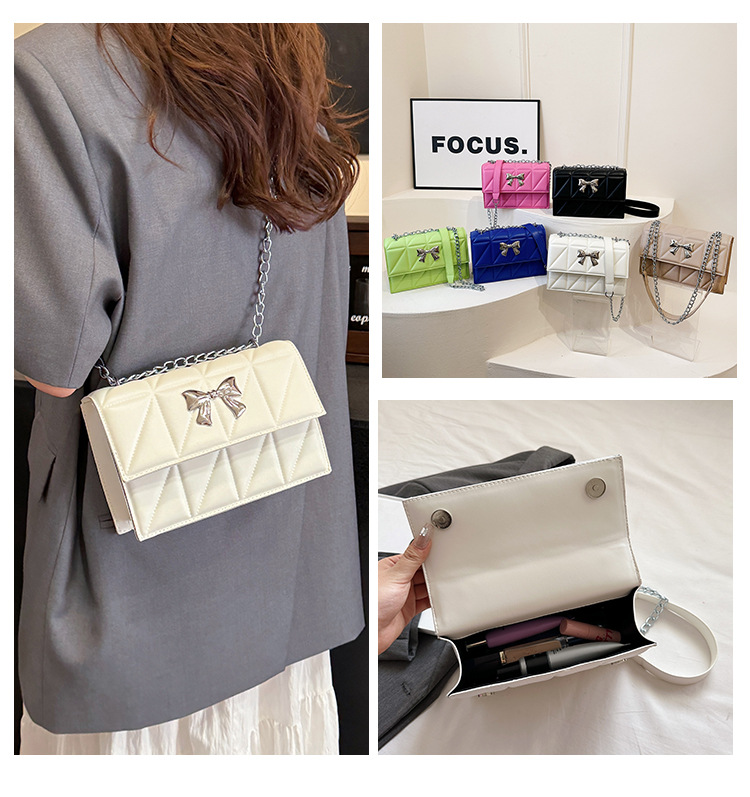 跨境蝴蝶结韩版菱格链条小方包包2024新款时尚个性ins洋气斜挎包 投诉
