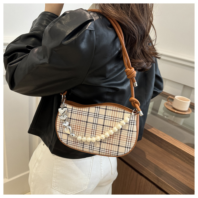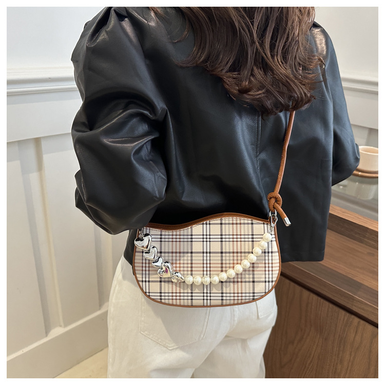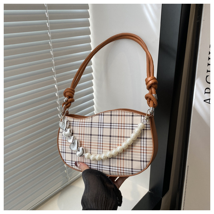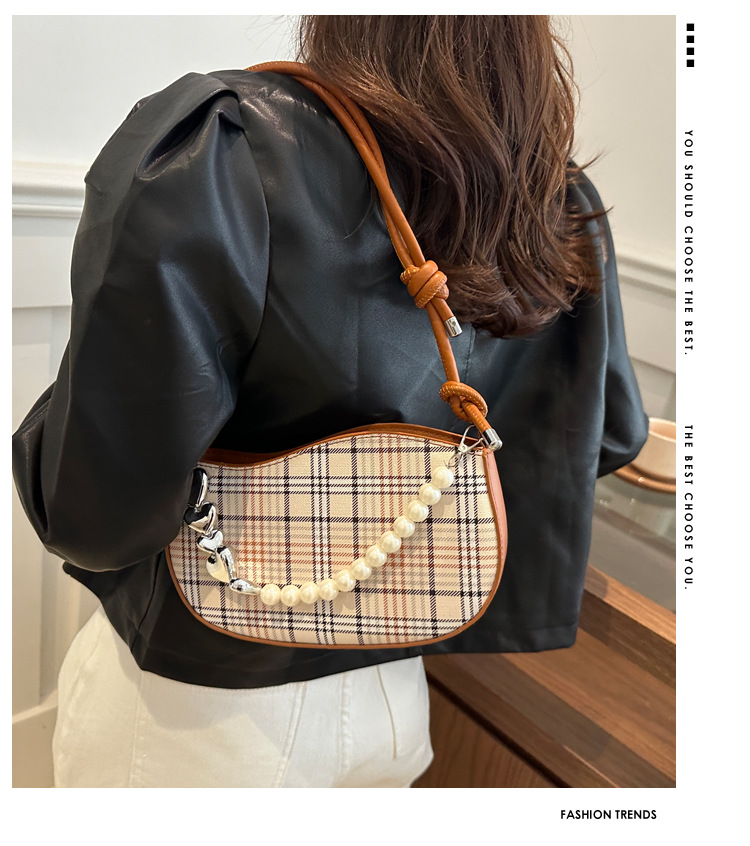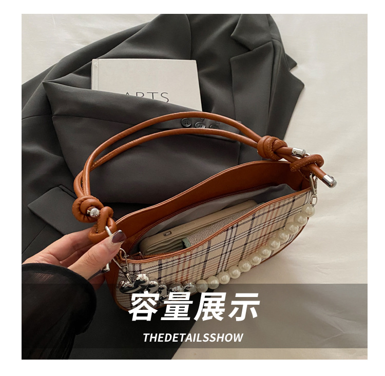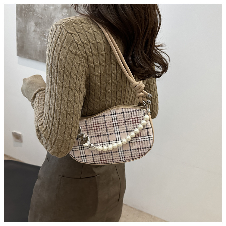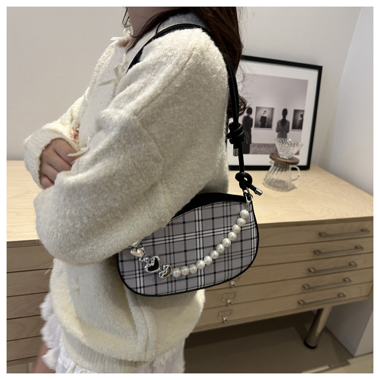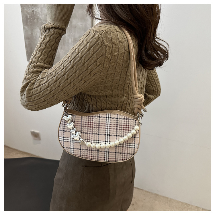 2024新款格子复古唯美通勤包个性潮流时尚小众设计简约单肩腋下包