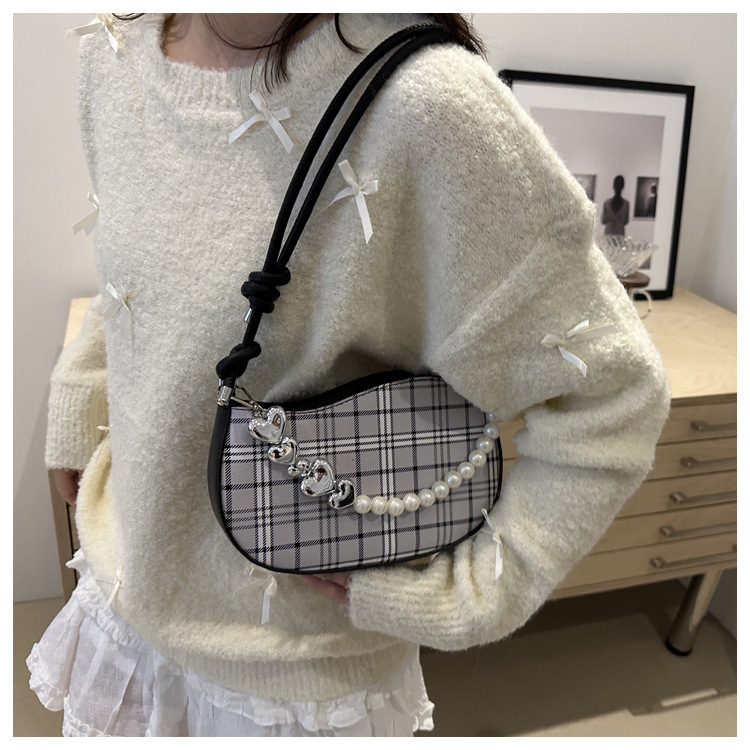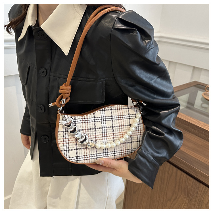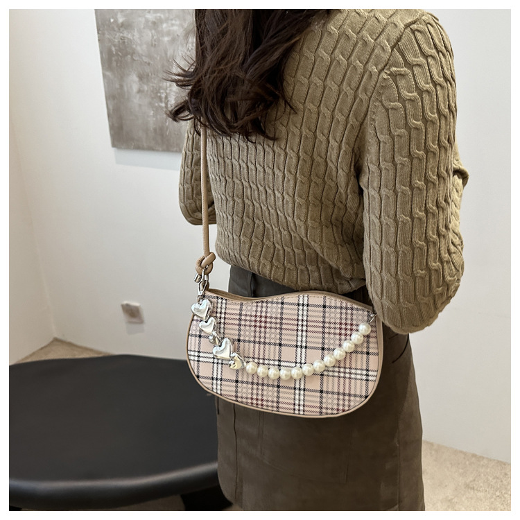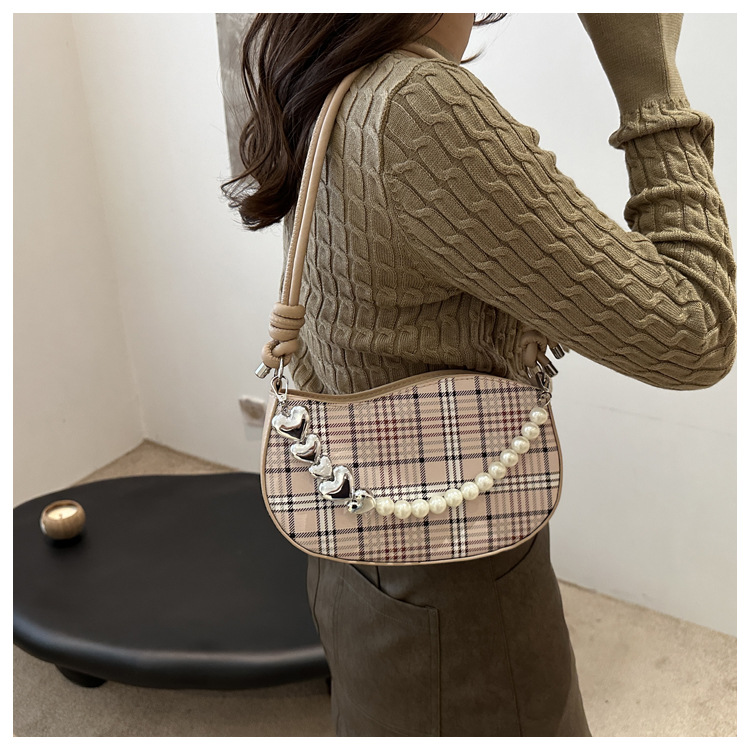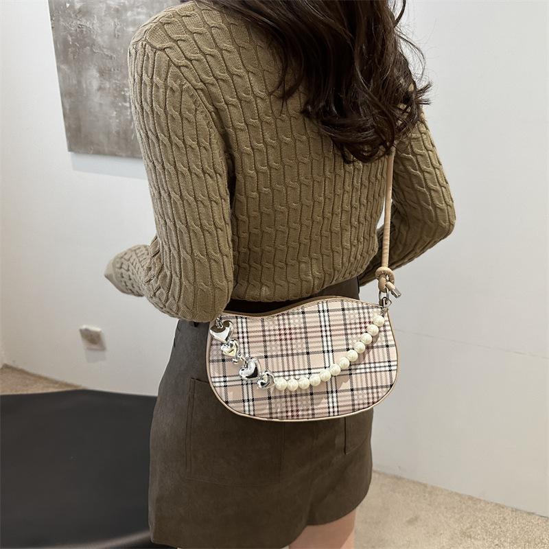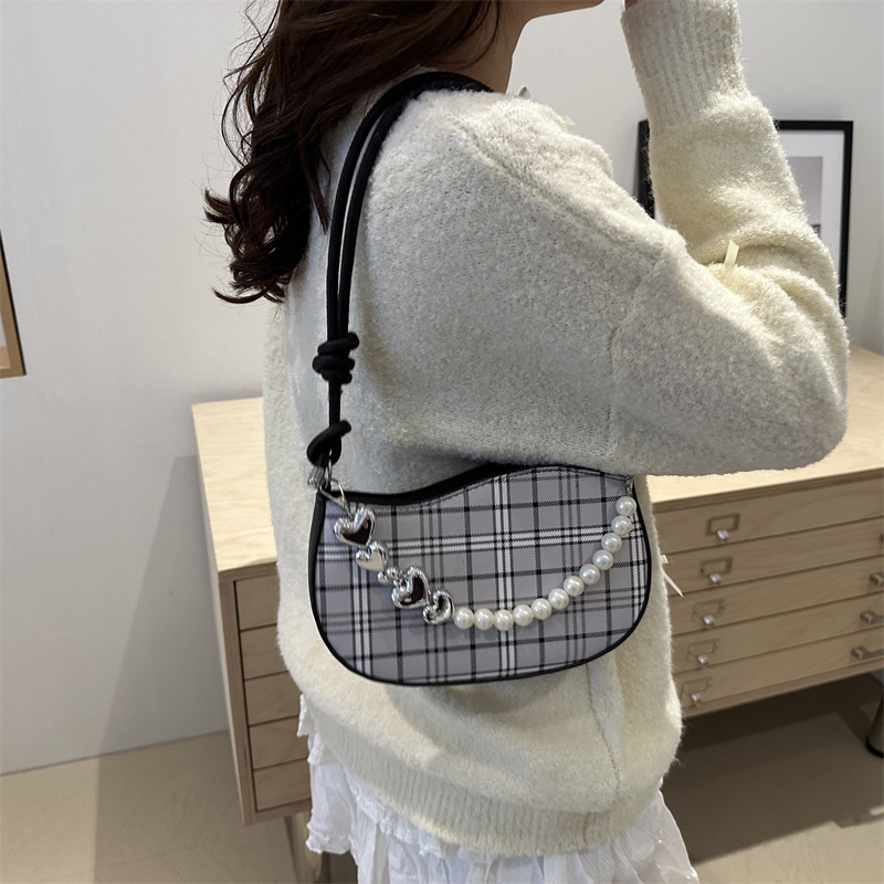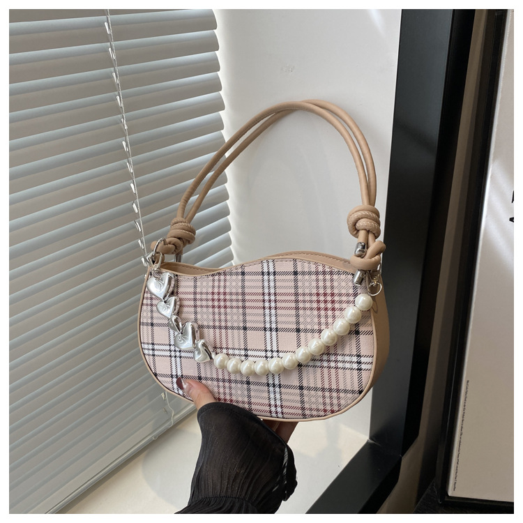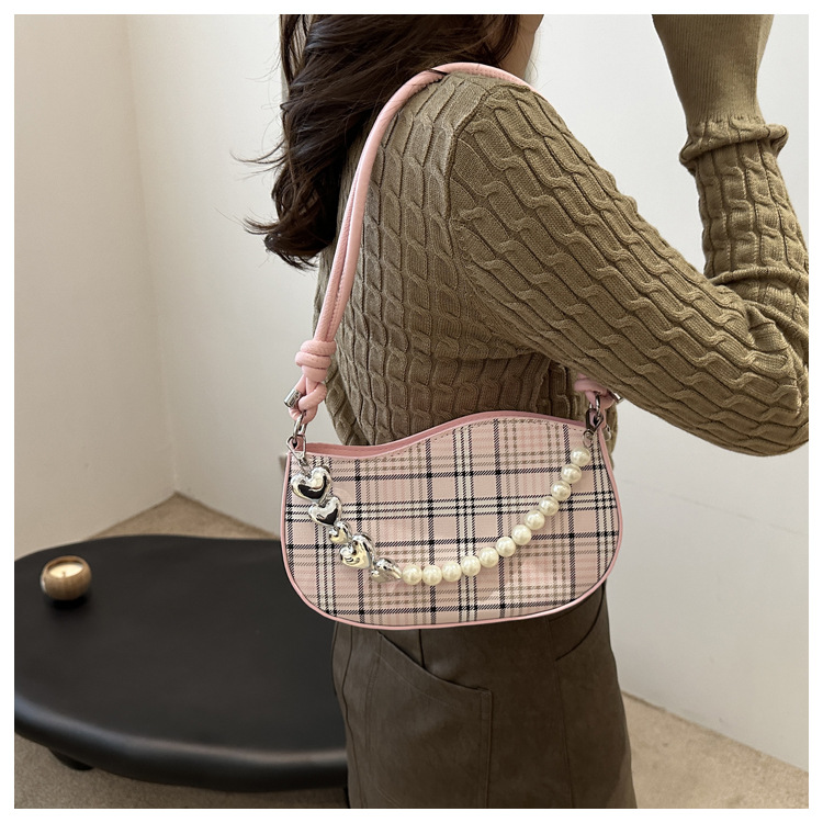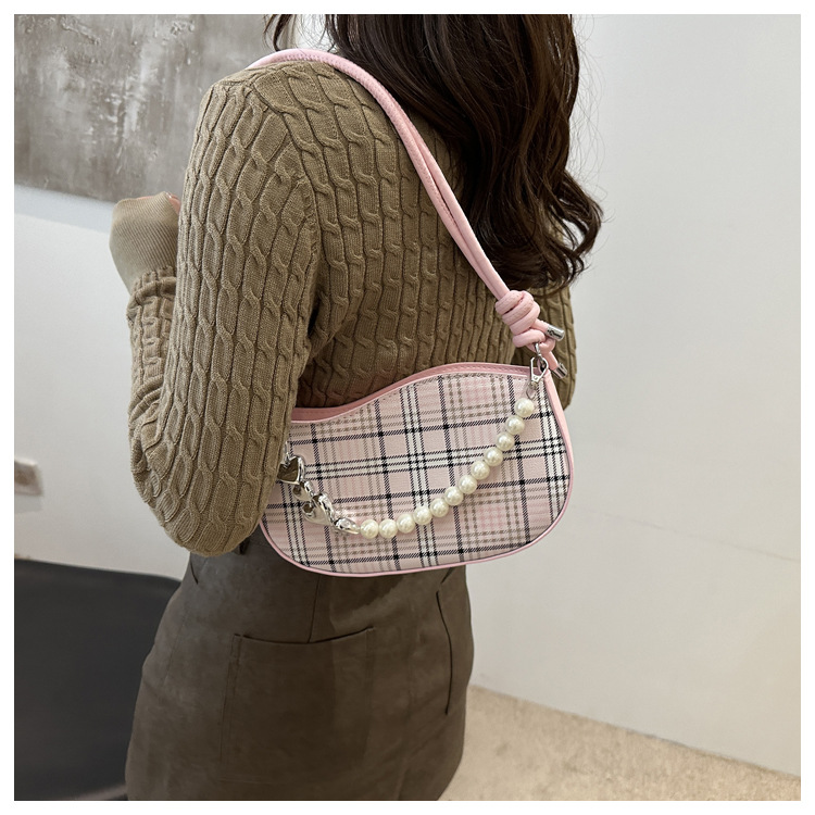 2024新款格子复古唯美通勤包个性潮流时尚小众设计简约单肩腋下包