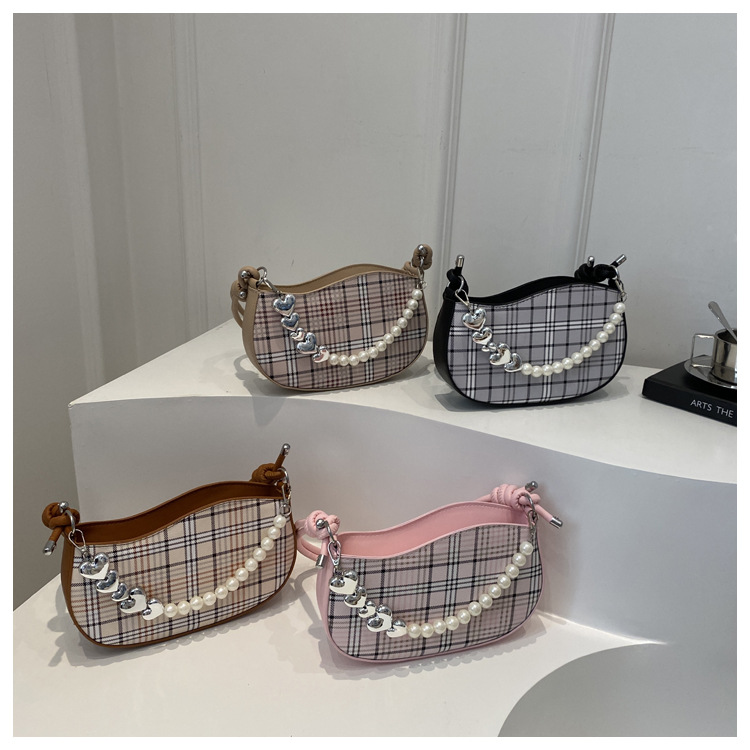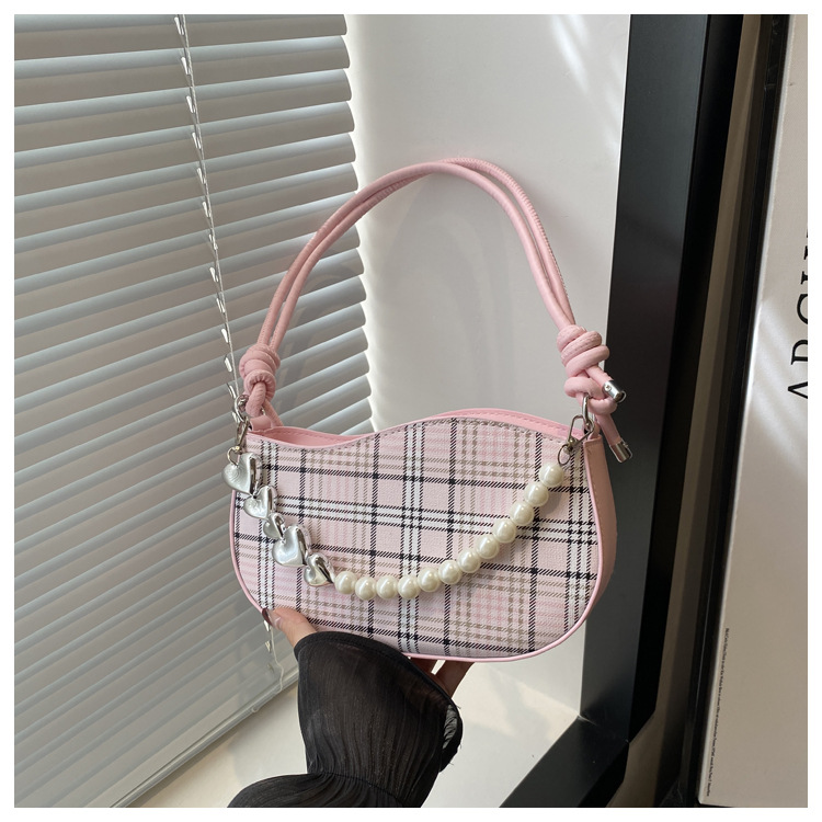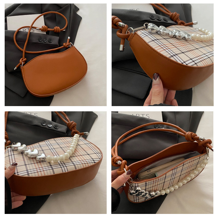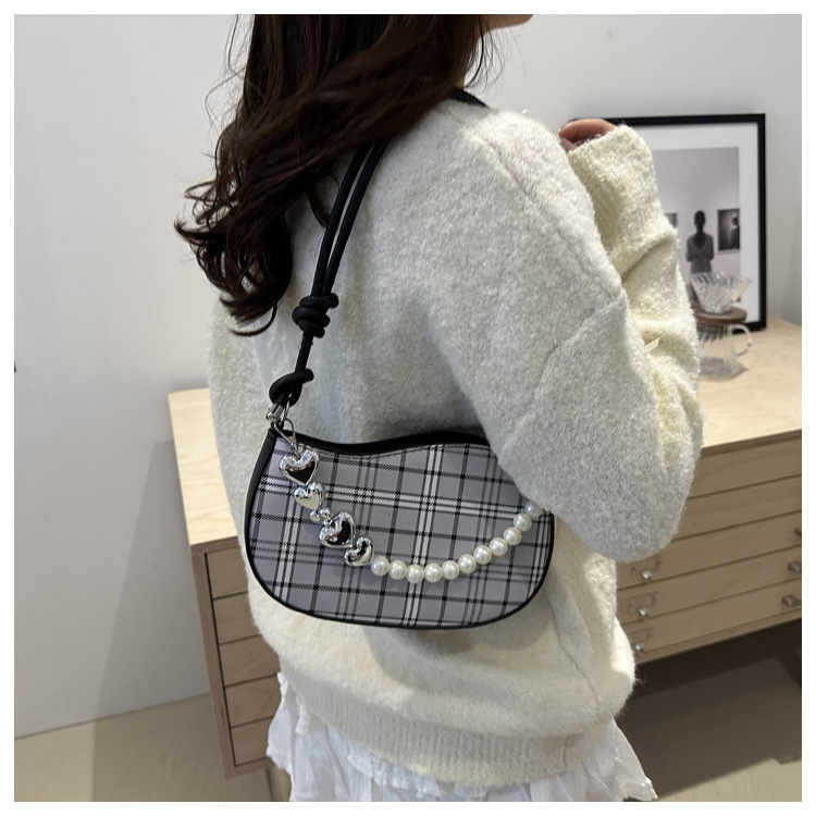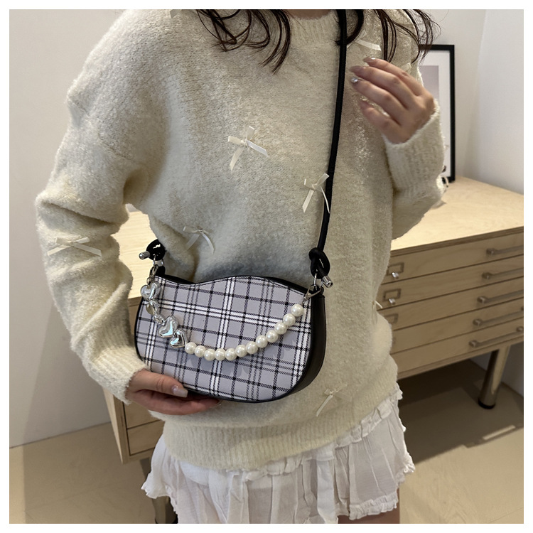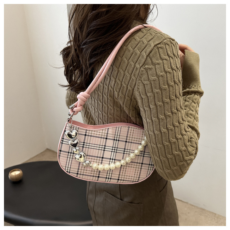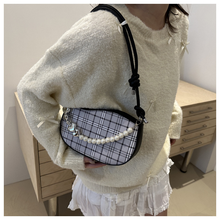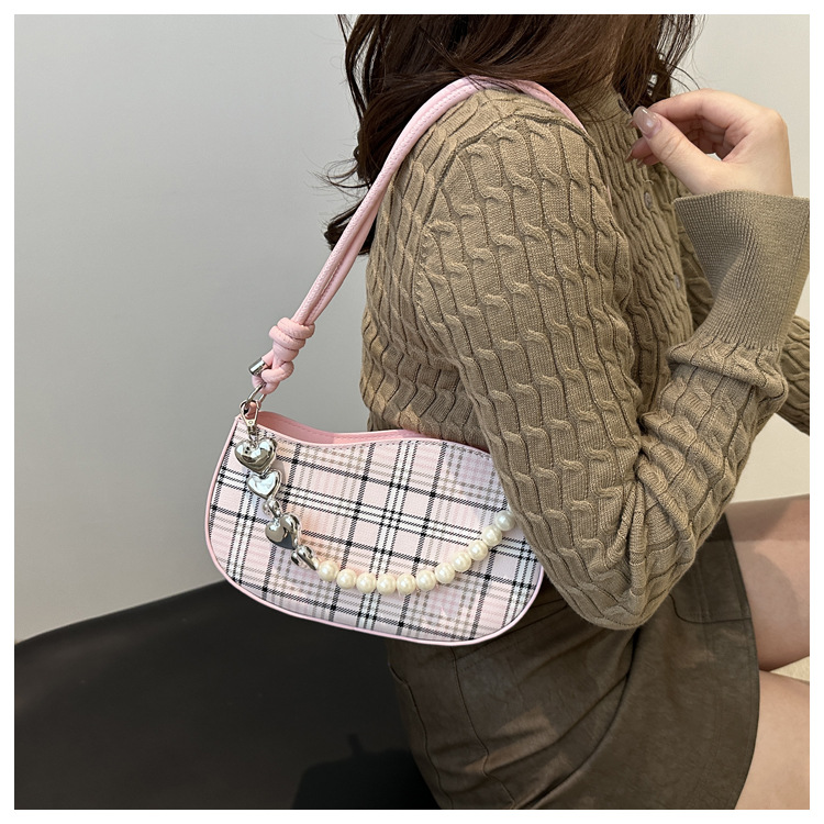 2024新款格子复古唯美通勤包个性潮流时尚小众设计简约单肩腋下包