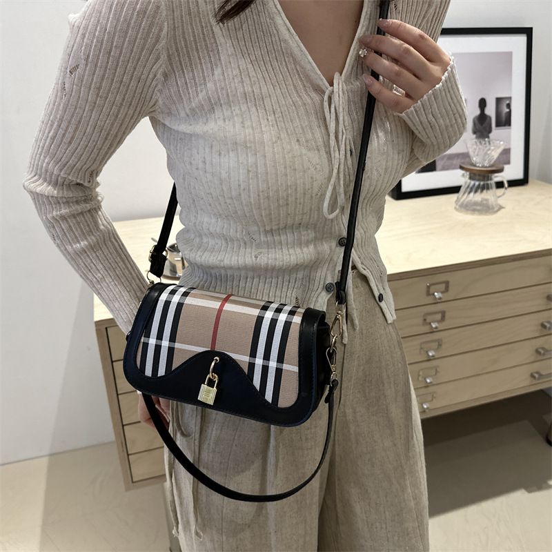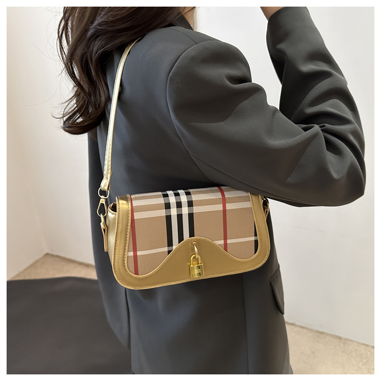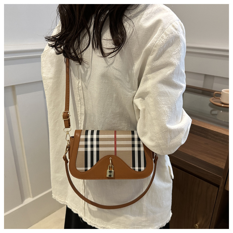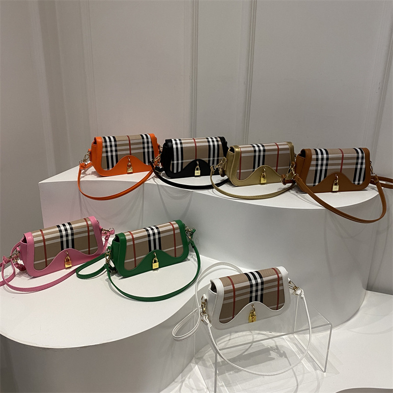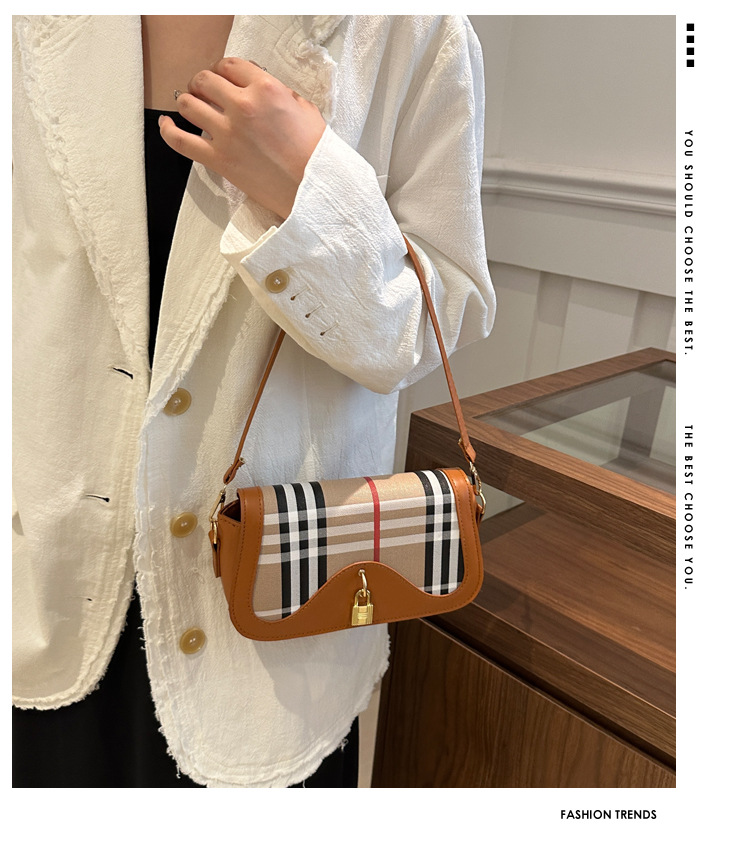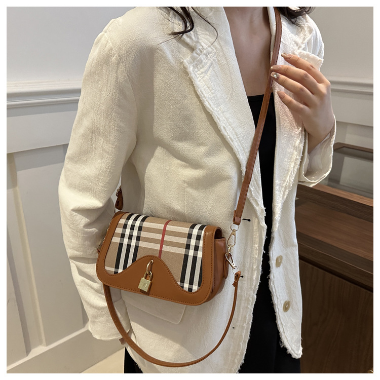 跨境流行格纹小众设计包包2024新款女包复古百搭斜挎包单肩腋下包 投诉