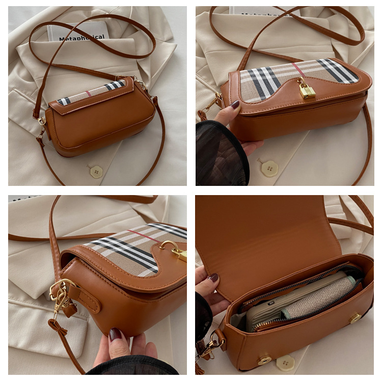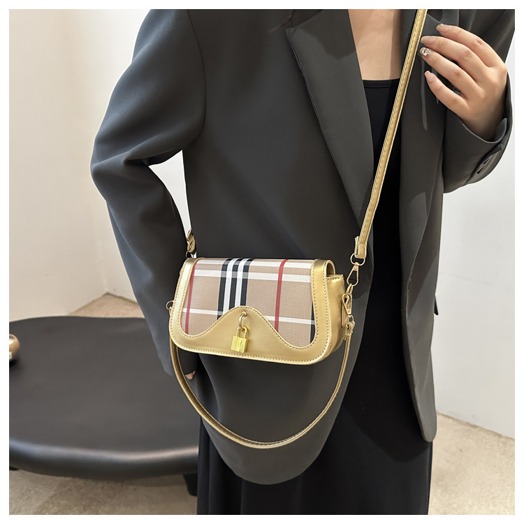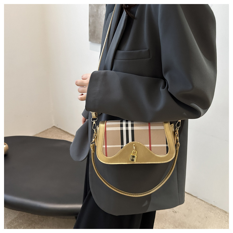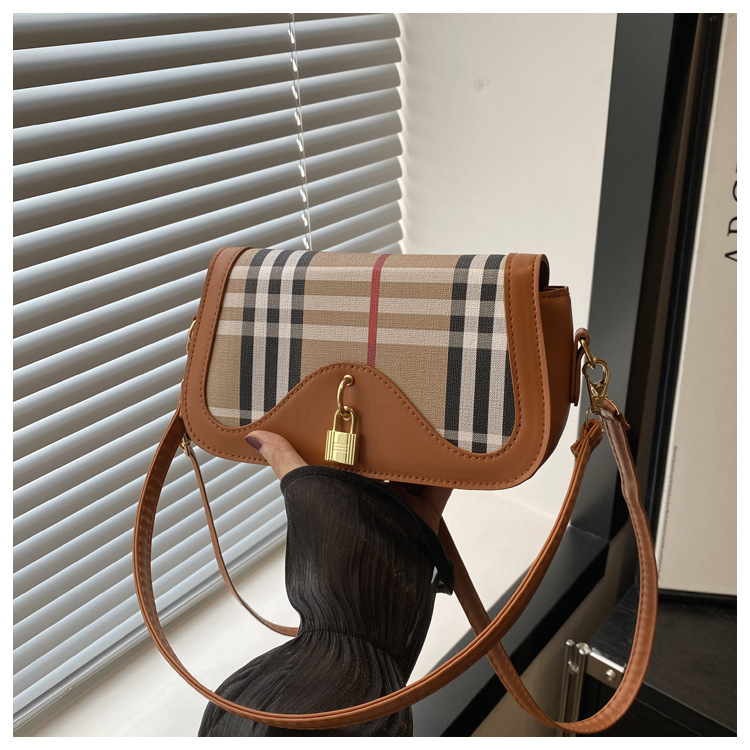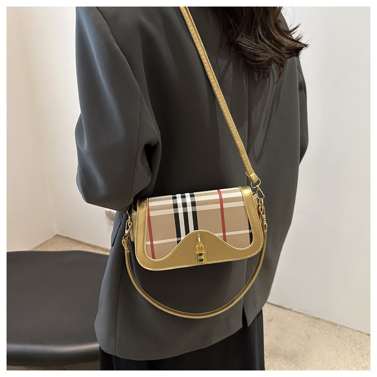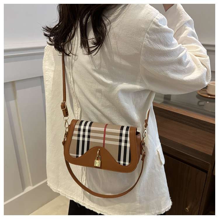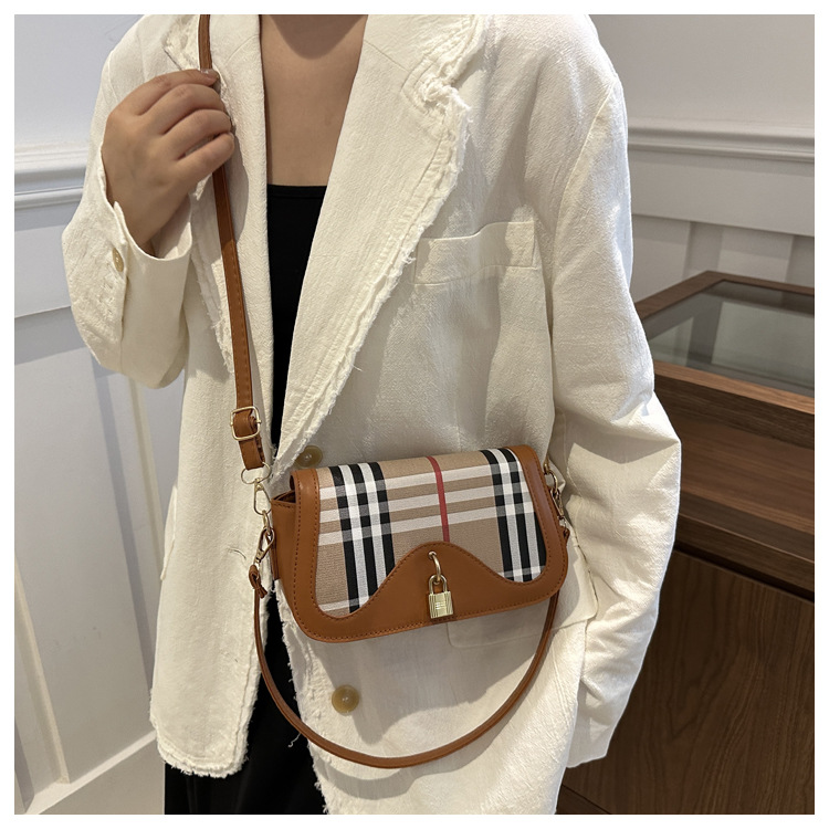 跨境流行格纹小众设计包包2024新款女包复古百搭斜挎包单肩腋下包 投诉